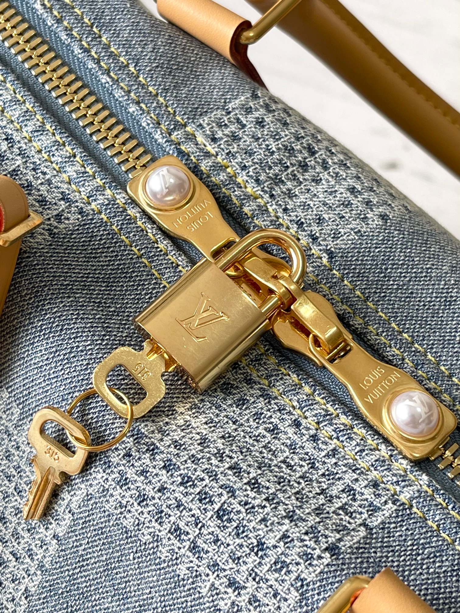 NIGO Louis Vuitton Keepall Bandoulière 50 Men's and Women's Detachable Adjustable Shoulder Strap Zipper Closure Denim Step Shoulder Tote Travel Bag Bags #nigo76823