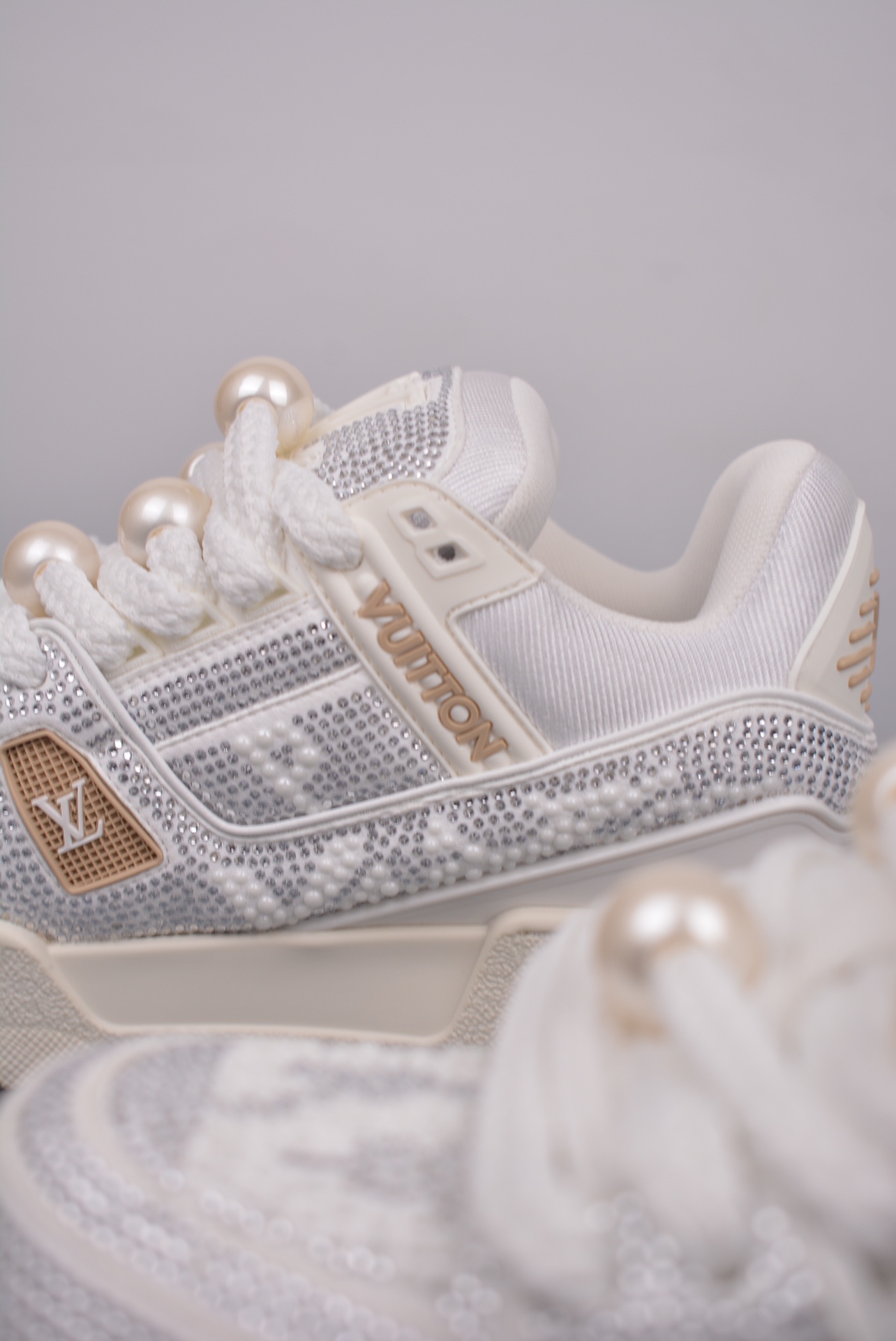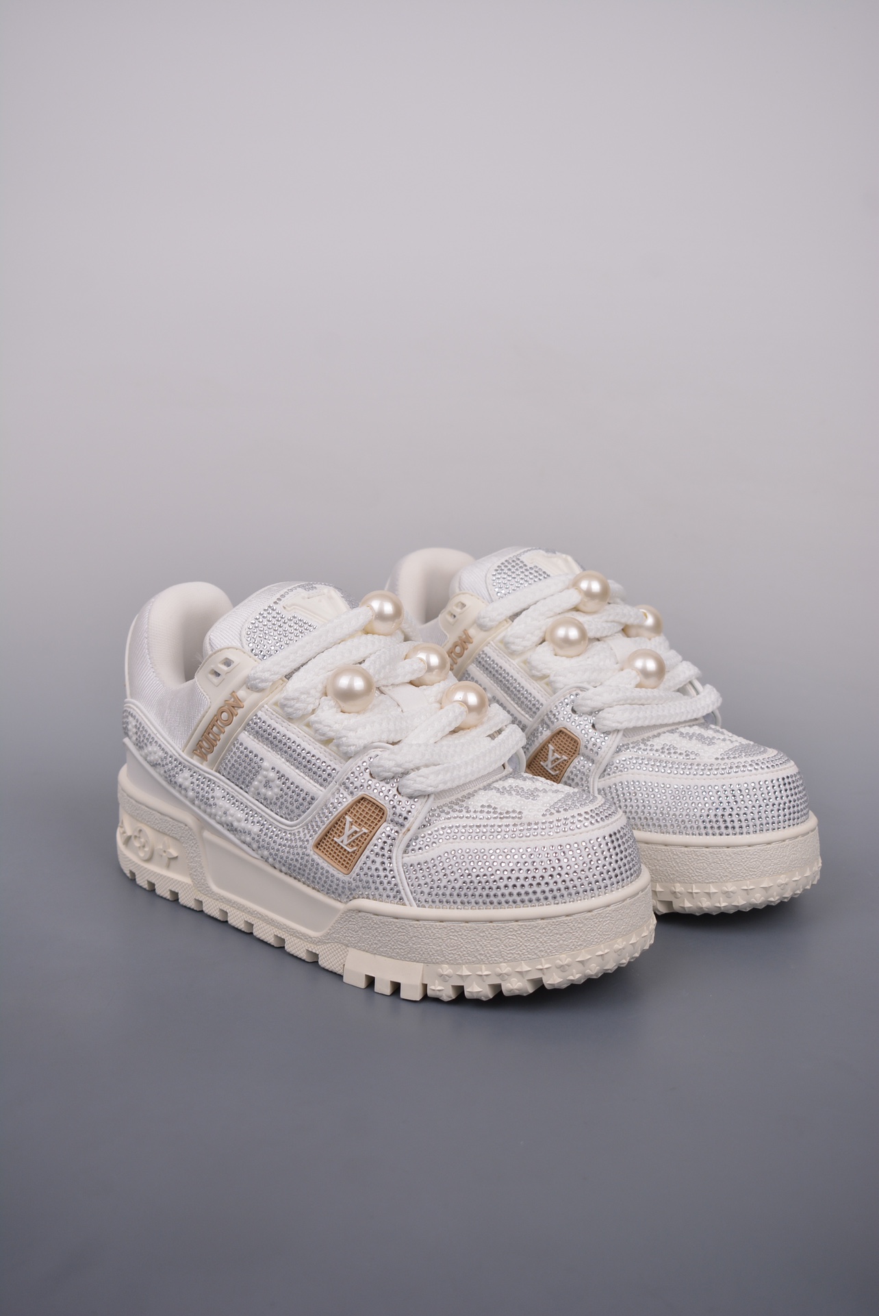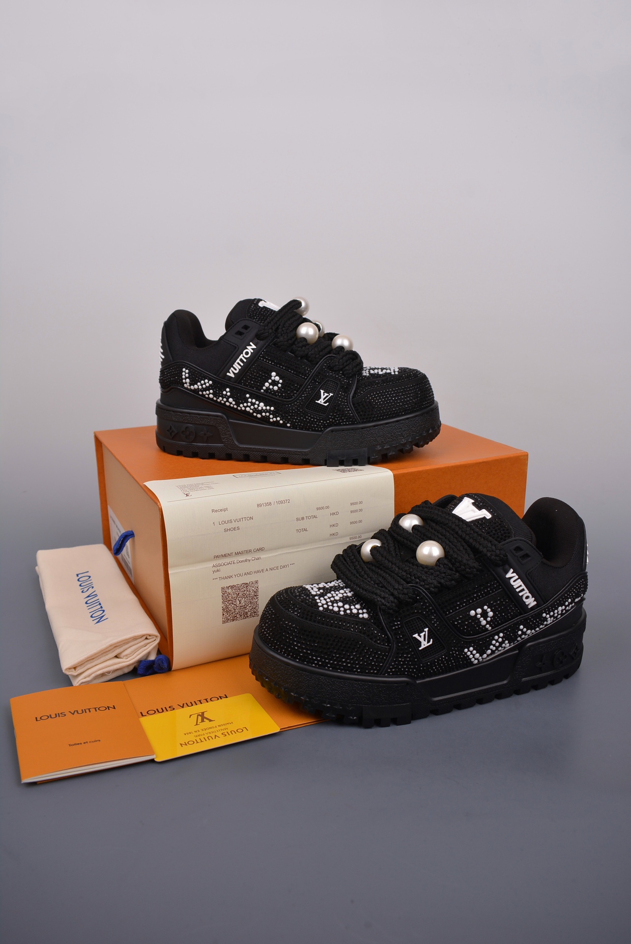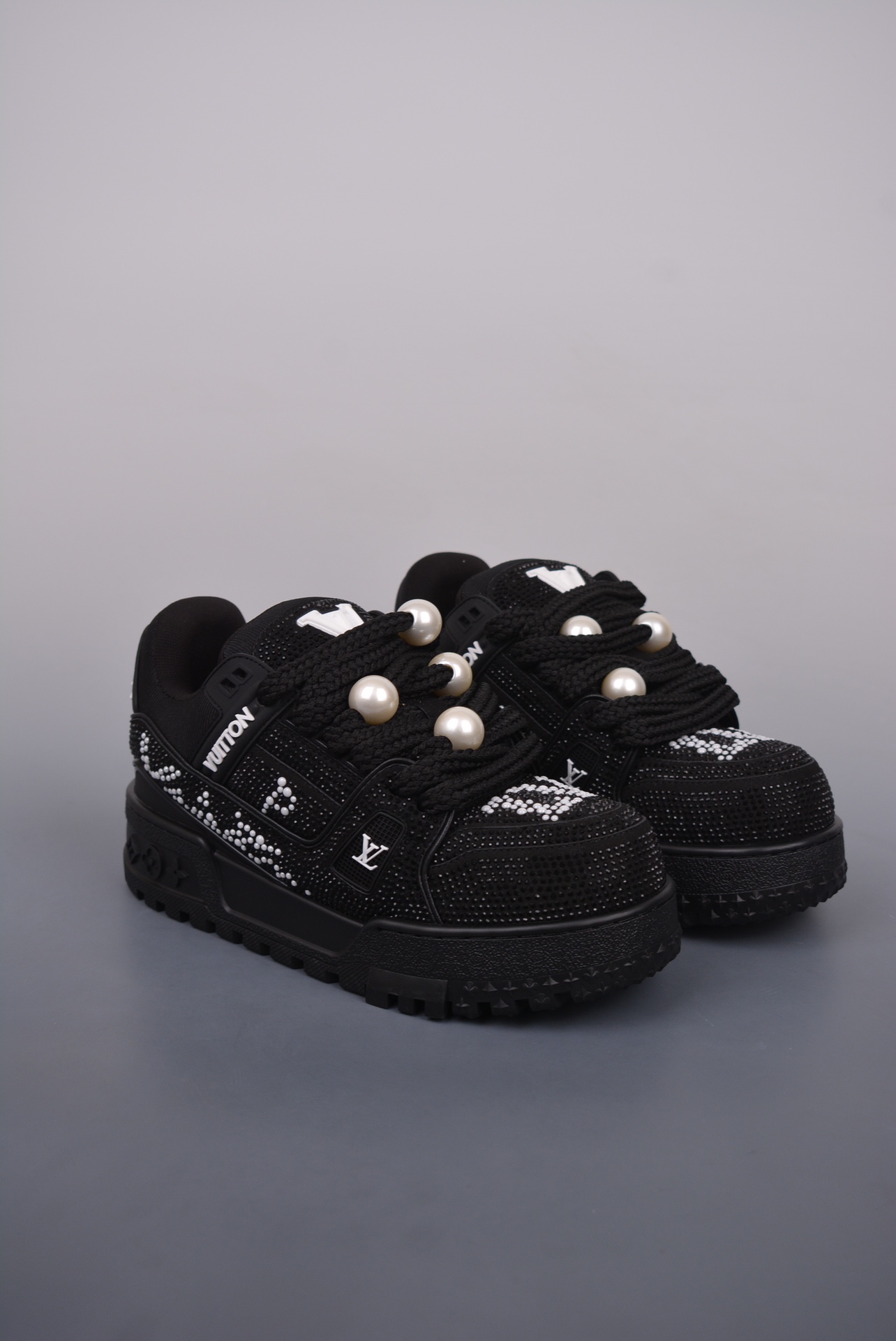 NIGO Louis Vuitton LV Trainer Maxi Sneaker Men's Round Toe Full Printed Studded Lace Up Low Top Board Shoes #nigo99629