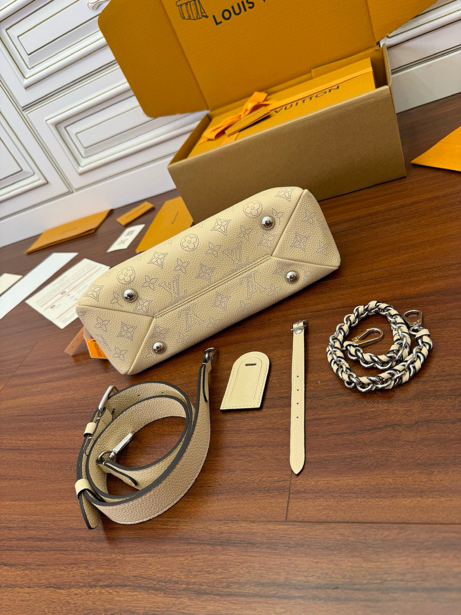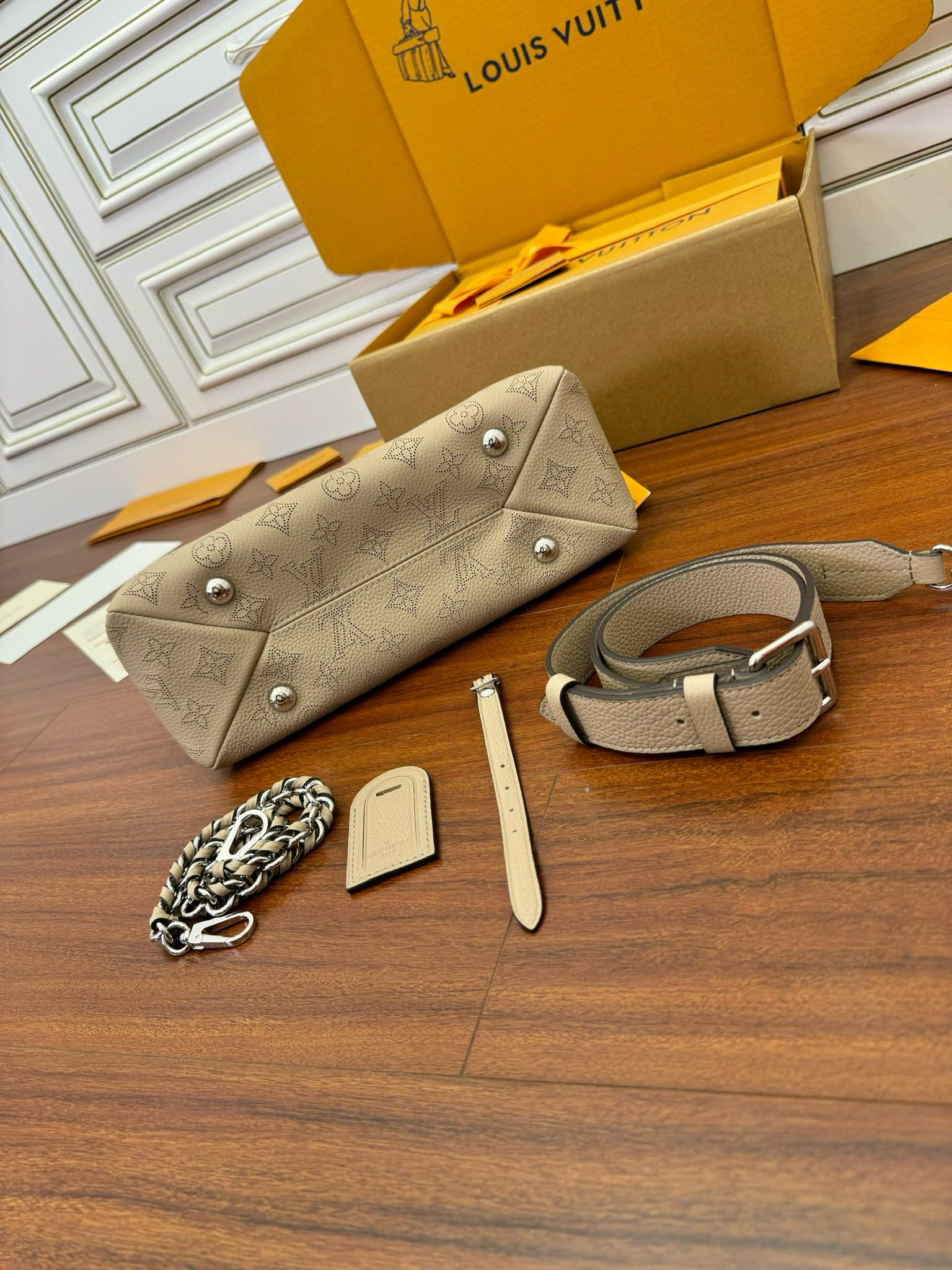 NIGO Louis Vuitton Mahina Hand It All Women's Solid Colour Hollow Logo Print Detachable Adjustable Shoulder Strap Zip Closure Shoulder Crossbody Bag Bags #nigo99219