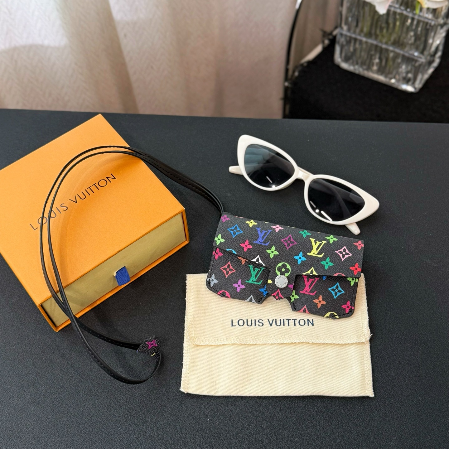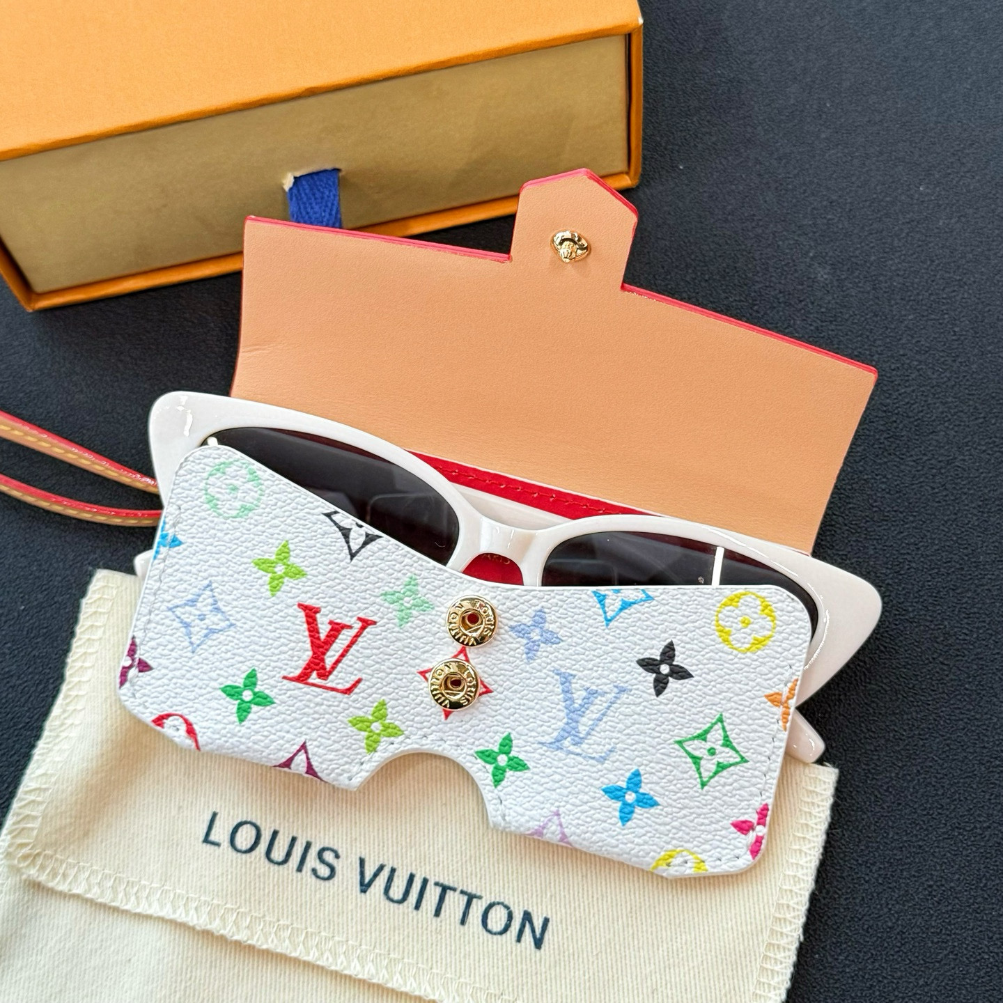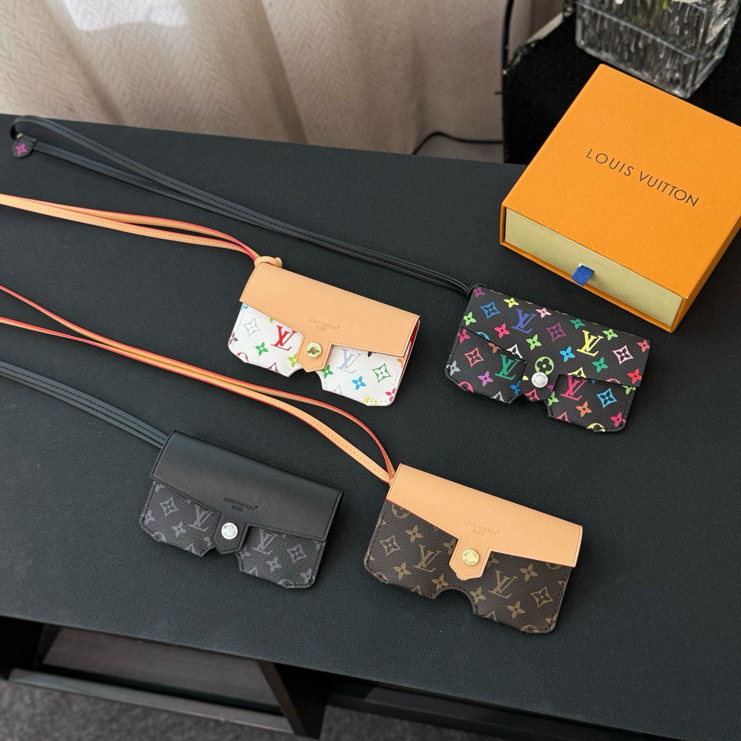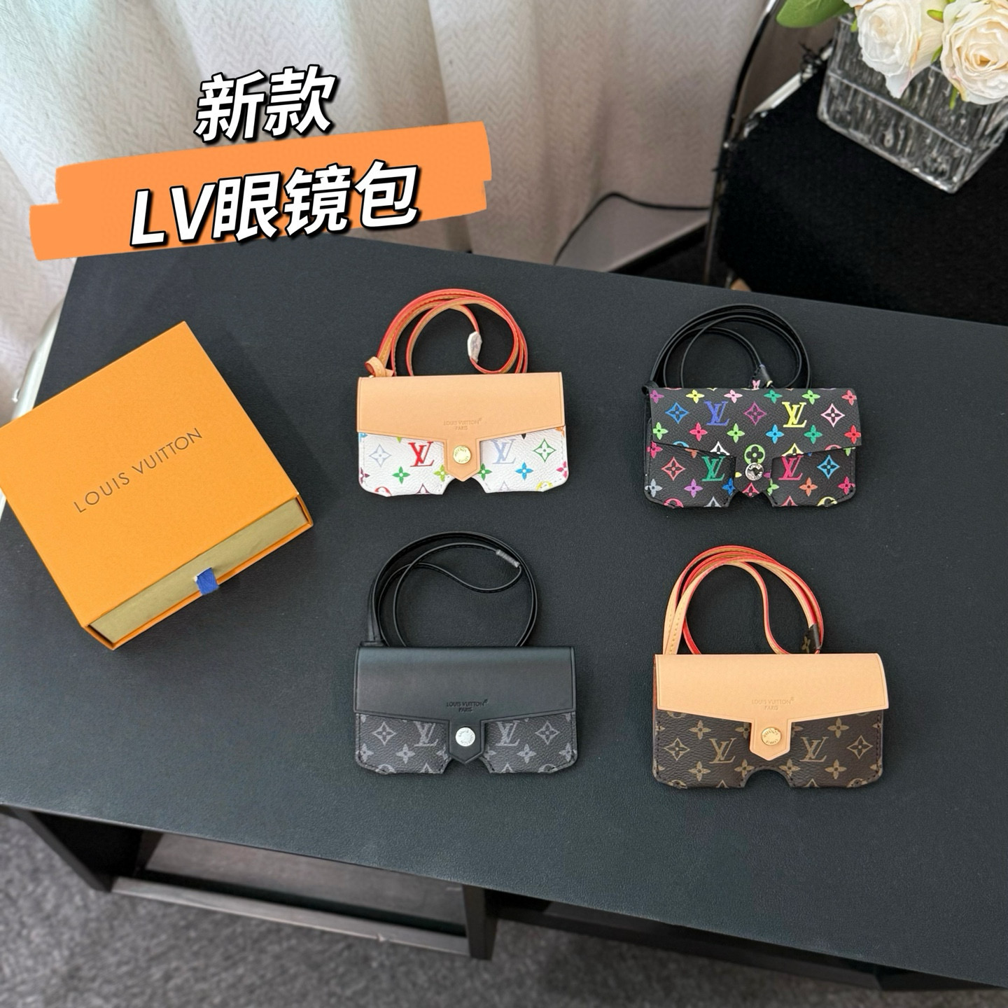 NIGO Louis Vuitton Men's And Women's Classic Fashion Aging Full-print Leather And Canvas Hanging Strap Eyeglass Case Bags M02701 #nigo78174