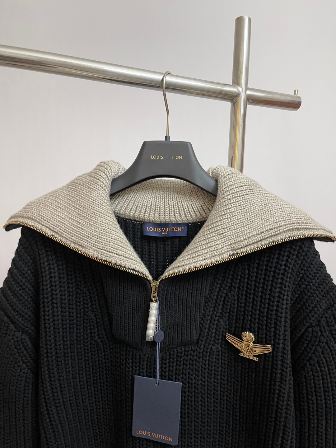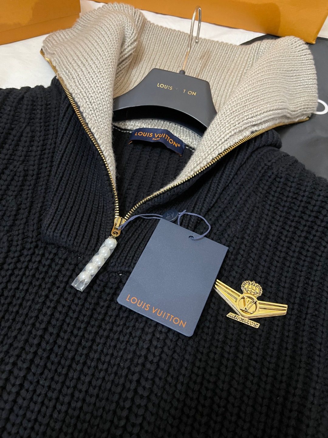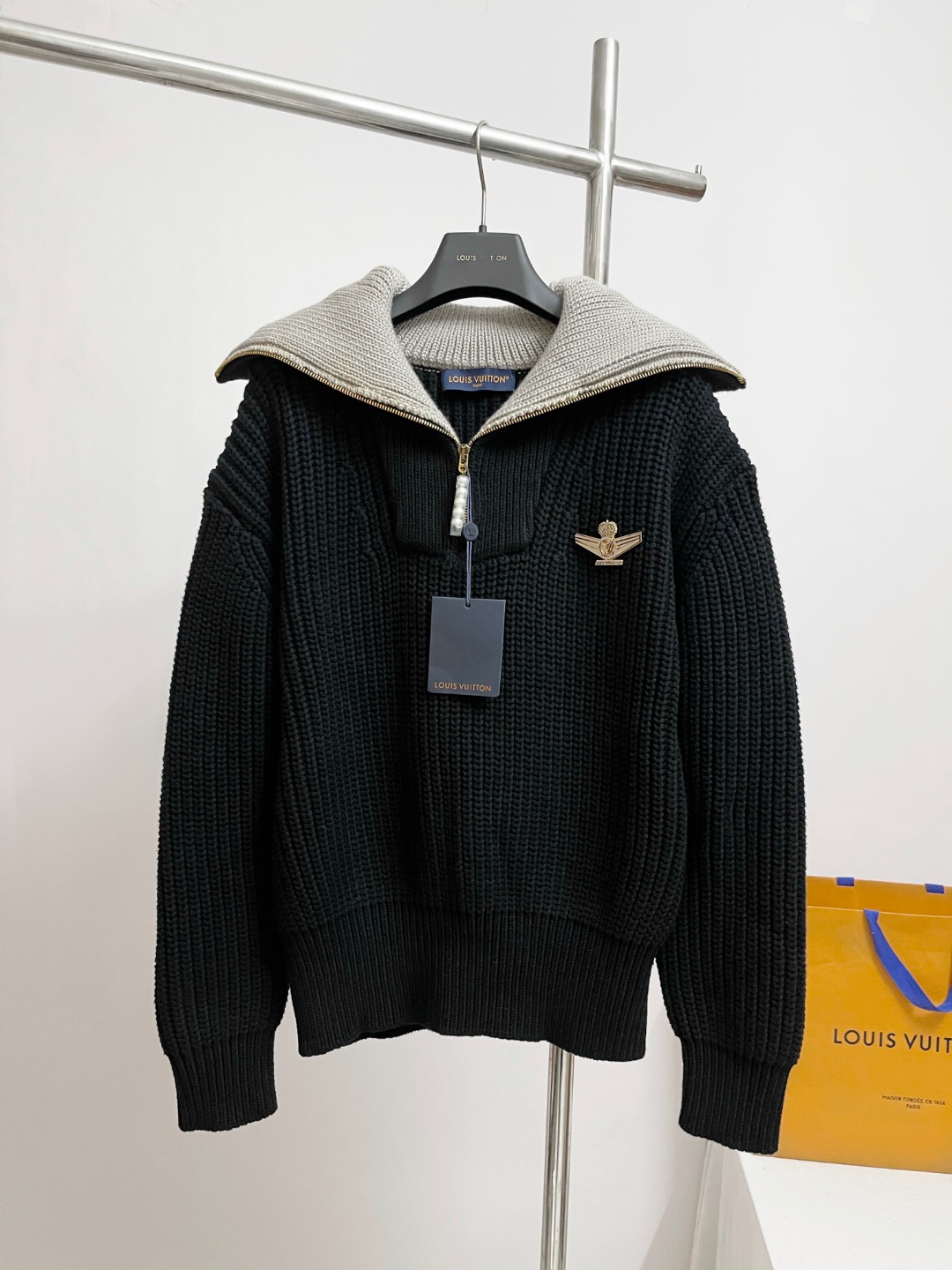 NIGO Louis Vuitton Men's And Women's Fall/Winter Fashion Casual Collared Half Zip Pullover Sweater Sheep Wool Blend Cable Knit Sweater #nigo78898