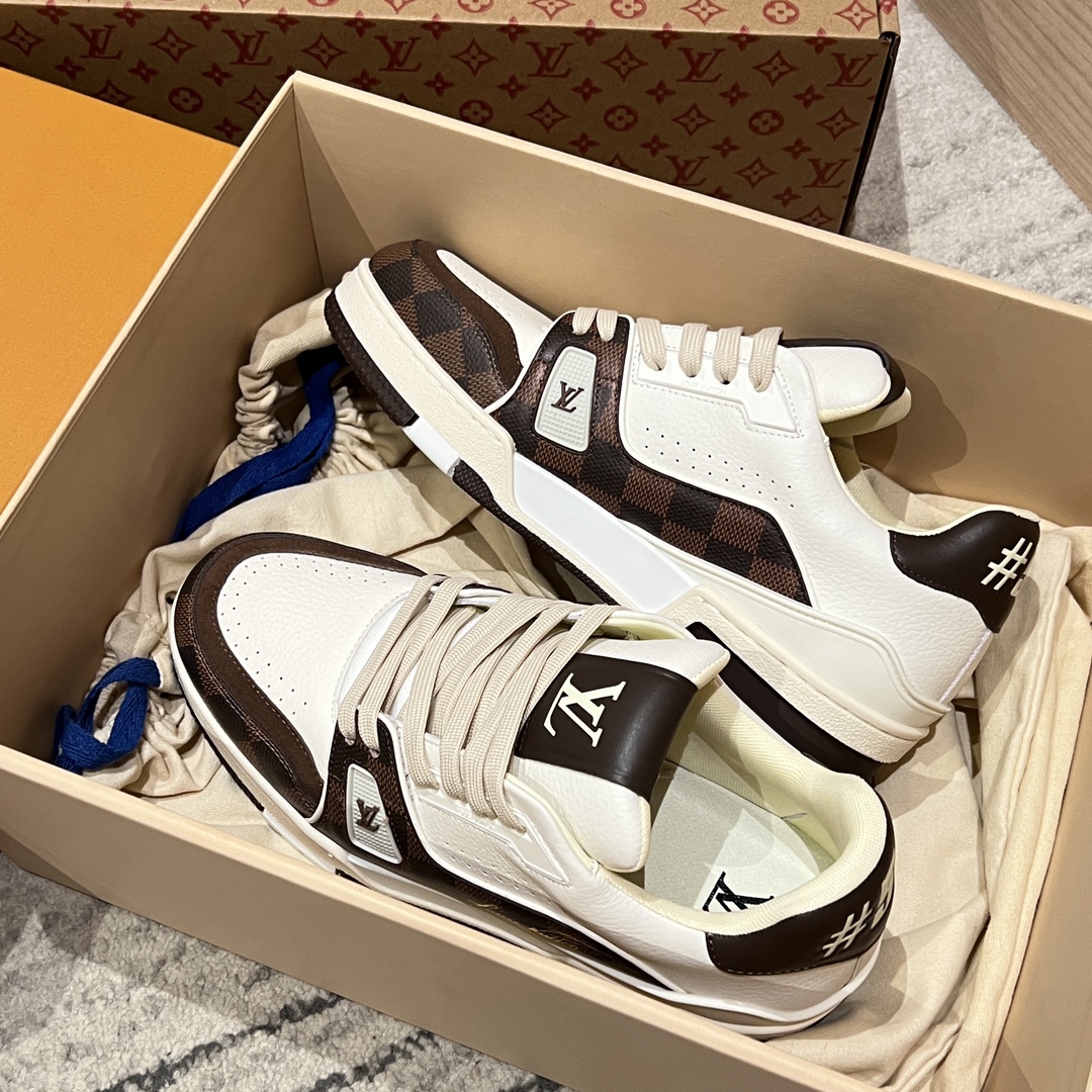 NIGO Louis Vuitton Men's and Women's Round Toe Thick Bottom Lace Up Low Top Board Shoes Leather Shoes #nigo99536