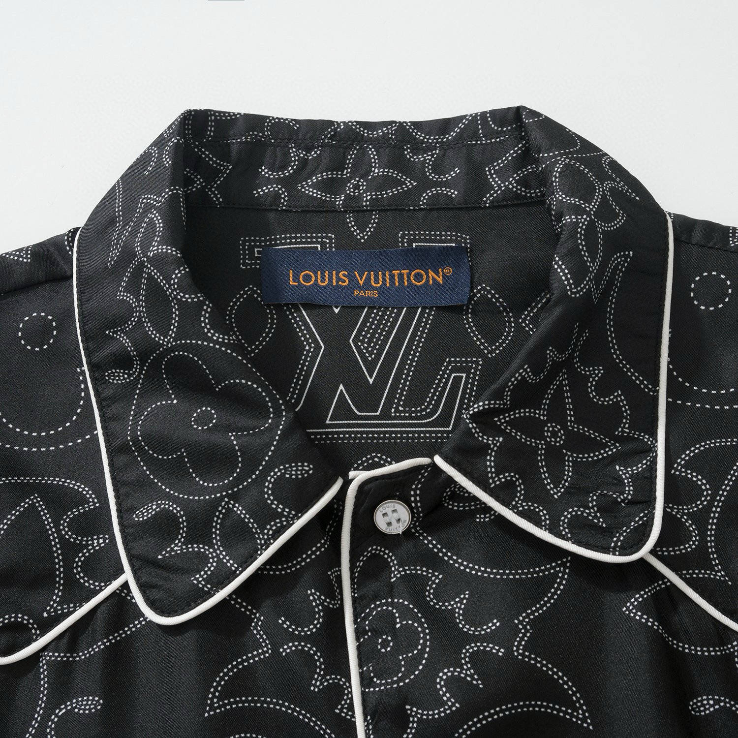 NIGO Louis Vuitton Men's And Women's Spring Summer Autumn And Winter Fashion Casual V-Neck Single-Button Printed Silk Pajamas Long Sleeve Shirt