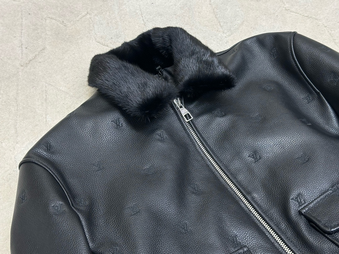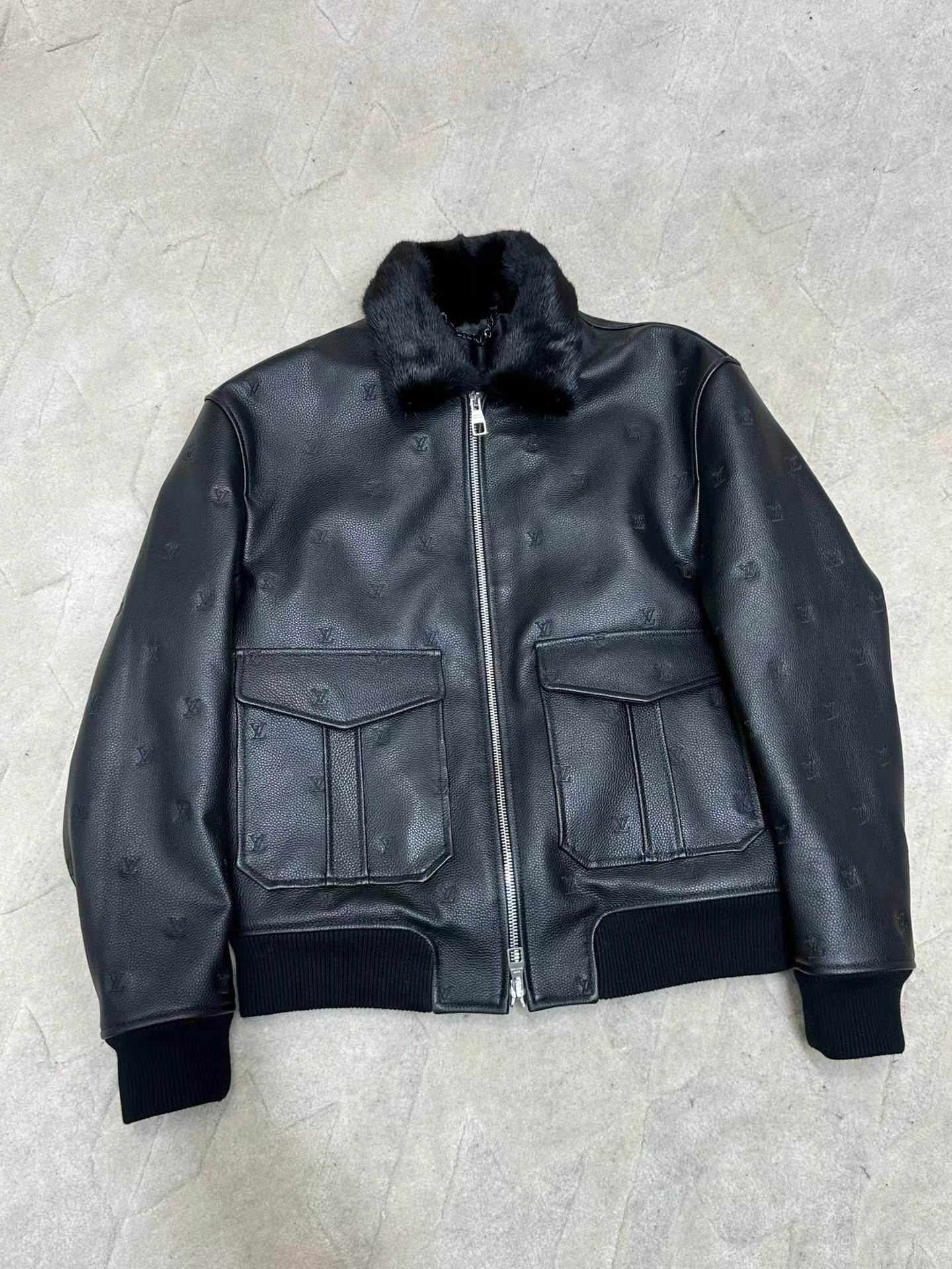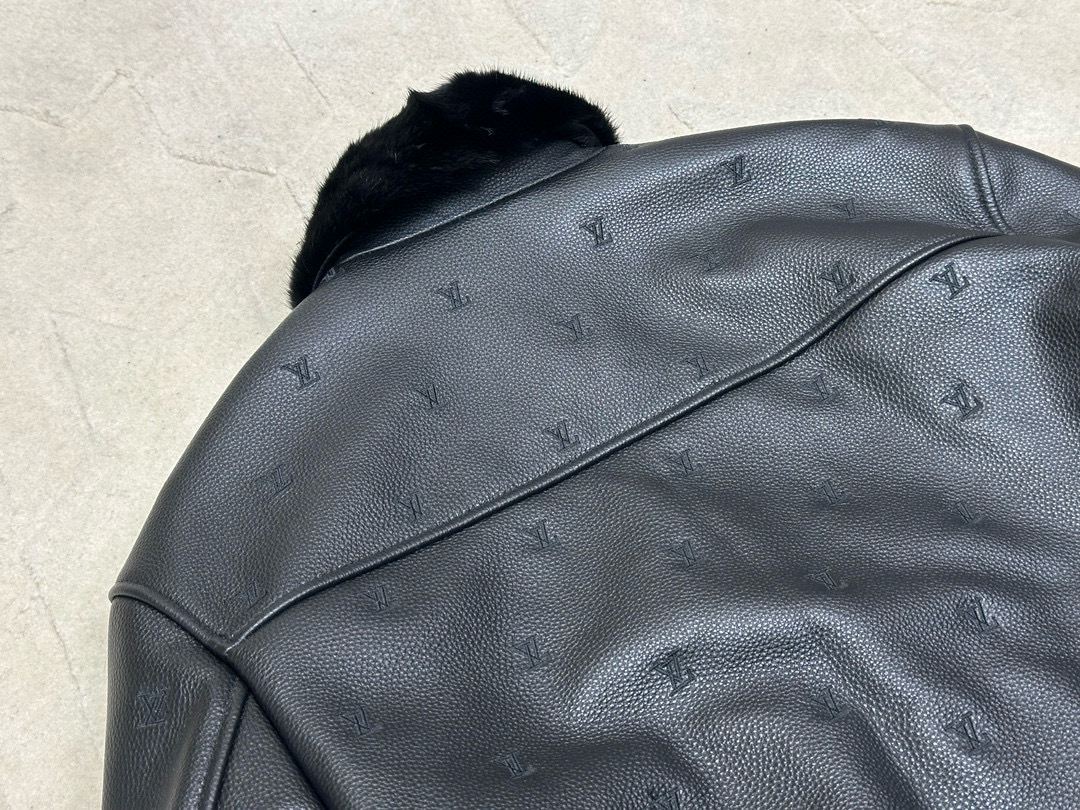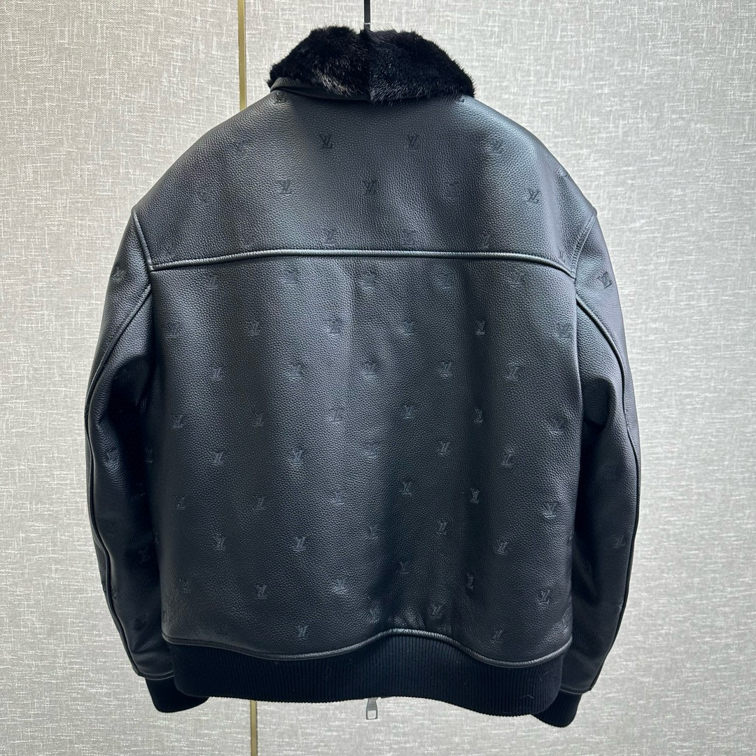 NIGO Louis Vuitton Men's Autumn/Winter Logo Embroidery Hair Collar Zip Cowhide Pilot Jacket #nigo99476