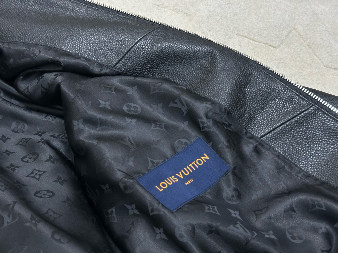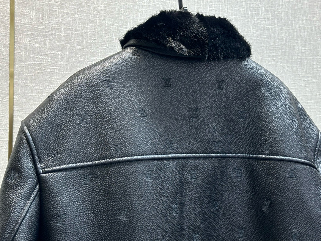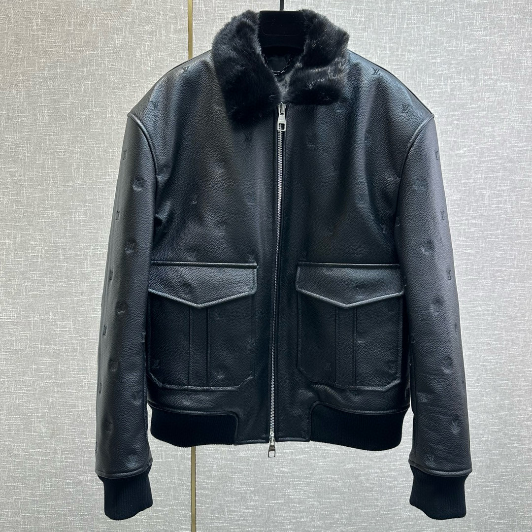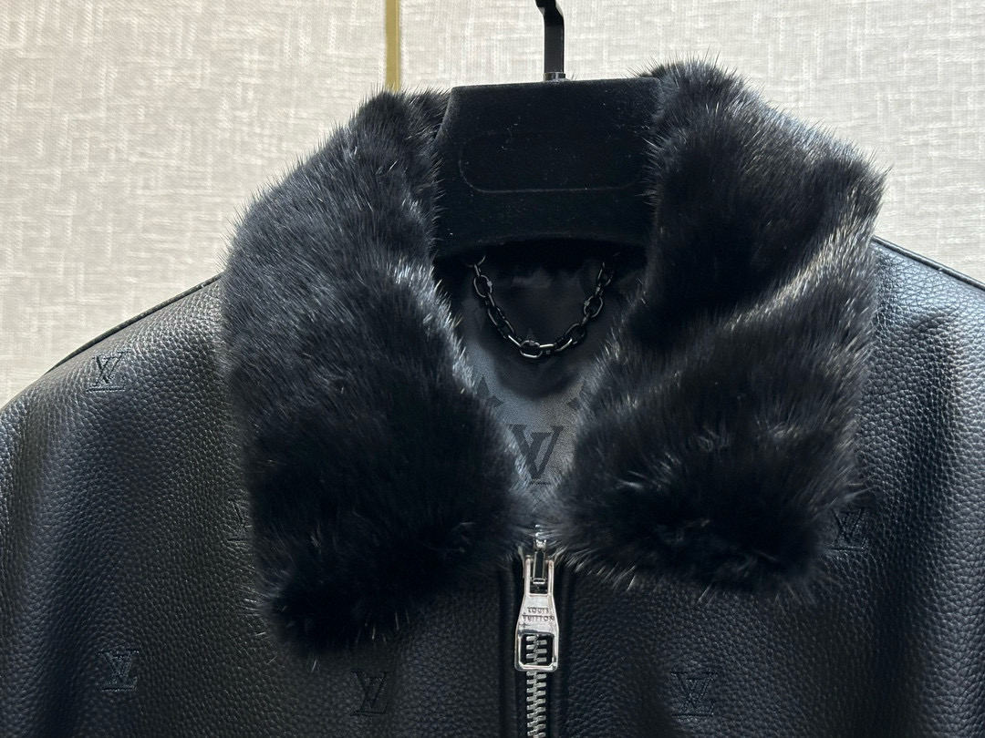 NIGO Louis Vuitton Men's Autumn/Winter Logo Embroidery Hair Collar Zip Cowhide Pilot Jacket #nigo99476
