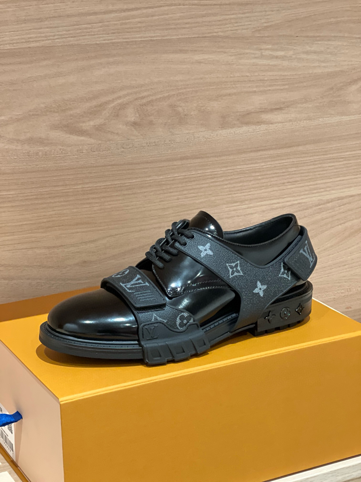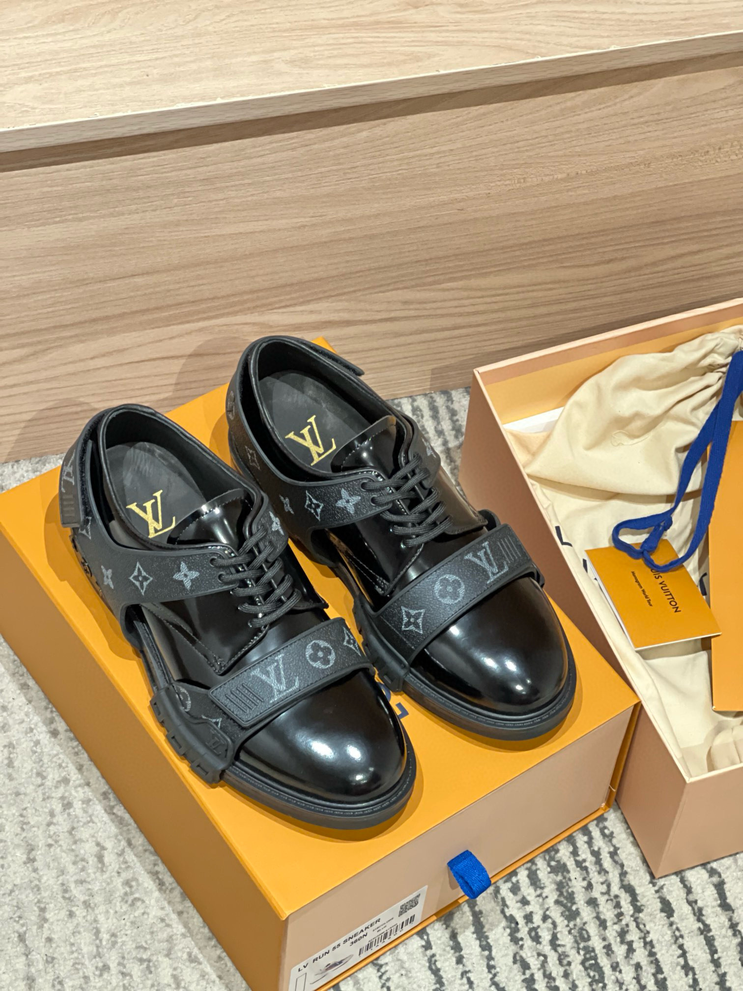 NIGO Louis Vuitton Men's Black Velcro Lace Up Low Top Leather Shoes #nigo99311