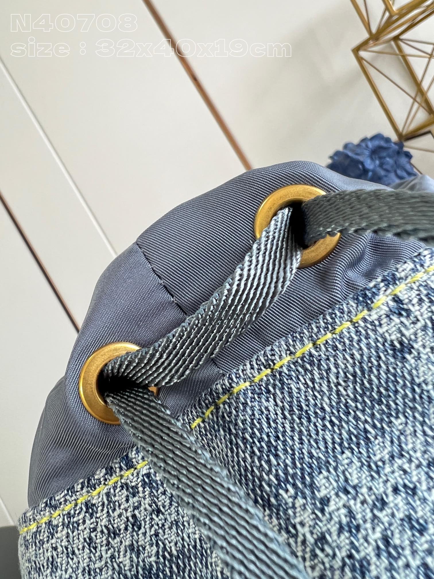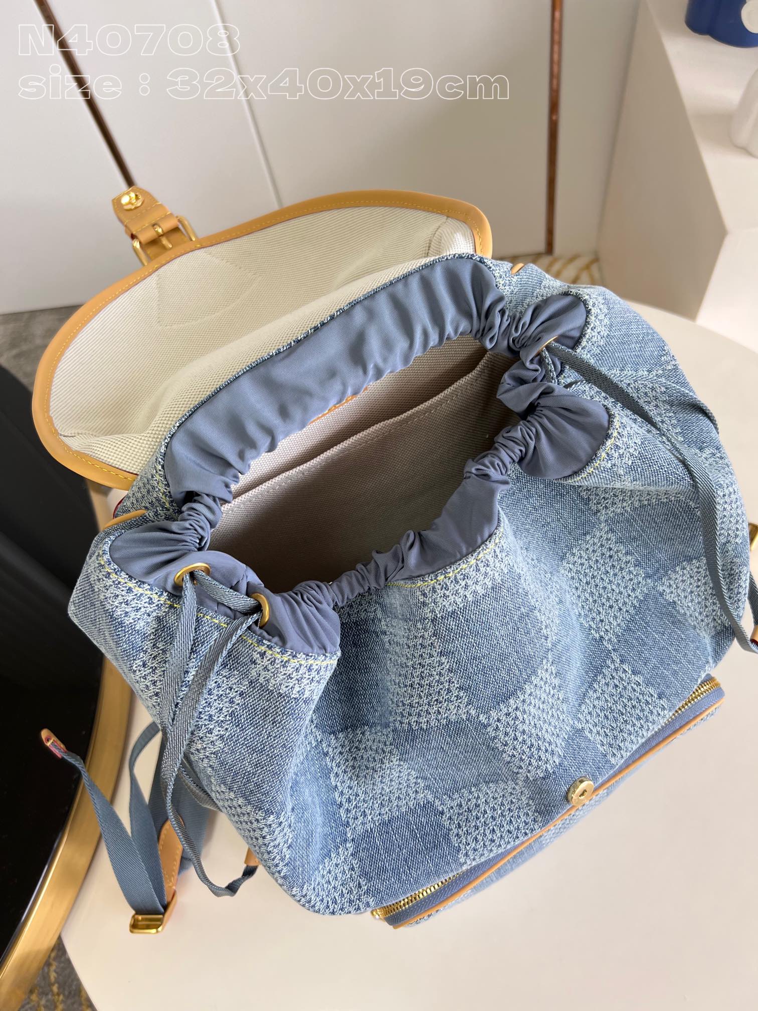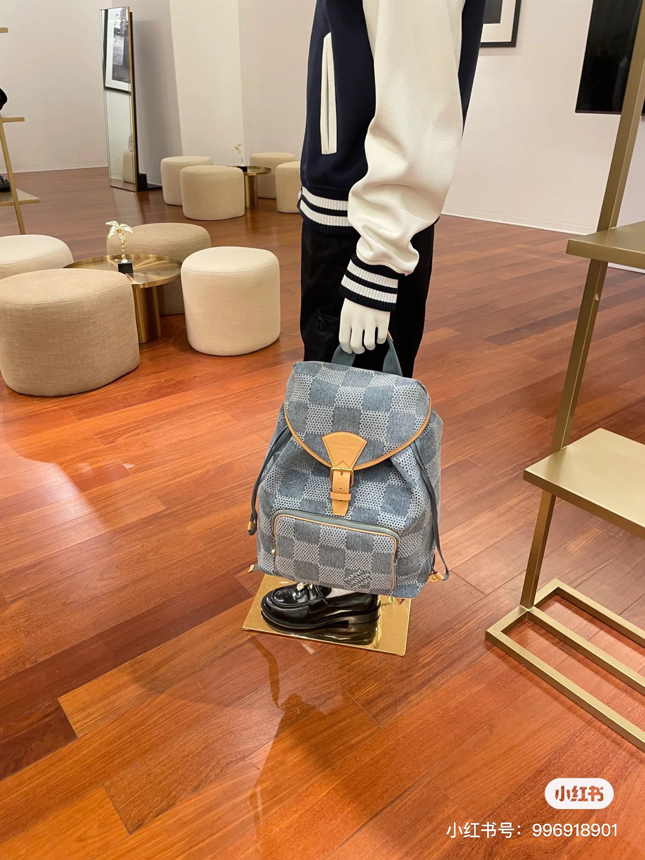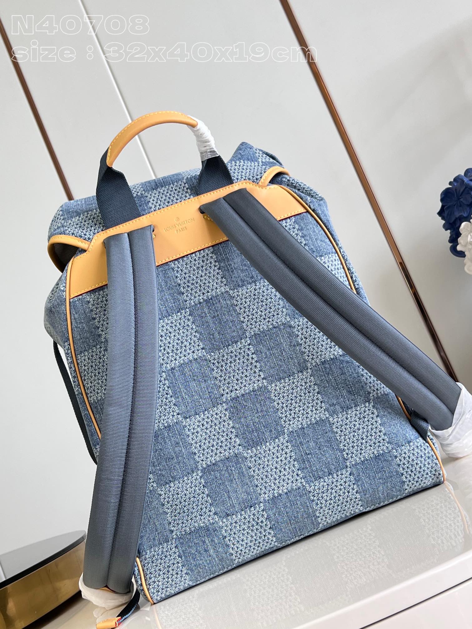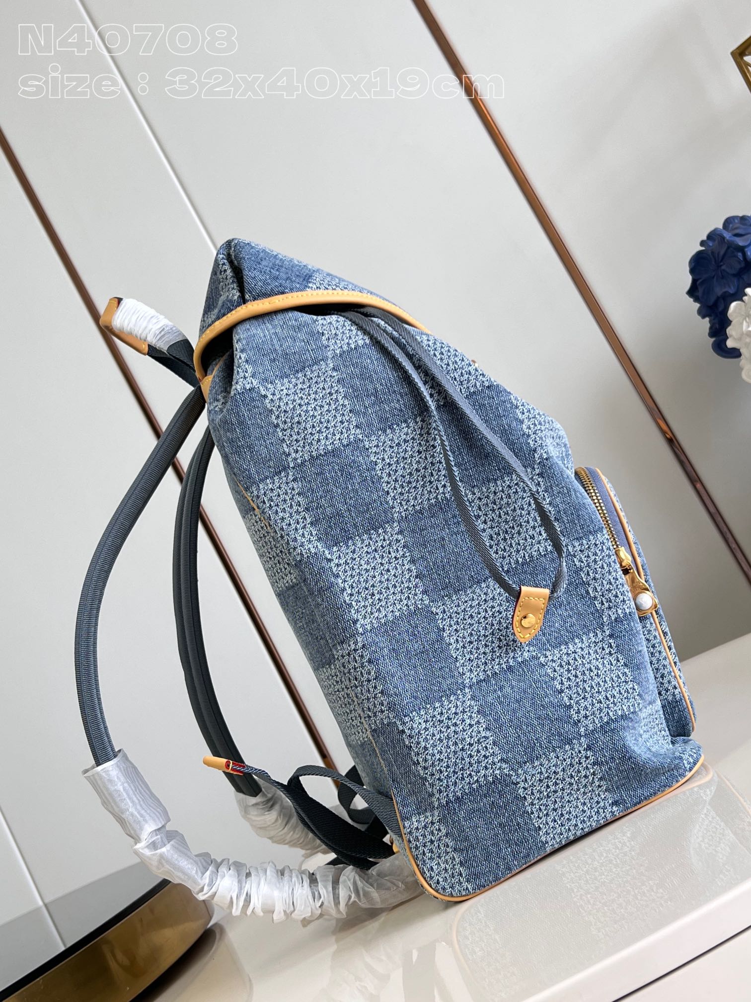 NIGO Louis Vuitton Men's Blue Tessellated Printed Canvas Quilted Leather Backpack Shoulder Bag Bags #nigo72171
