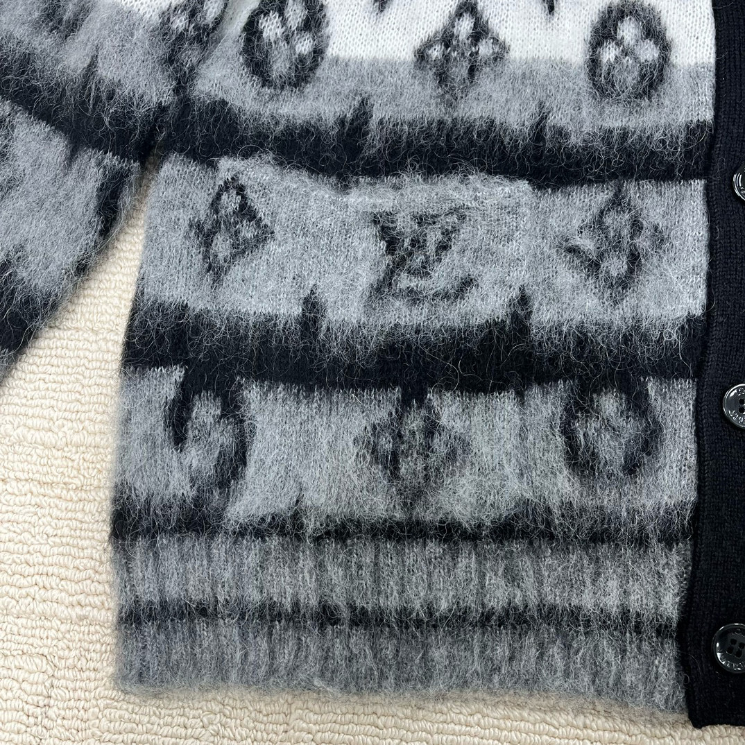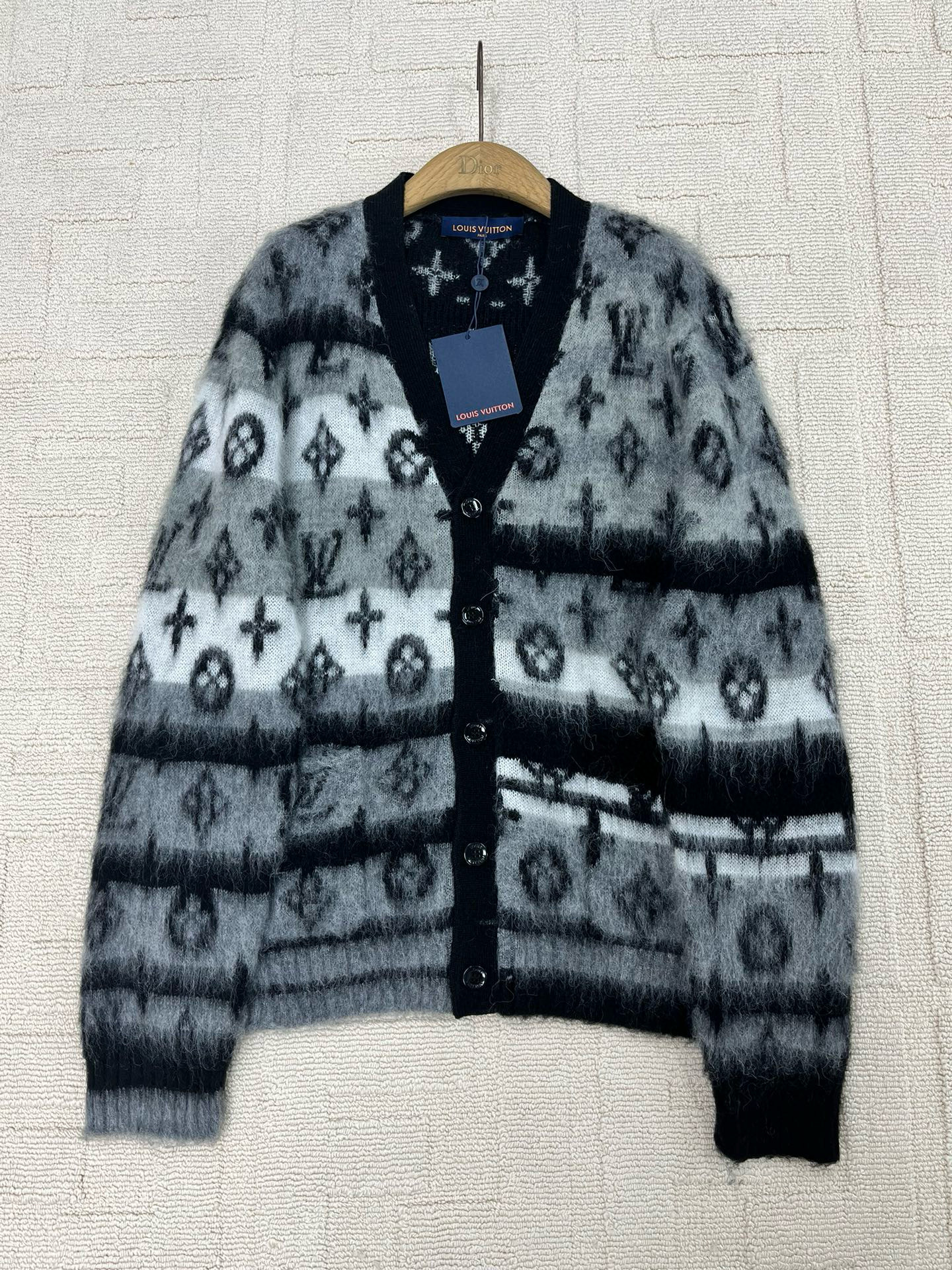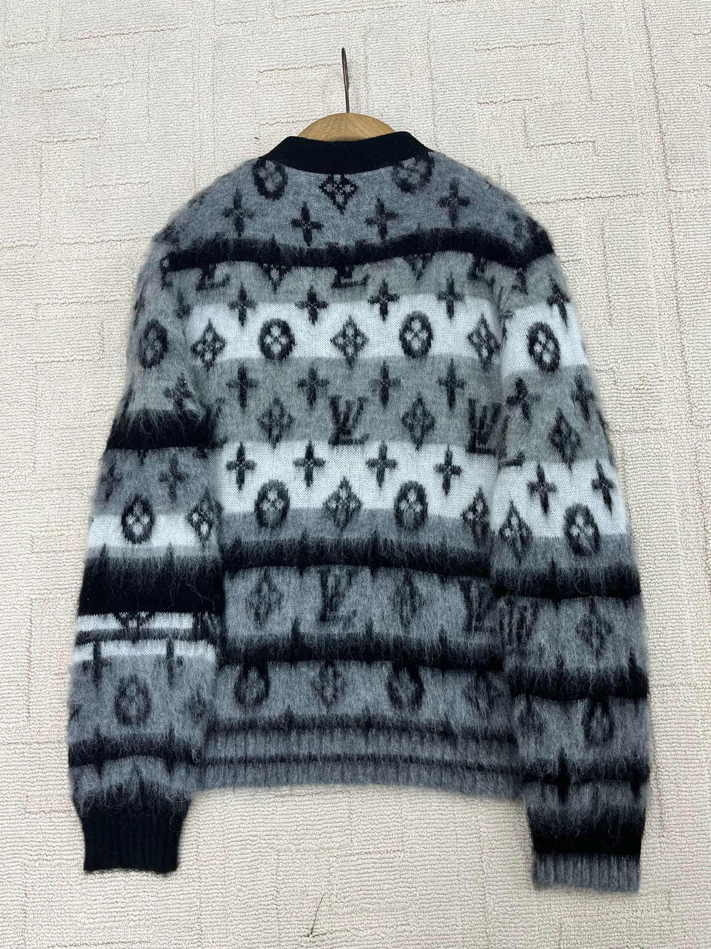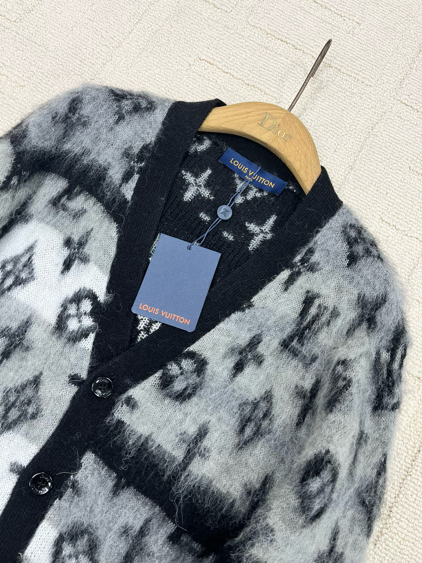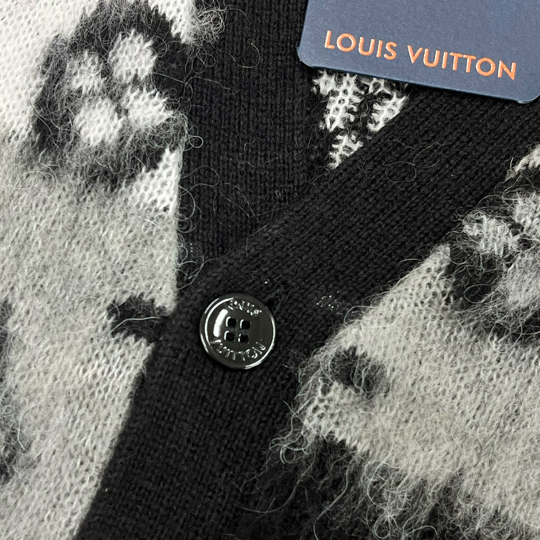 NIGO Louis Vuitton Men's Fall And Winter Black And White Jacquard Long Wool Sweater Cardigan Fashion Trend Single-breasted Long-sleeved Jacket #nigo81626