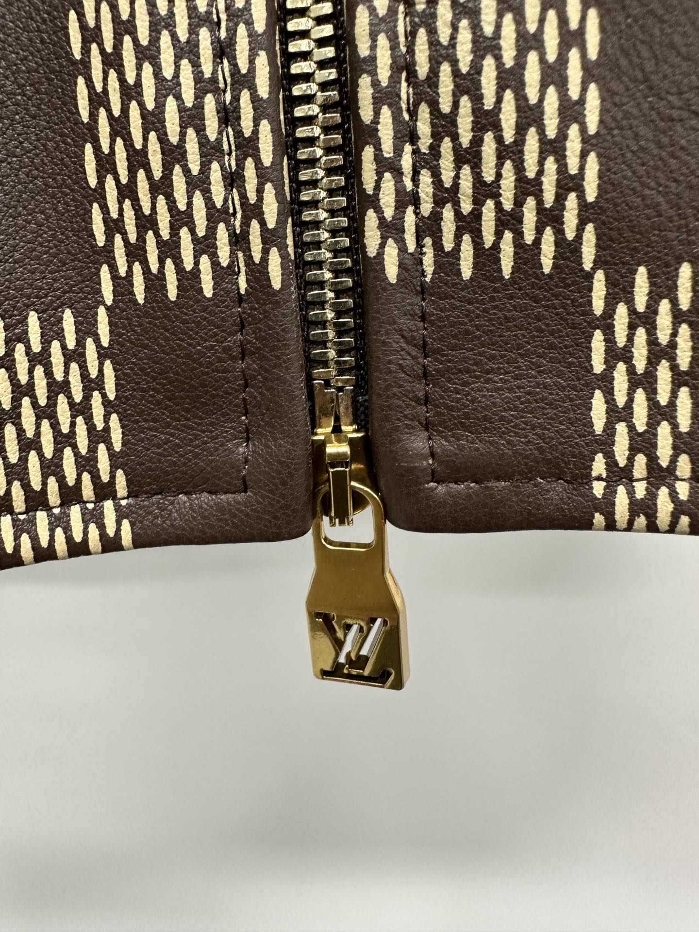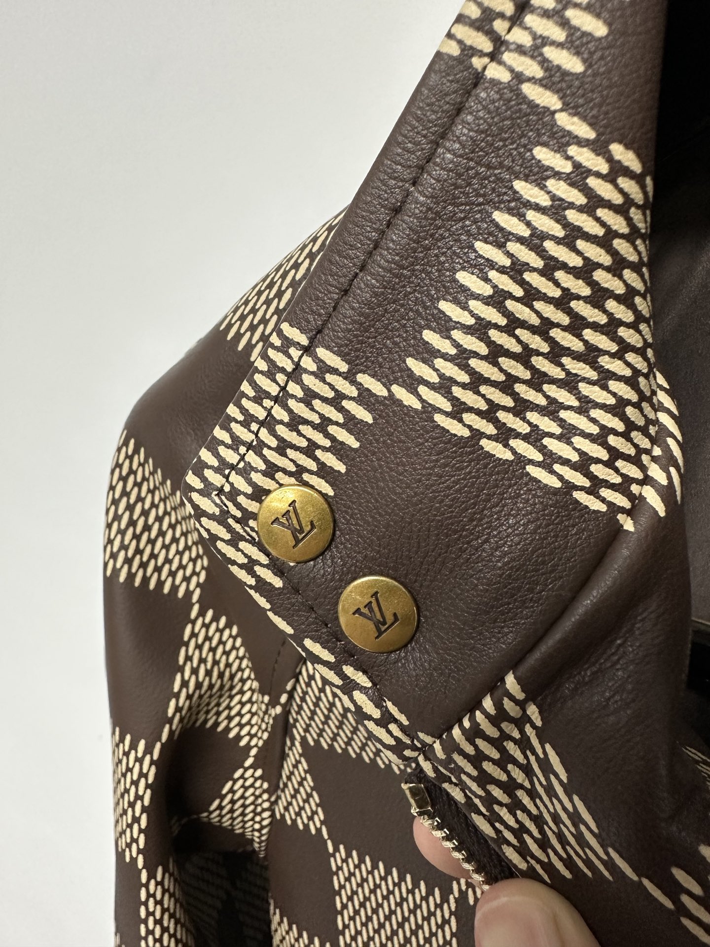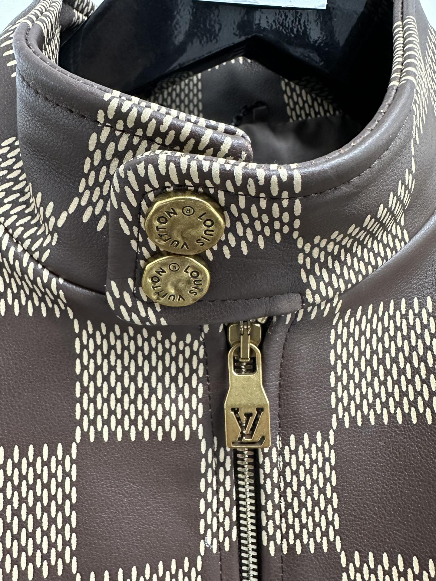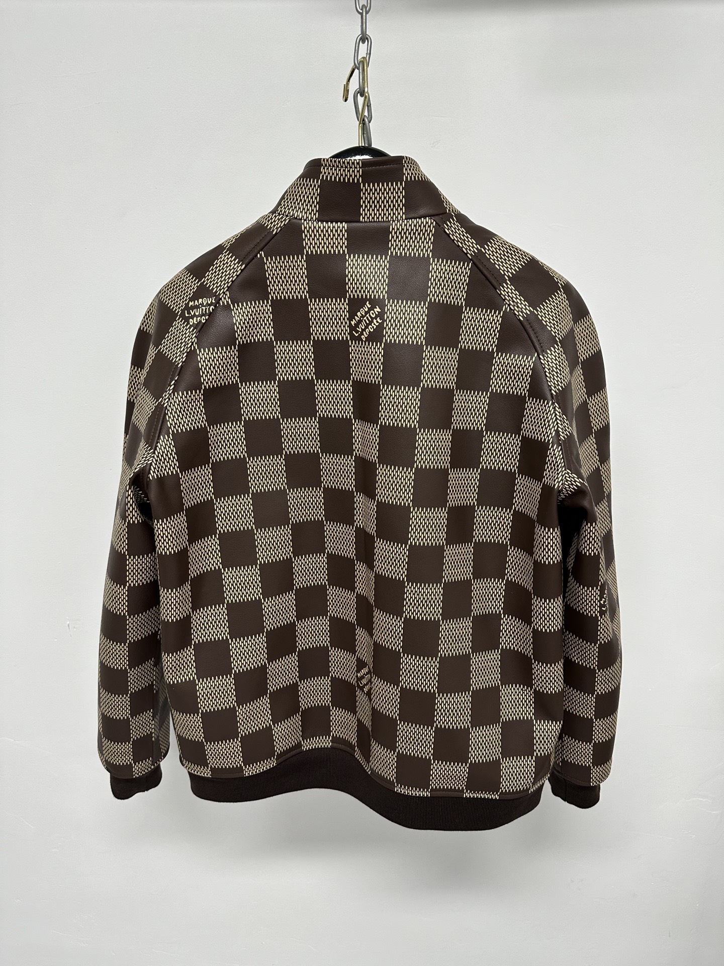 NIGO Louis Vuitton Men's Fall And Winter Brown Checkerboard Pattern Collar Zipper Cowhide Long Sleeved Jacket #nigo72611