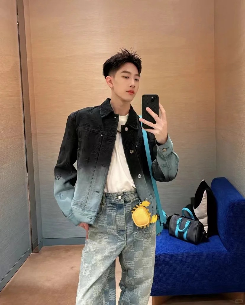NIGO Louis Vuitton Men's Fall and Winter Logo Embroidery Gradient Single Breasted Long Sleeve Denim Jacket #nigo72741