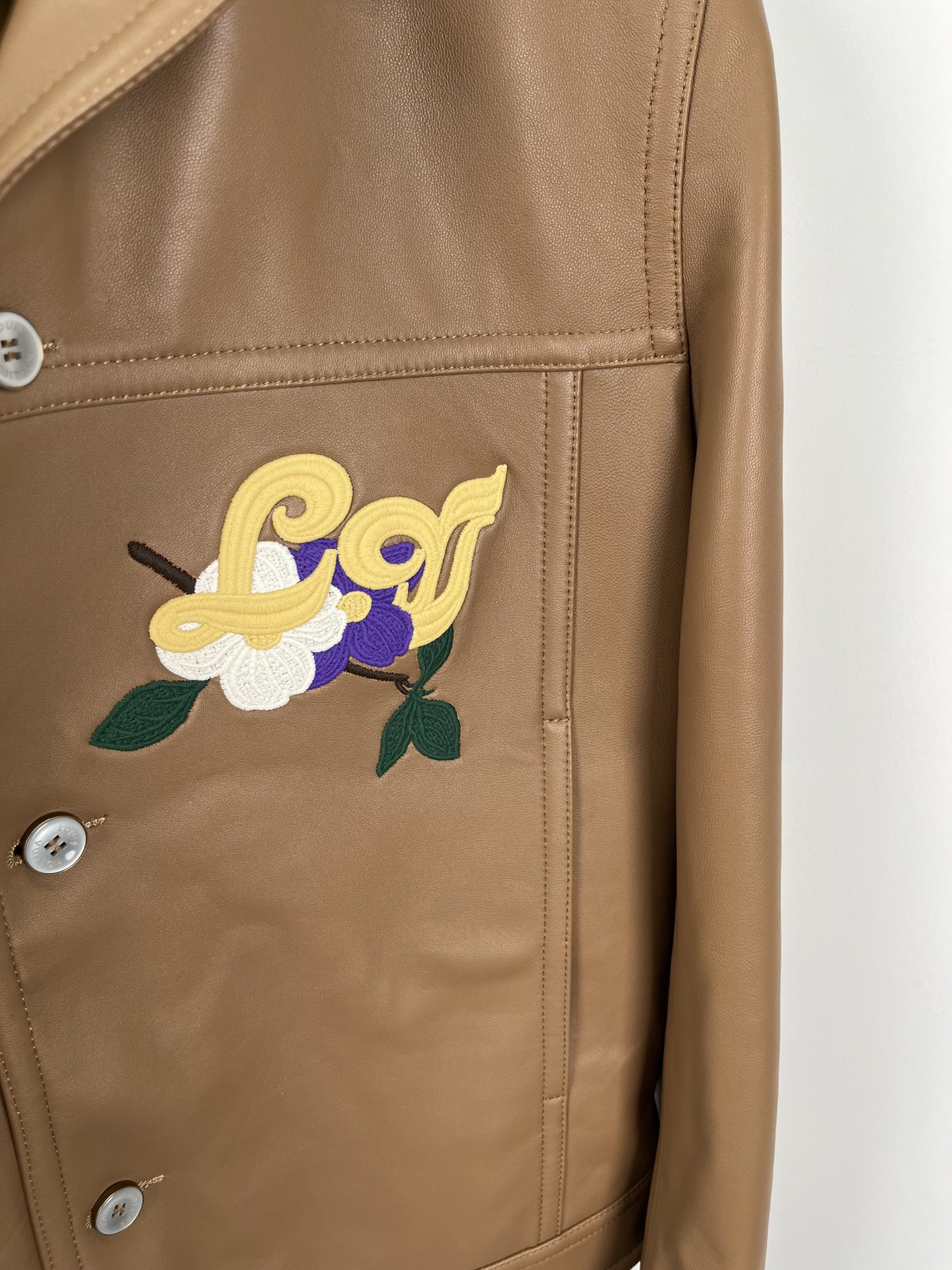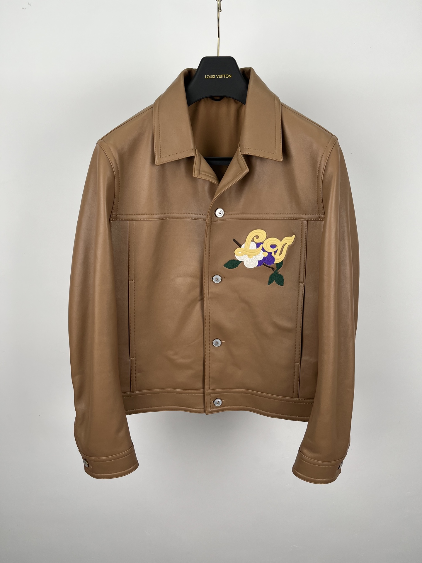 NIGO Louis Vuitton Men's Fall/Winter Brown Floral Embroidery Single Breasted Leather Long Sleeve Jacket #nigo72718