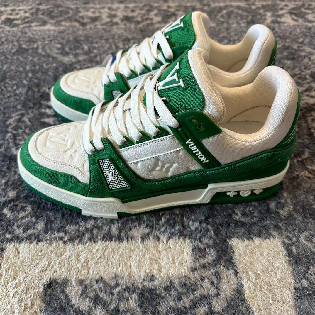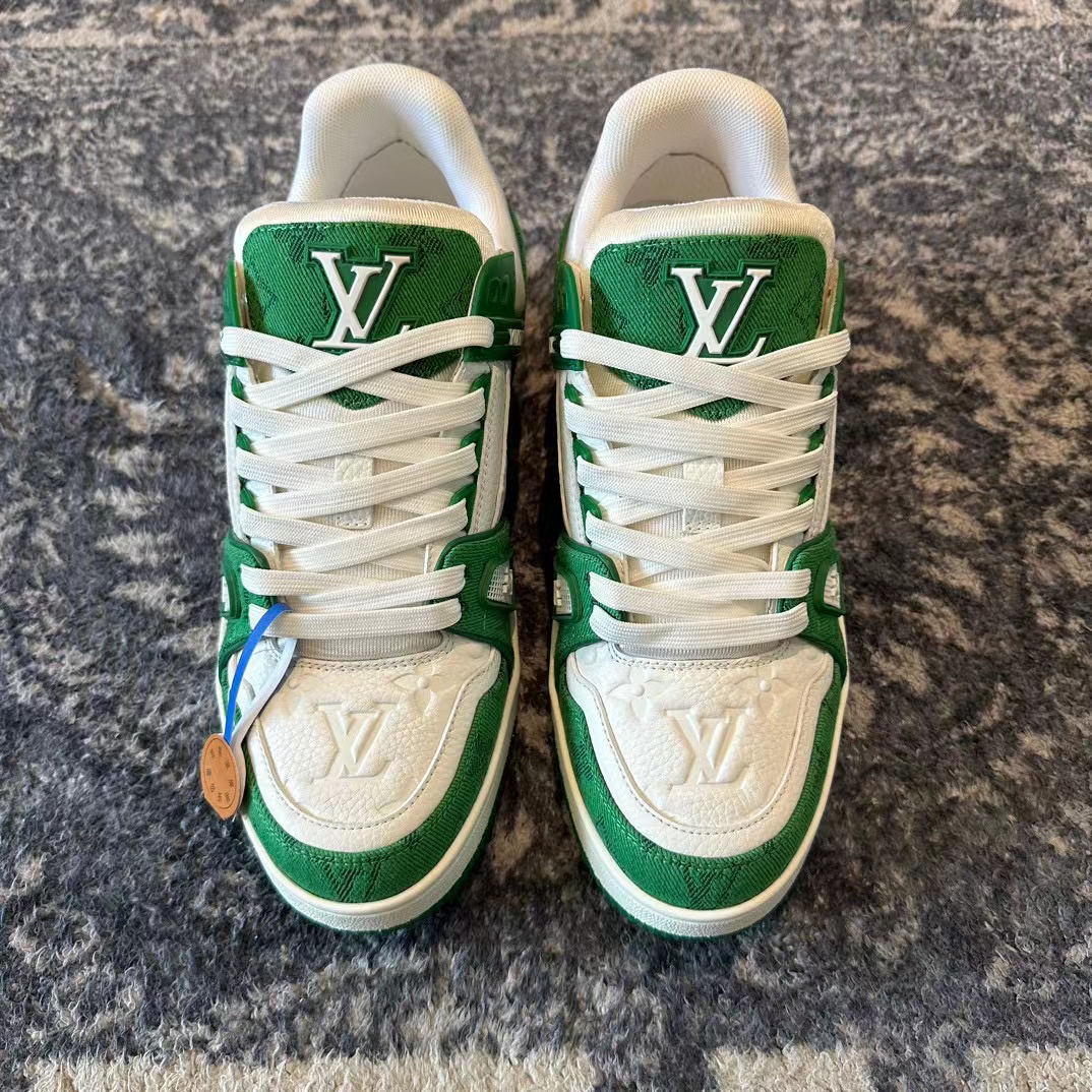 NIGO Louis Vuitton Men's Green White Dark Logo Low Top Casual Lace Up Board Shoes Sneakers #nigo98451