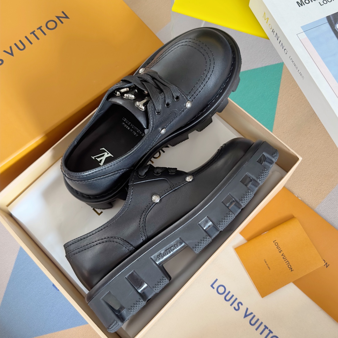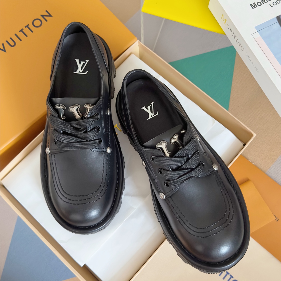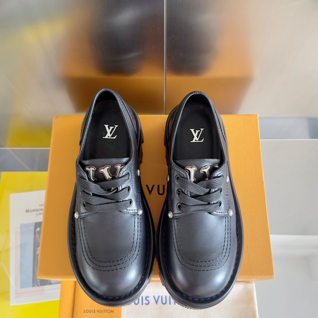 NIGO Louis Vuitton Men's Spring and Fall Black Embellished Decoration Round Toe Leather Thick Bottom Lace Up Loafers Shoes #nigo72651