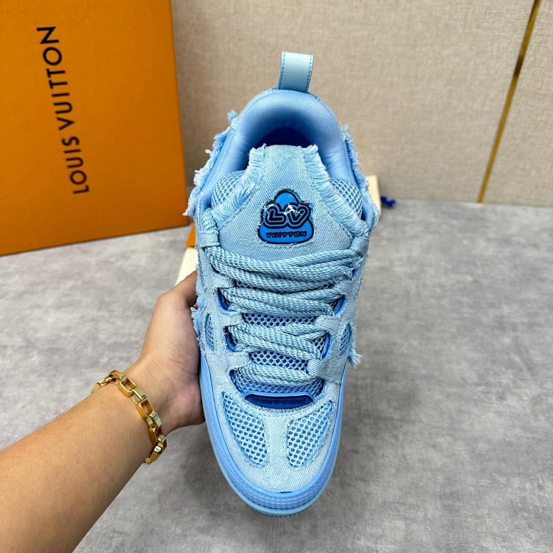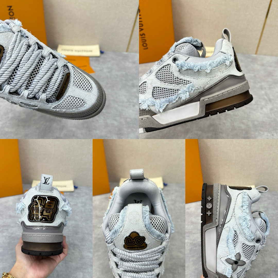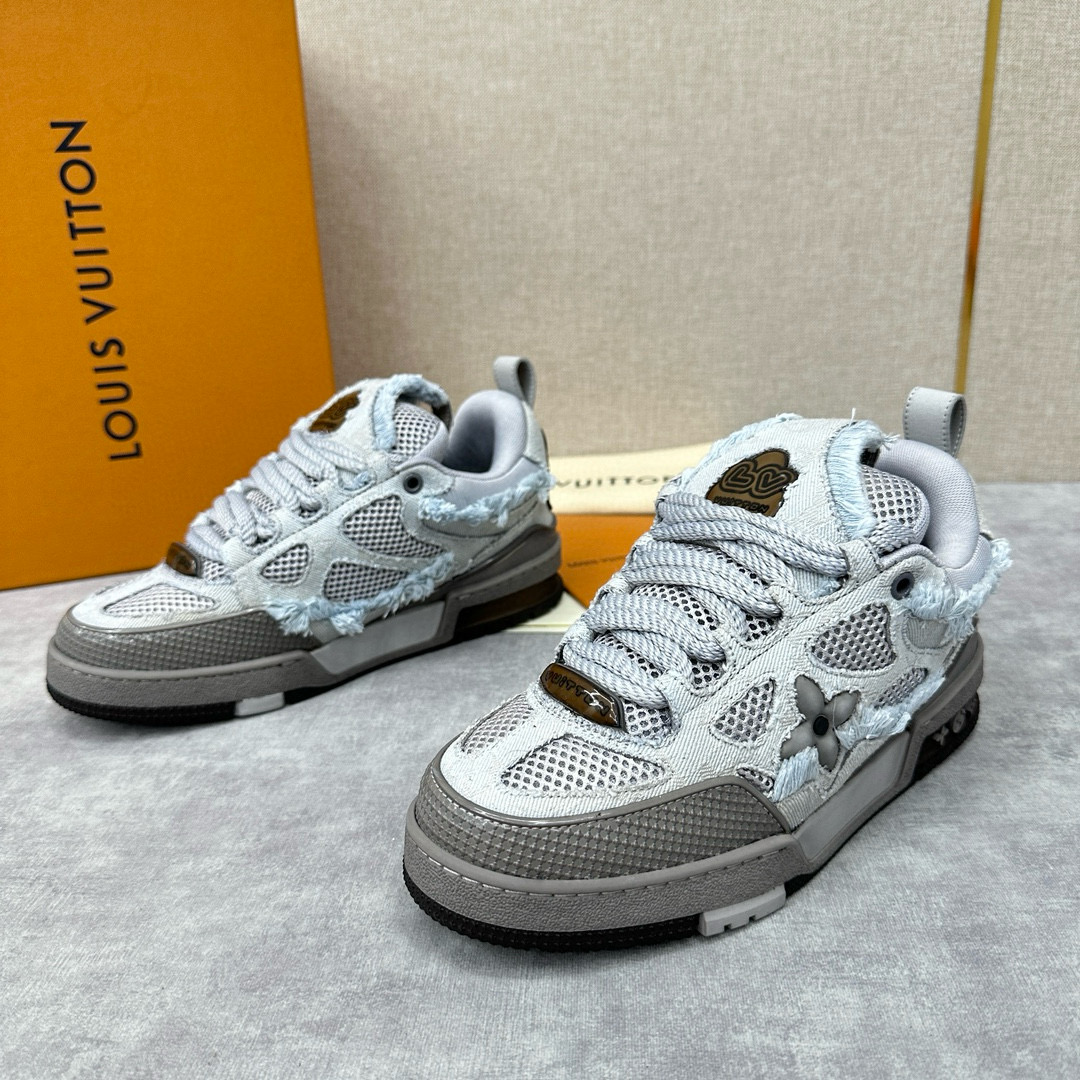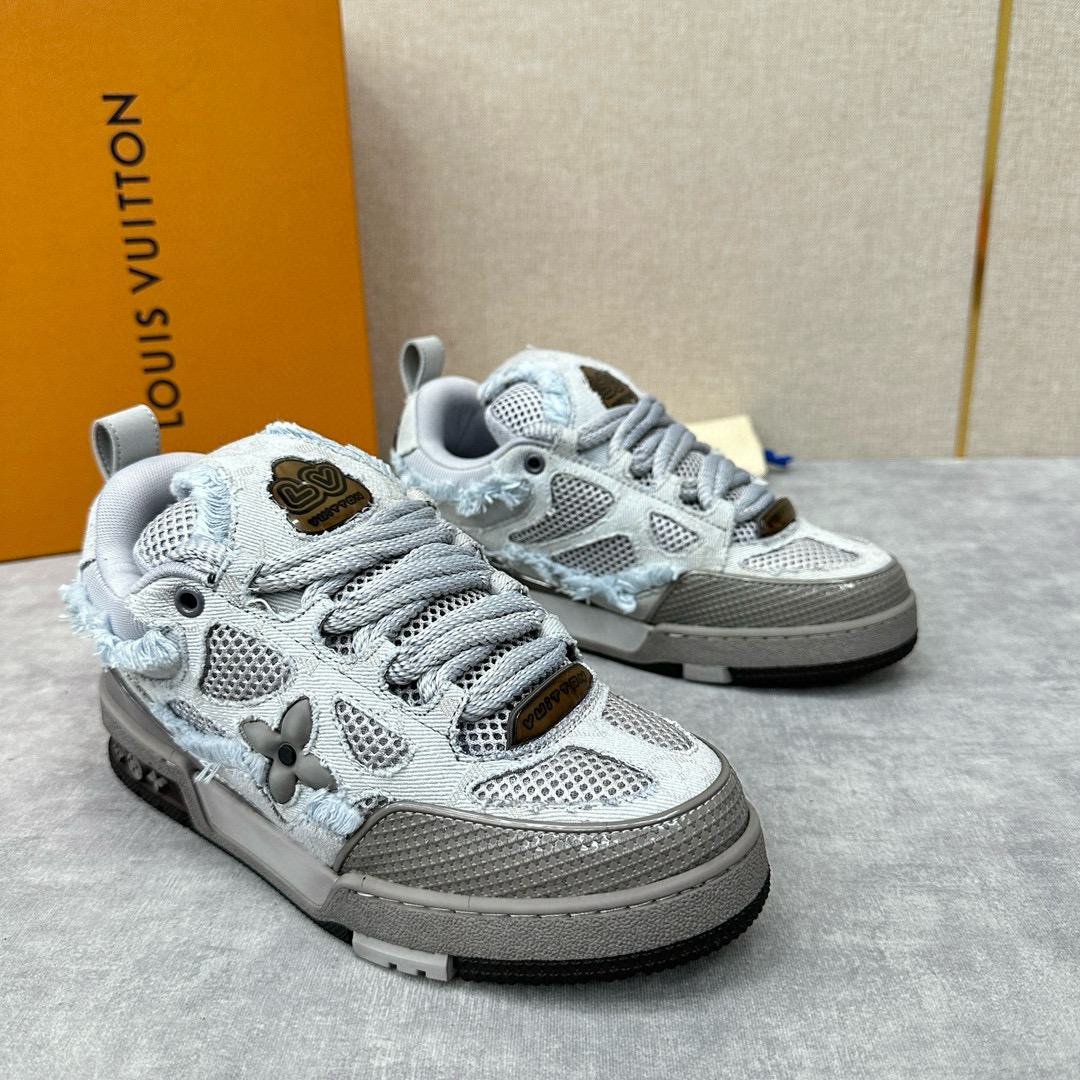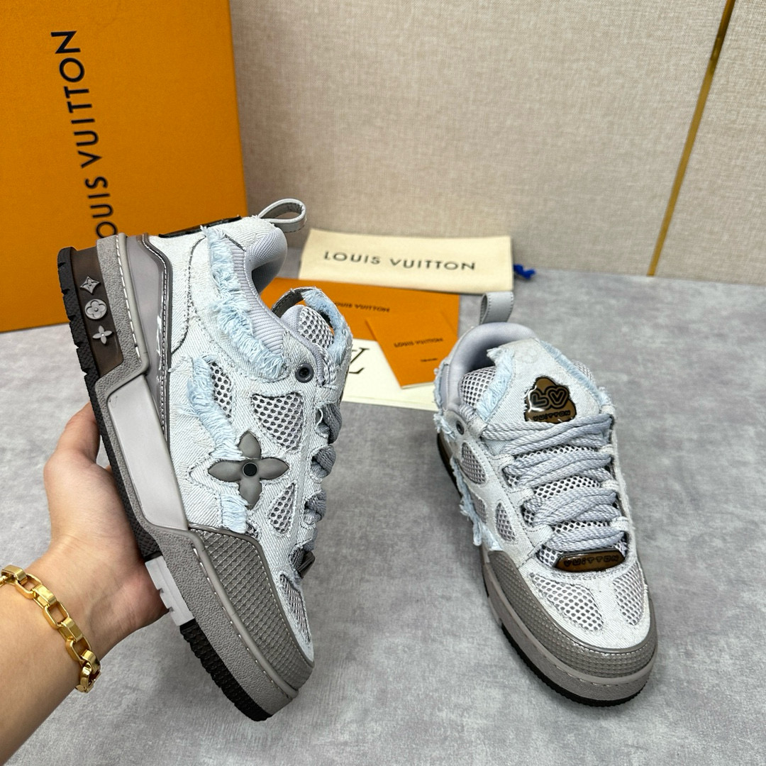 NIGO Louis Vuitton Men's Washed And Distressed Denim Patchwork Mesh Thick-Soled Trainers Pants #nigo97851