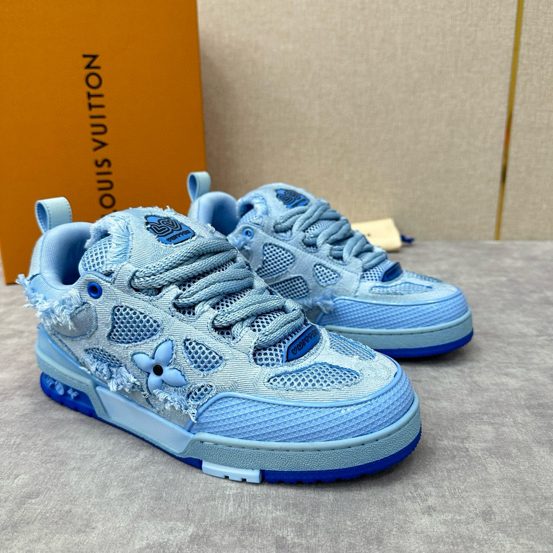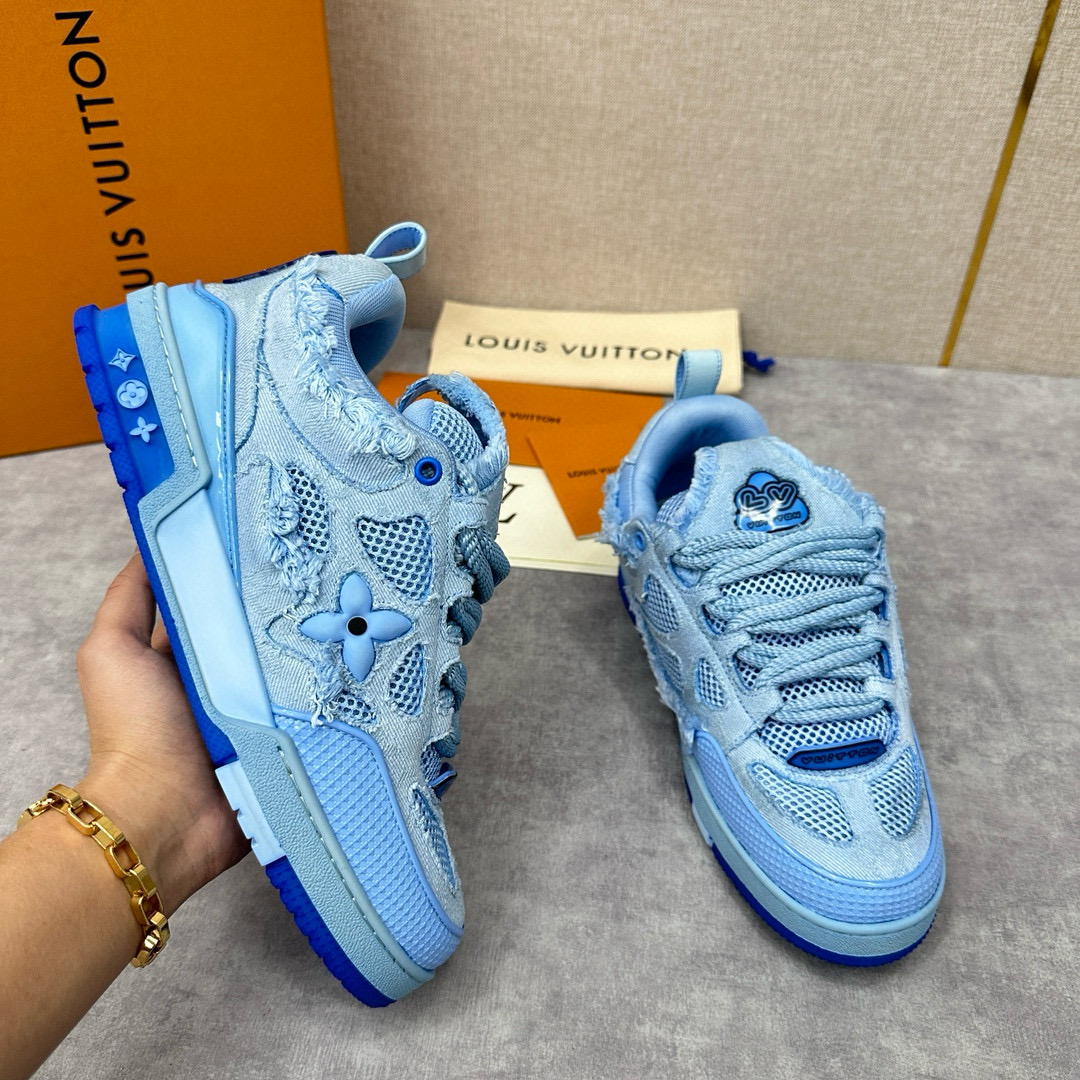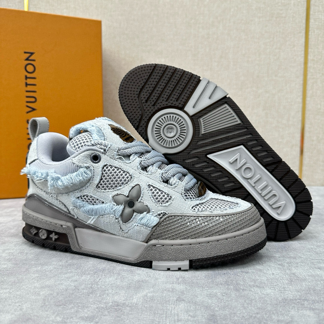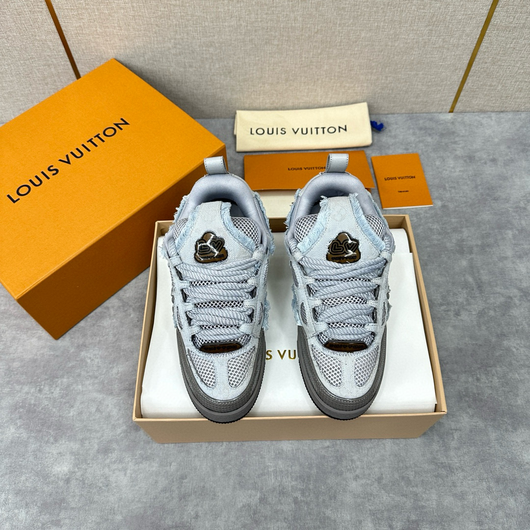 NIGO Louis Vuitton Men's Washed And Distressed Denim Patchwork Mesh Thick-Soled Trainers Pants #nigo97851