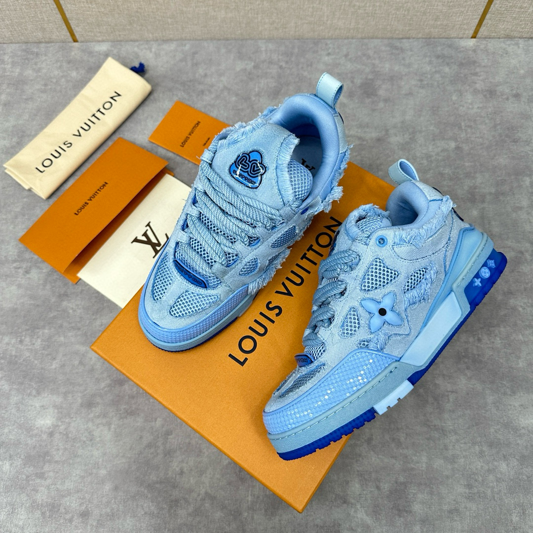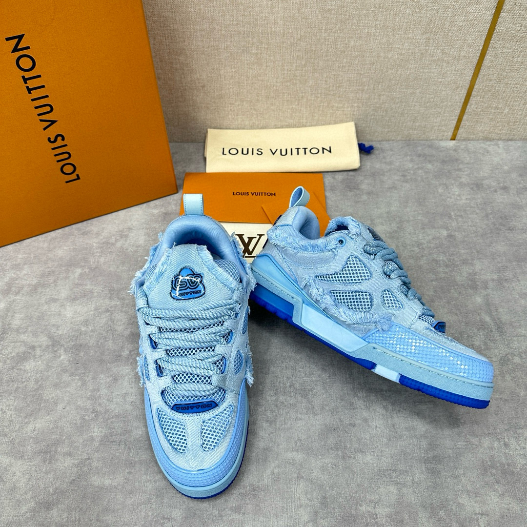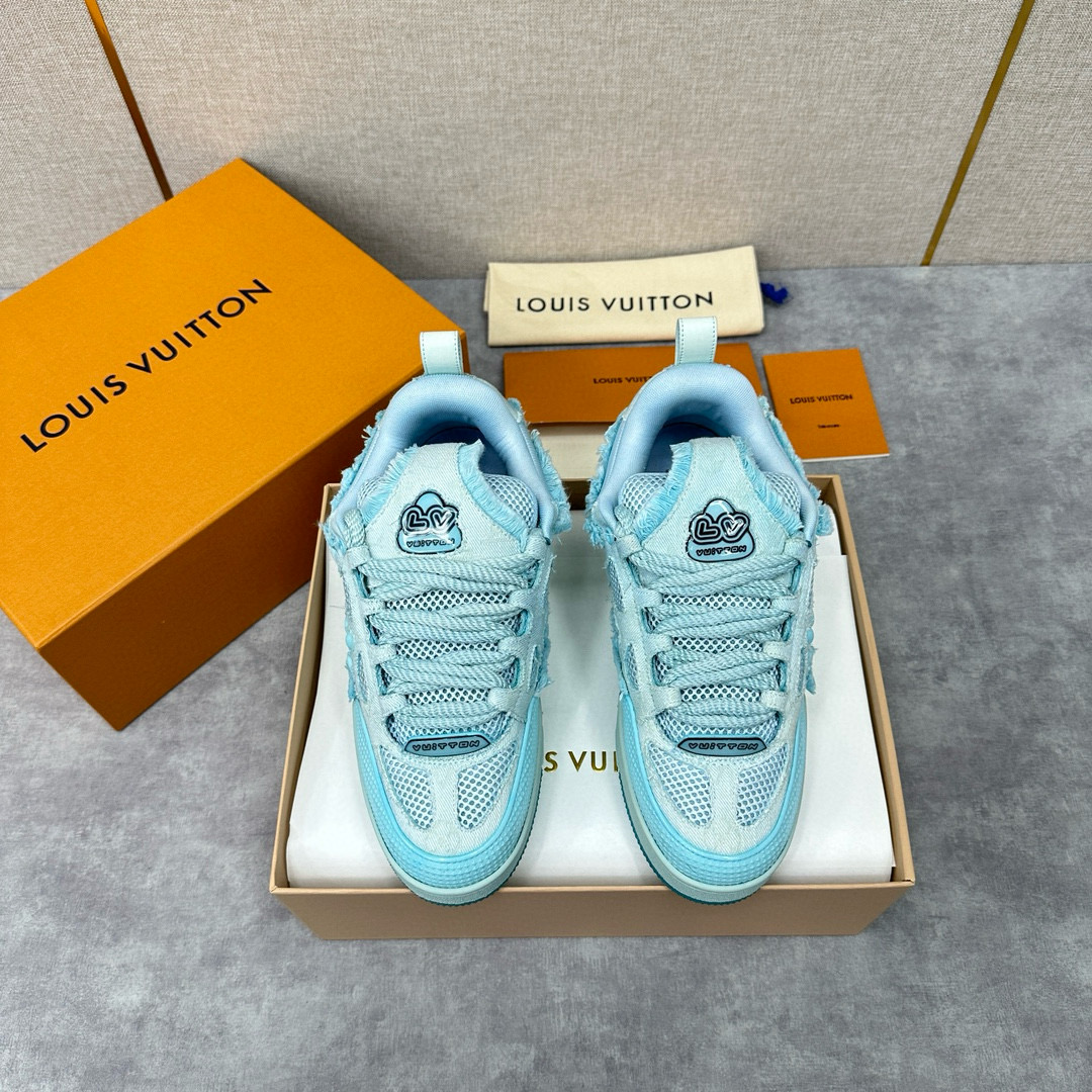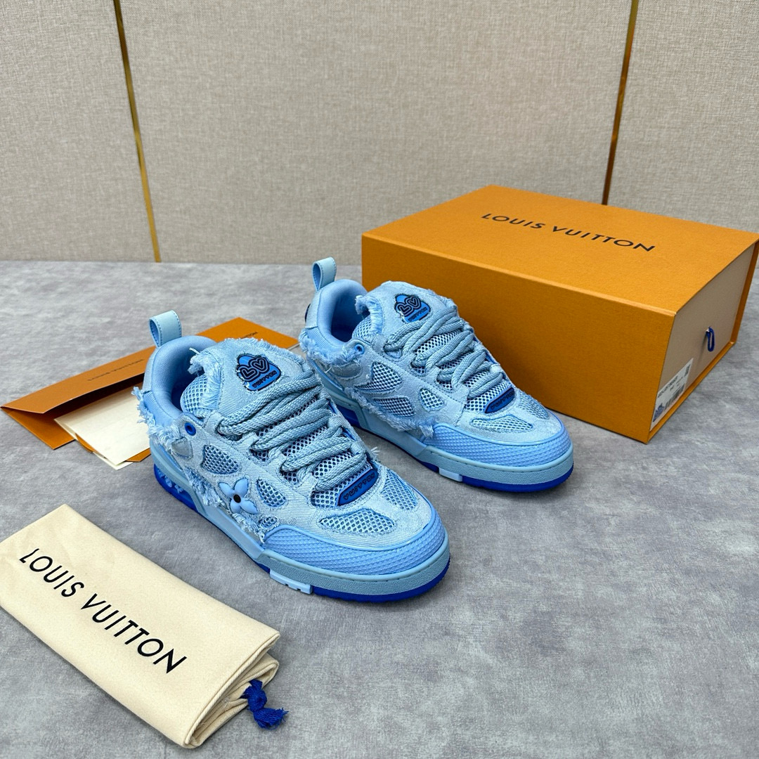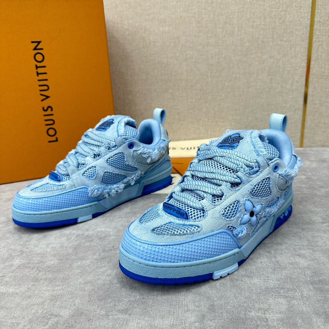 NIGO Louis Vuitton Men's Washed And Distressed Denim Patchwork Mesh Thick-Soled Trainers Pants #nigo97851