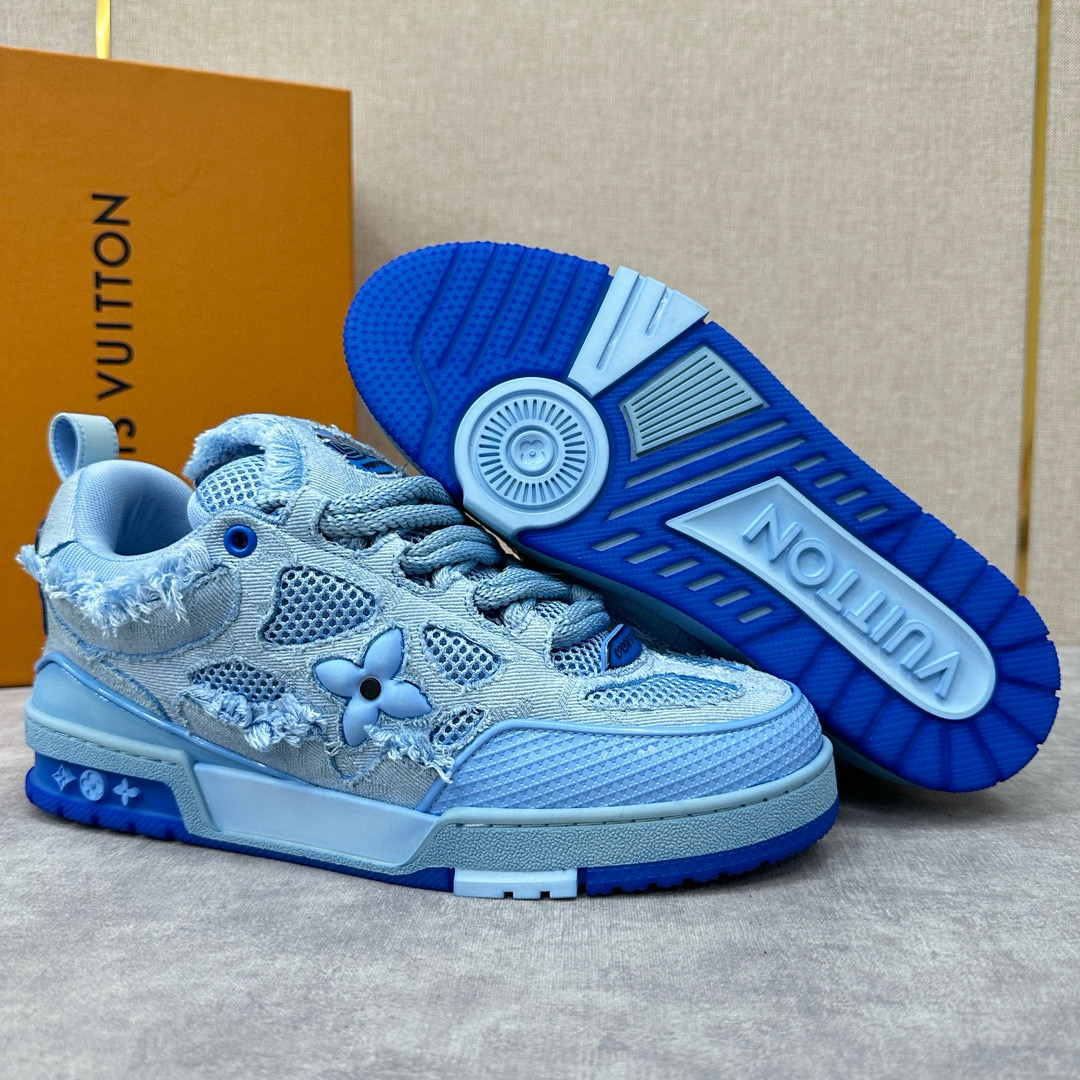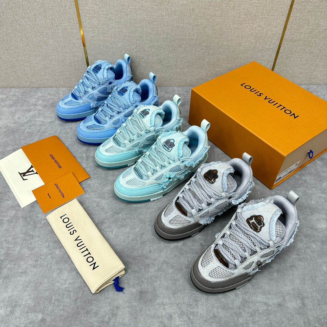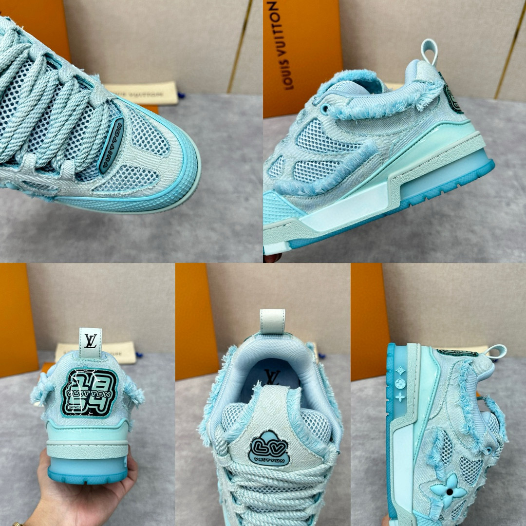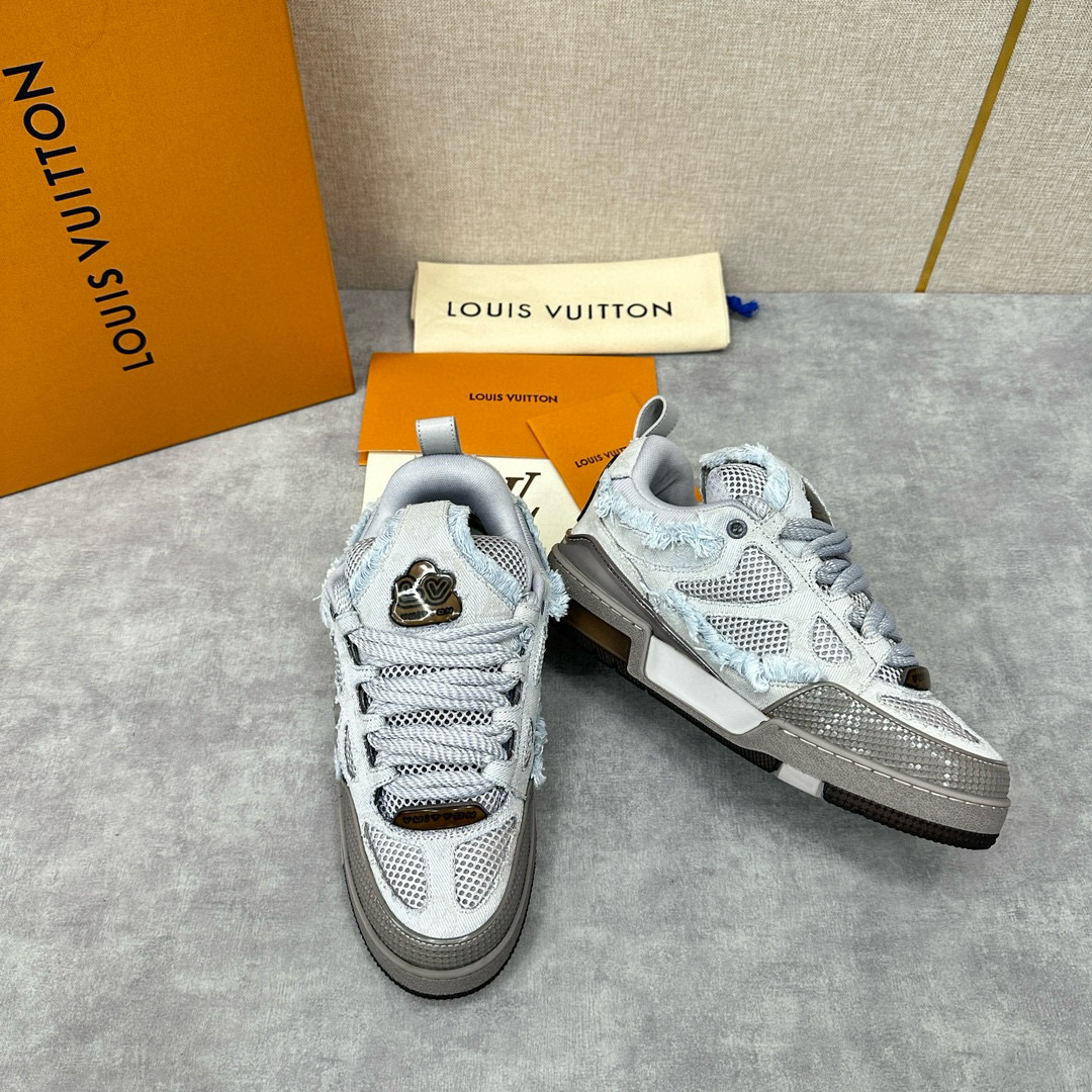NIGO Louis Vuitton Men's Washed And Distressed Denim Patchwork Mesh Thick-Soled Trainers Pants #nigo97851