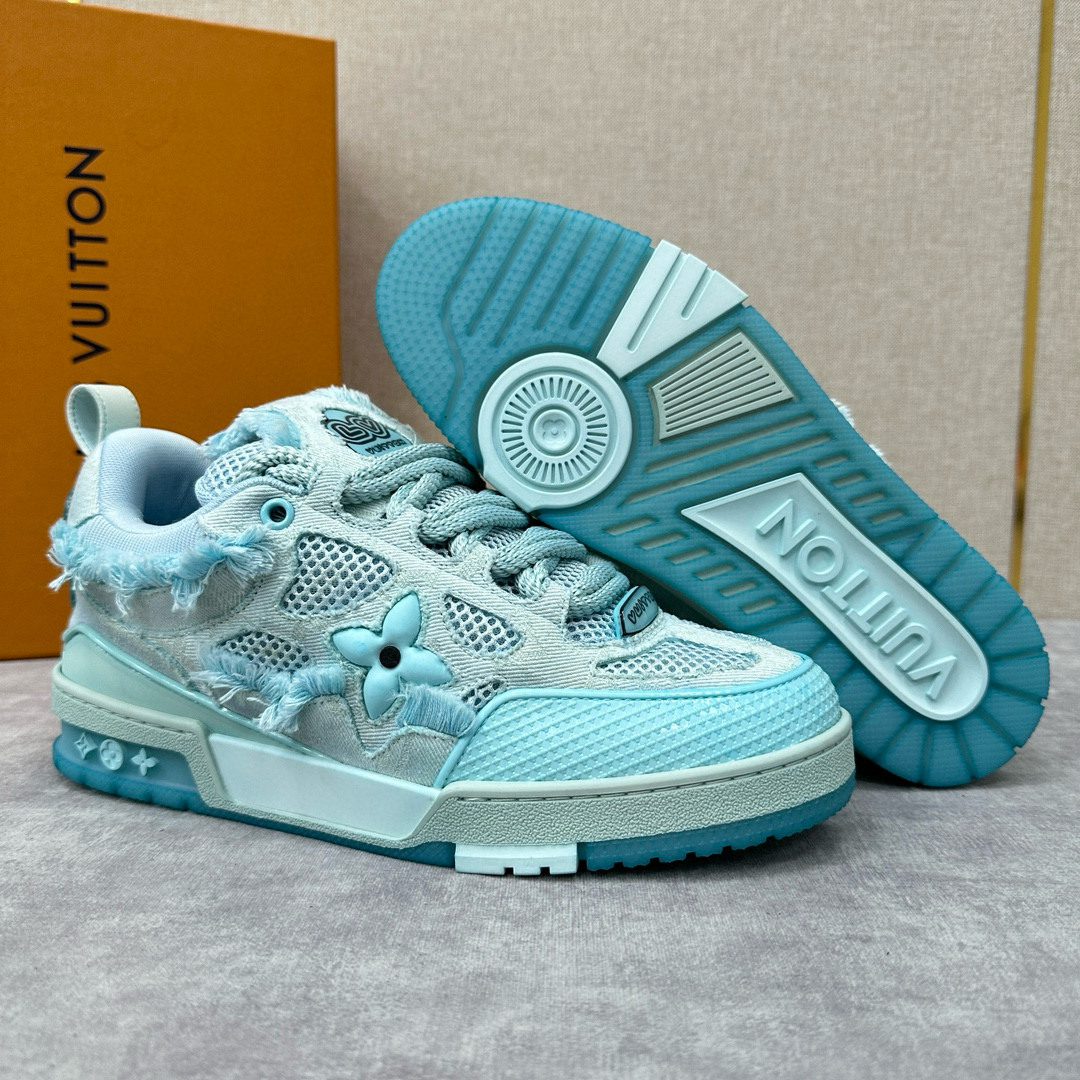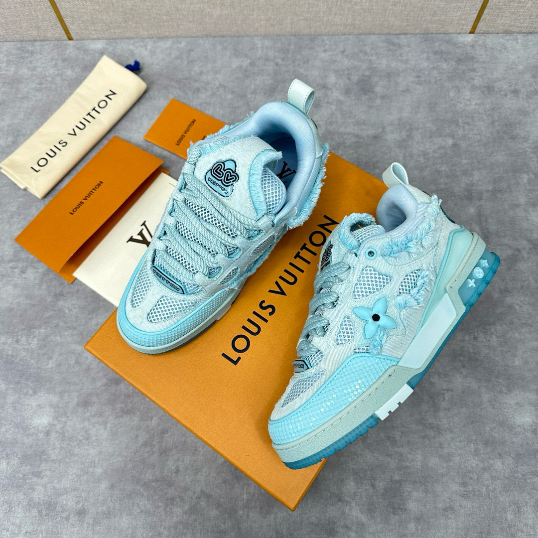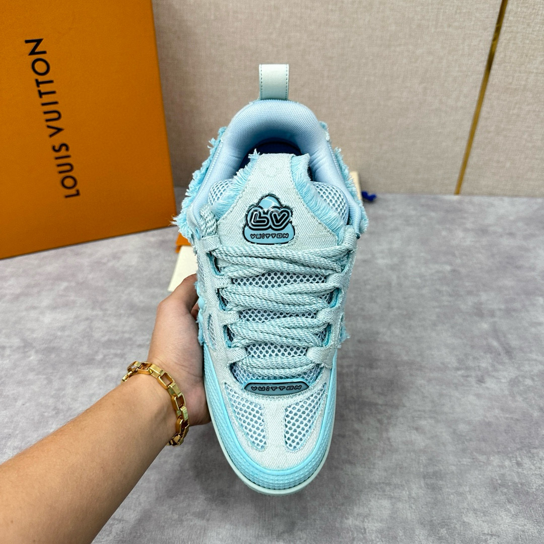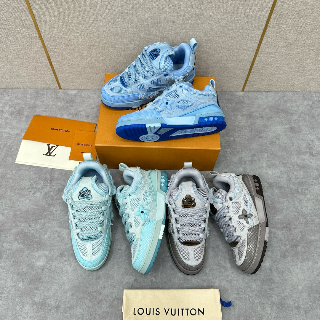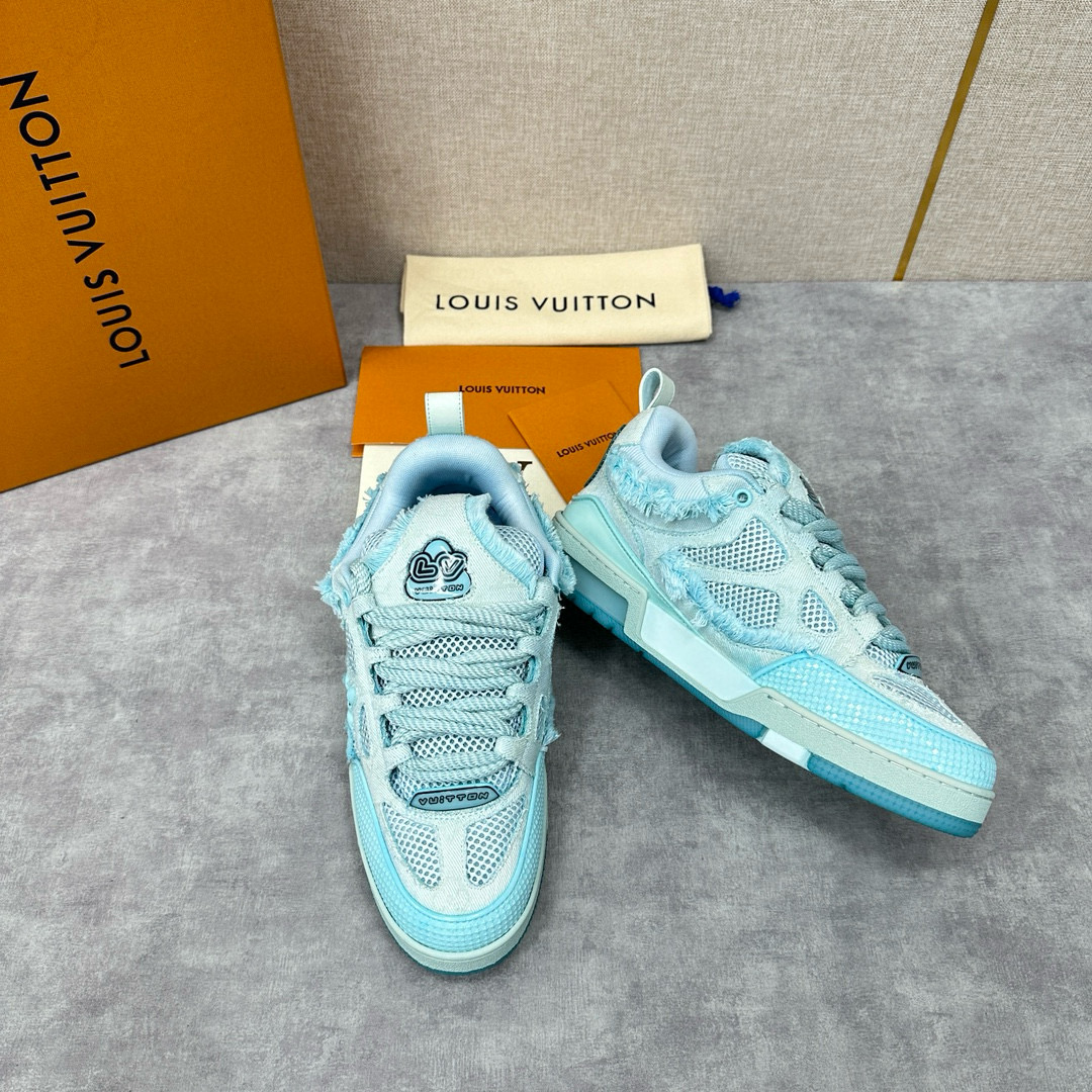 NIGO Louis Vuitton Men's Washed And Distressed Denim Patchwork Mesh Thick-Soled Trainers Pants #nigo97851