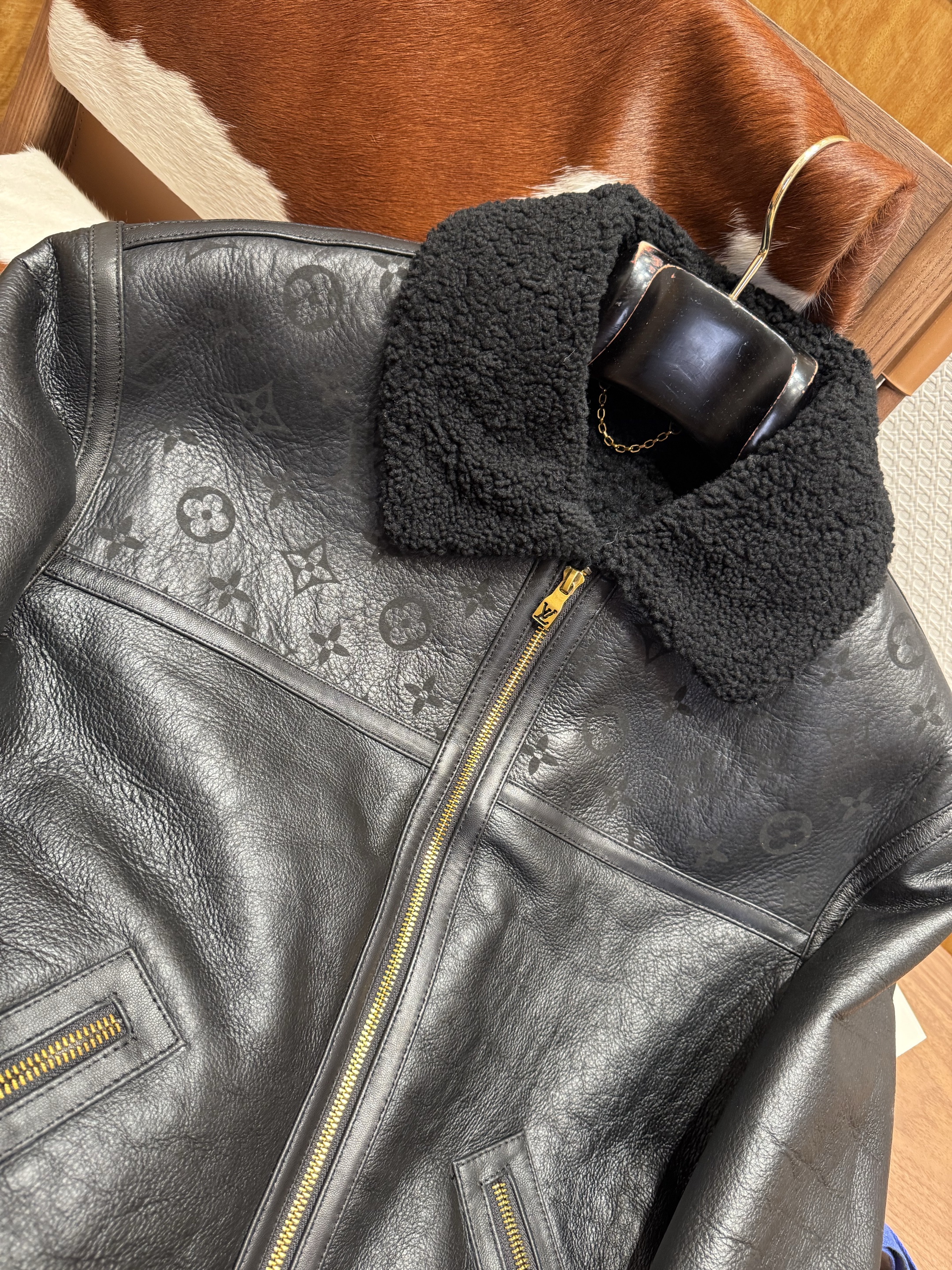 NIGO Louis Vuitton Men's Winter Solid Colour Printed Lambskin Wool Zip Up Long Sleeve Jacket #nigo76879