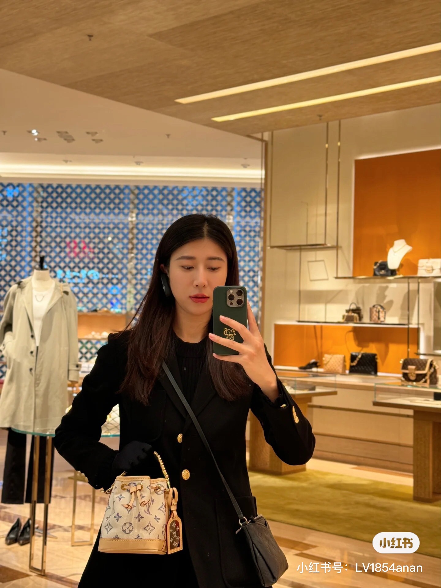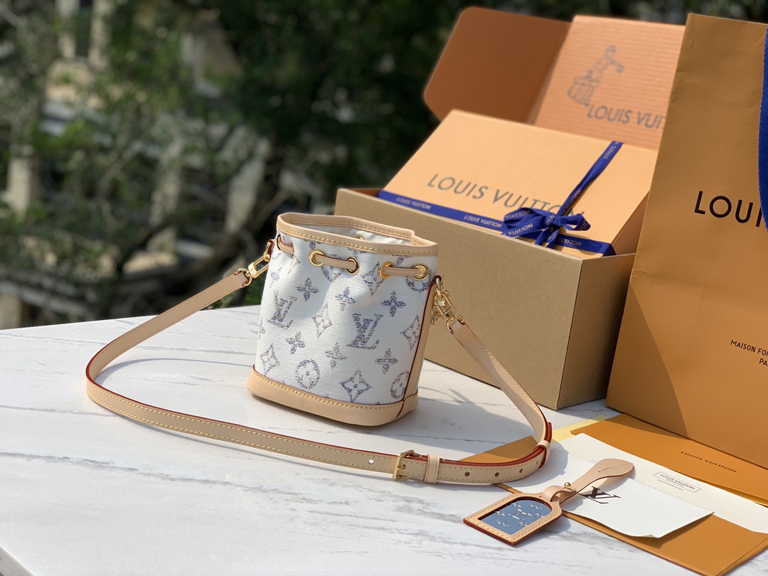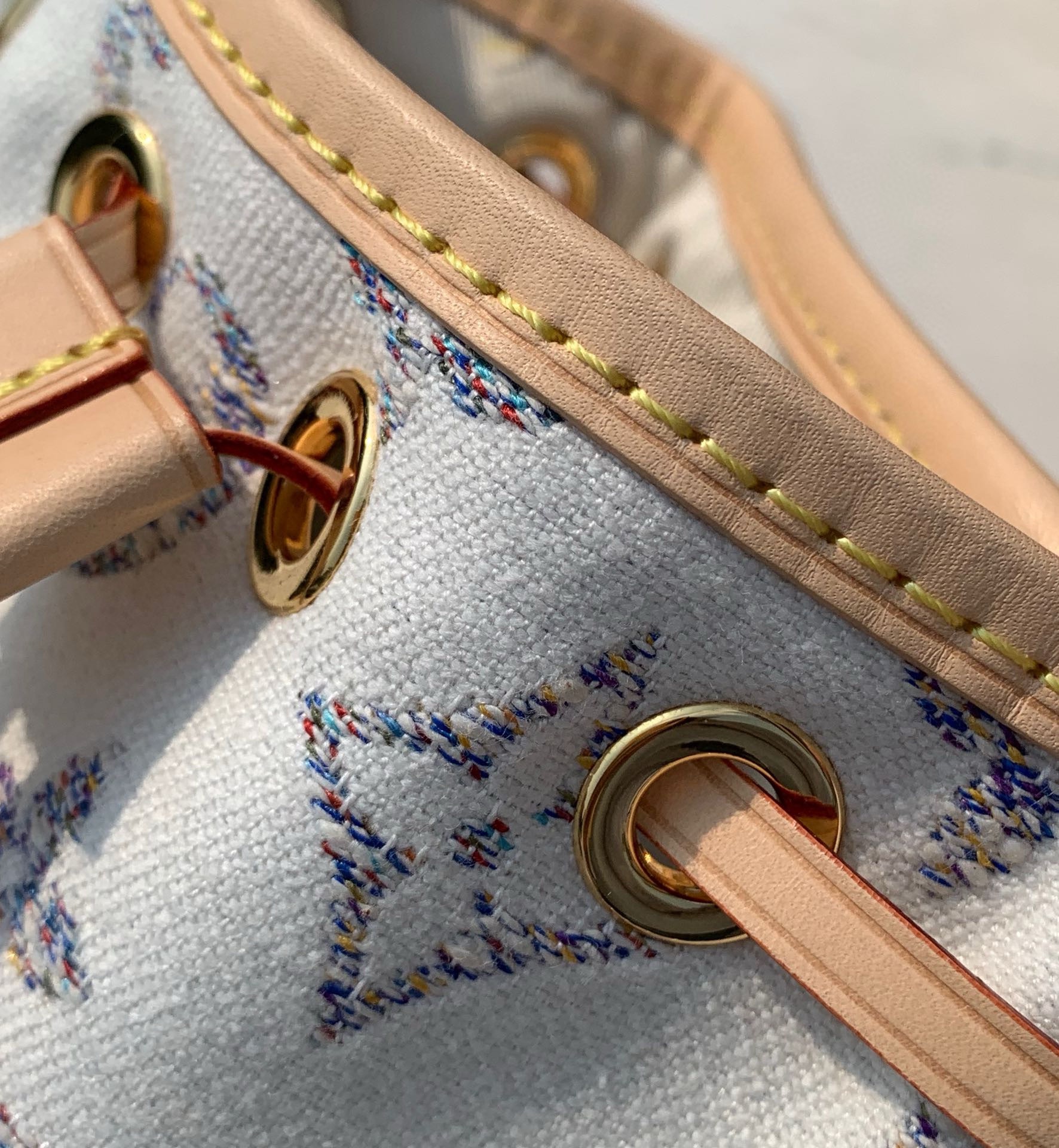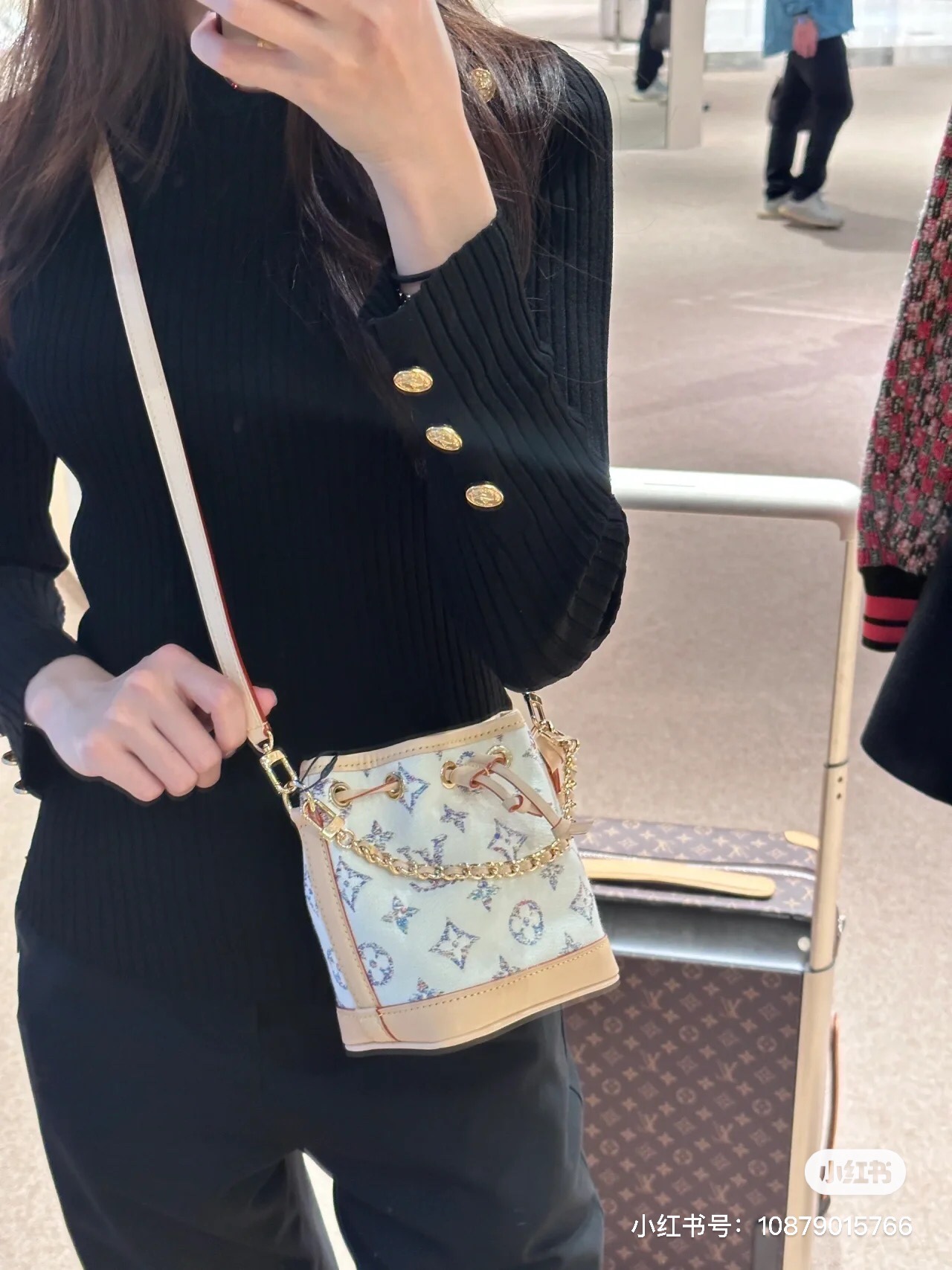 NIGO Louis Vuitton NANO NOÉ Women's Detachable Adjustable Shoulder Strap Drawstring Closure Fabric with Leather Bucket Bag Tote Shoulder Crossbody Bags #nigo72584