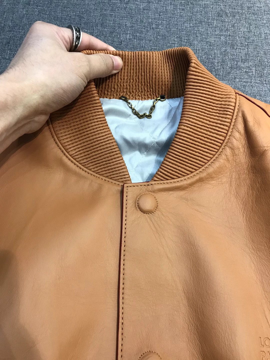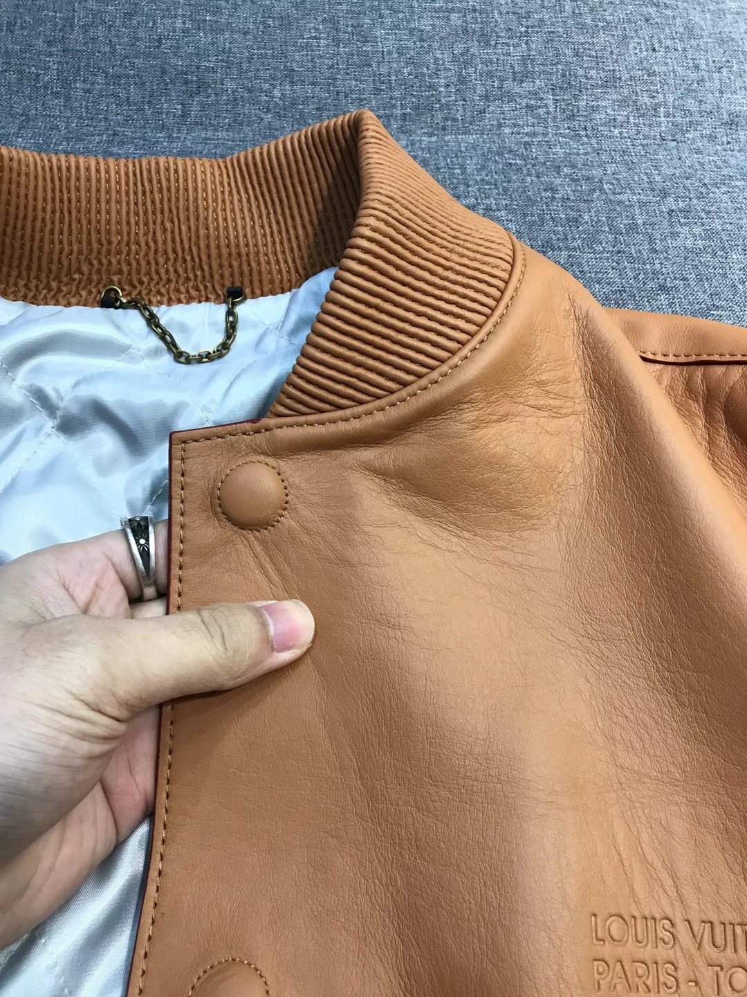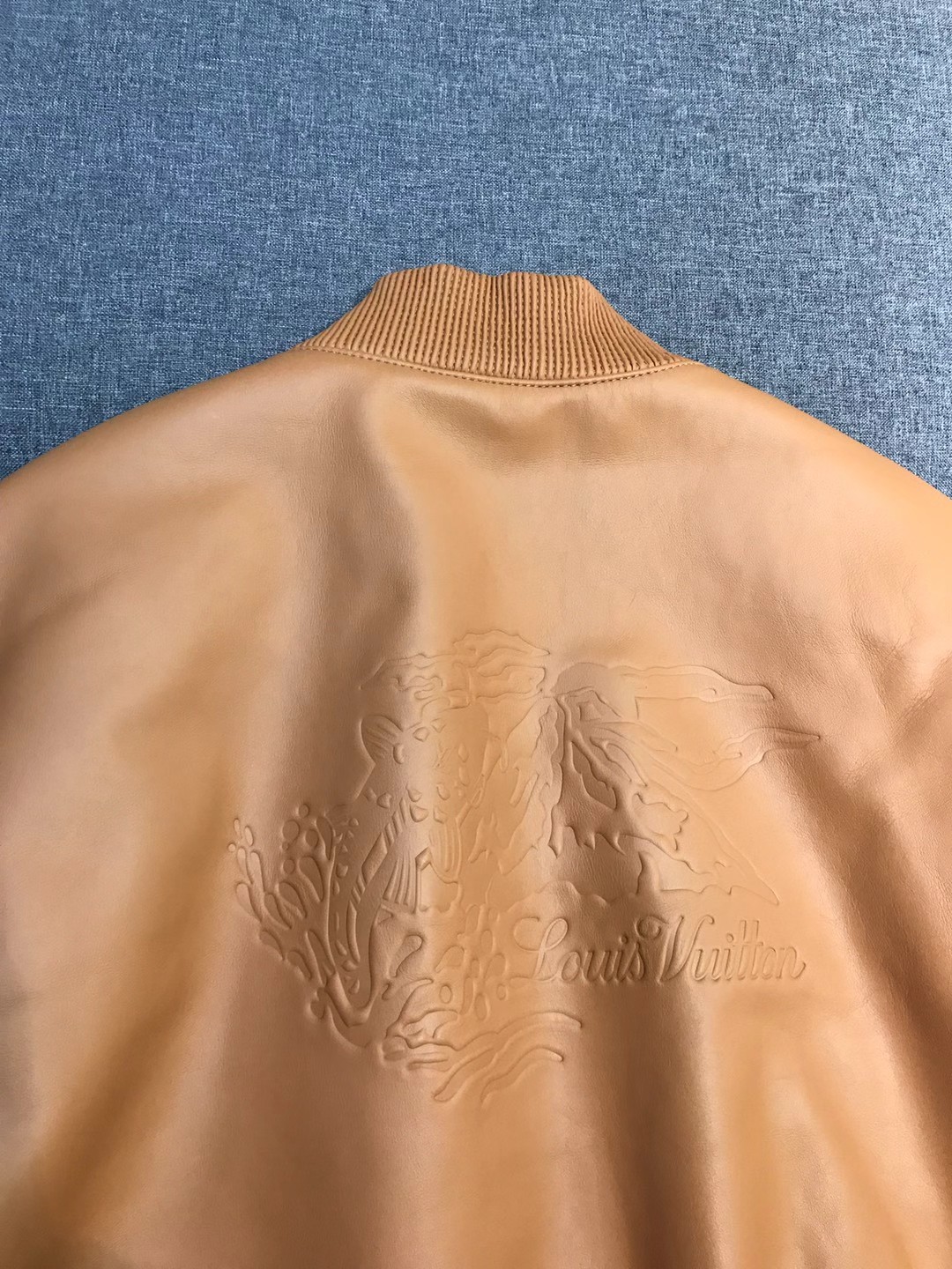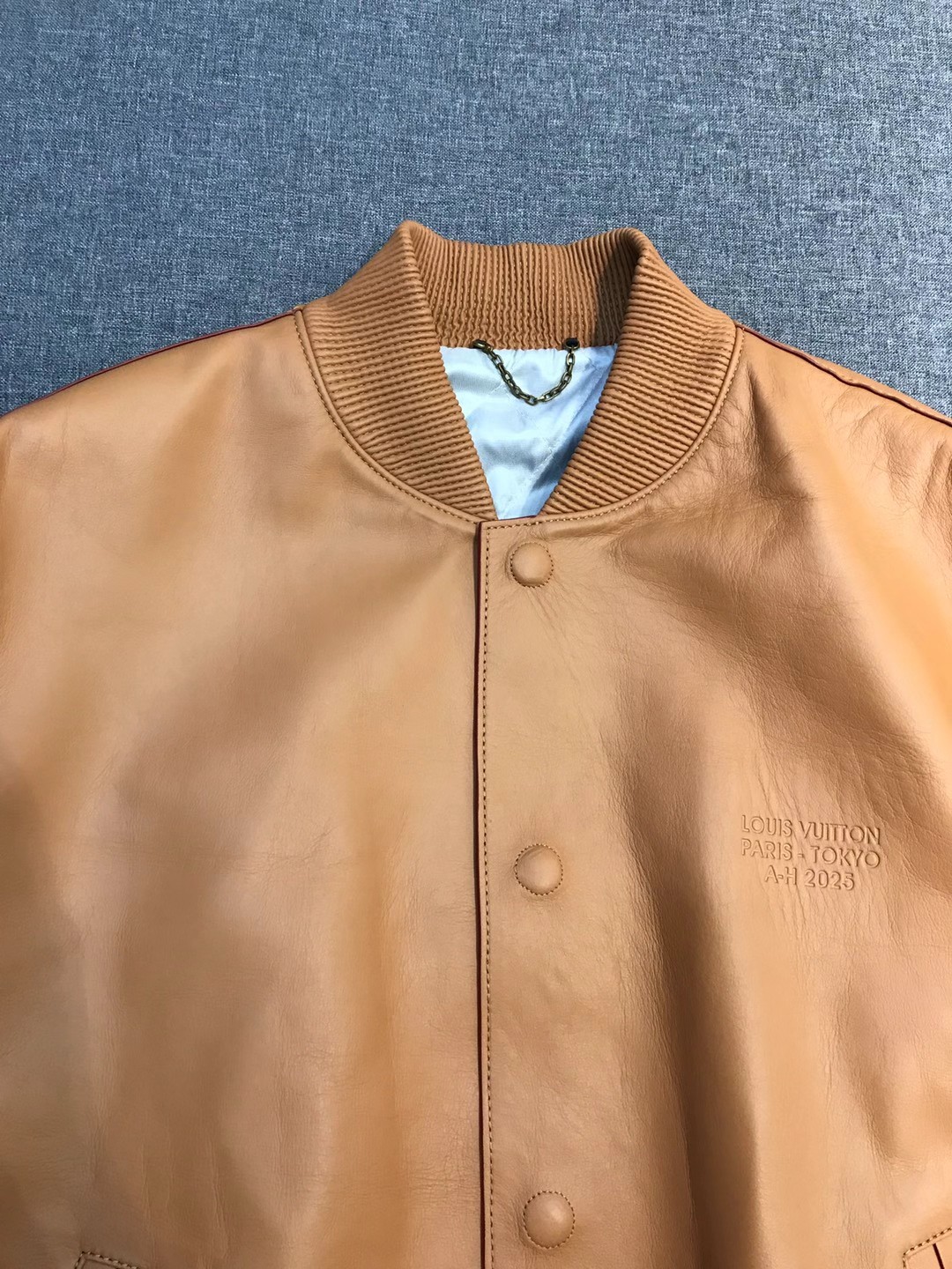 NIGO Louis Vuitton Natural Leather Baseball Jacket Stand Collar Loose Casual Long Sleeve Jacket #nigo332626
