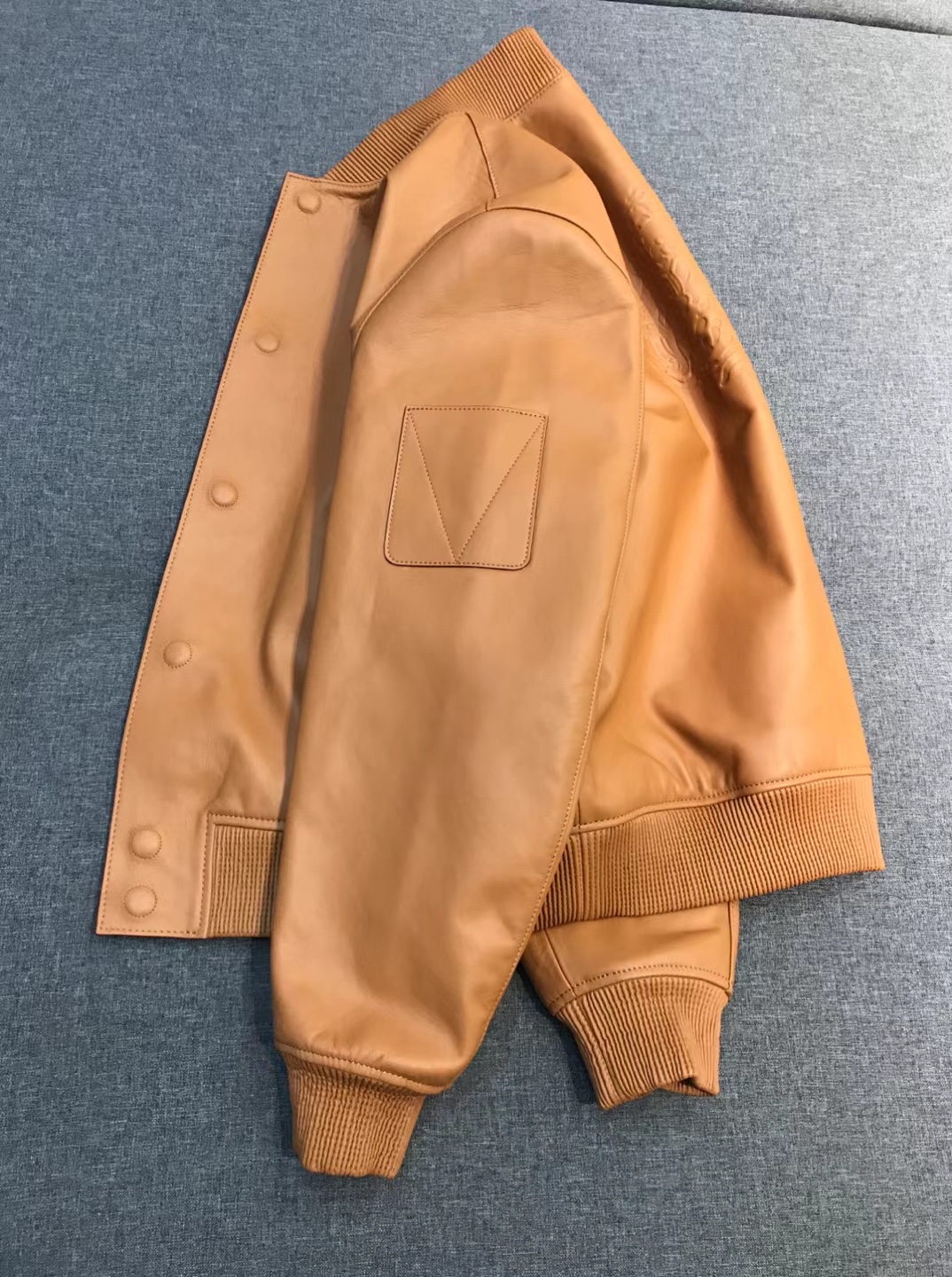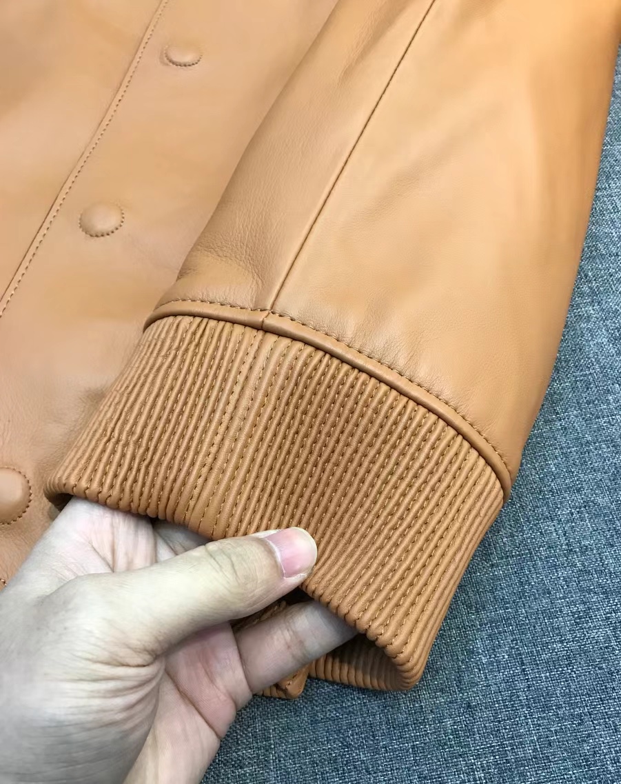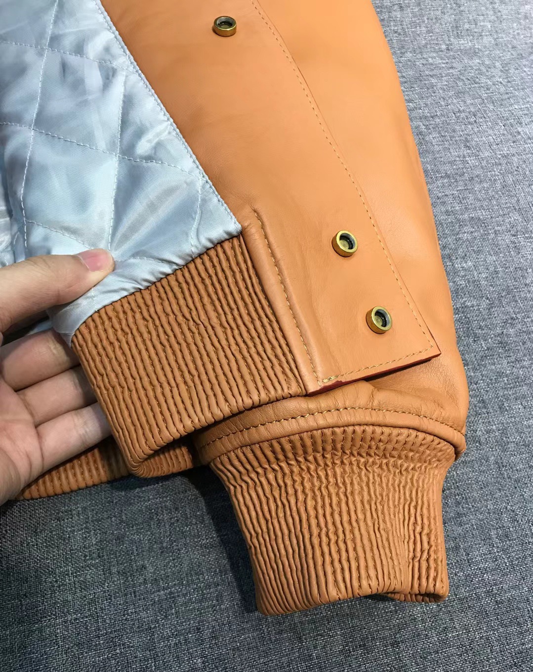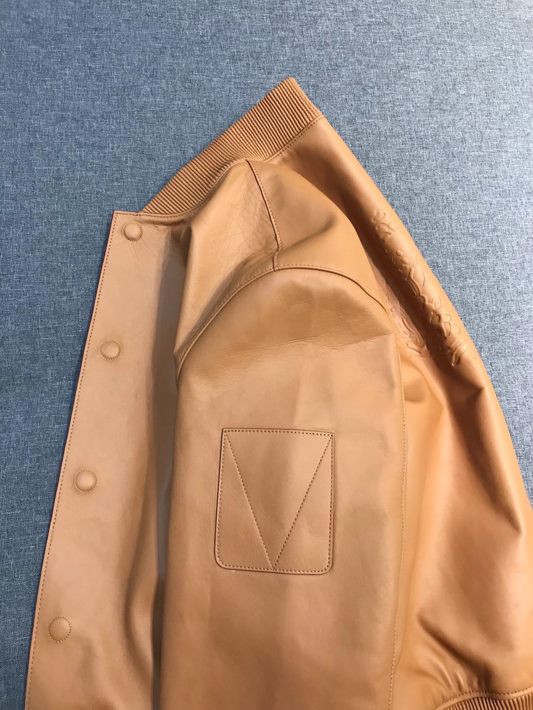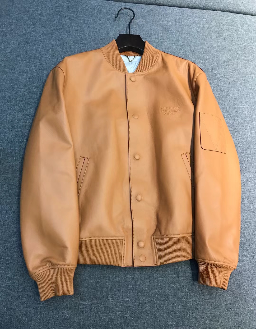 NIGO Louis Vuitton Natural Leather Baseball Jacket Stand Collar Loose Casual Long Sleeve Jacket #nigo332626