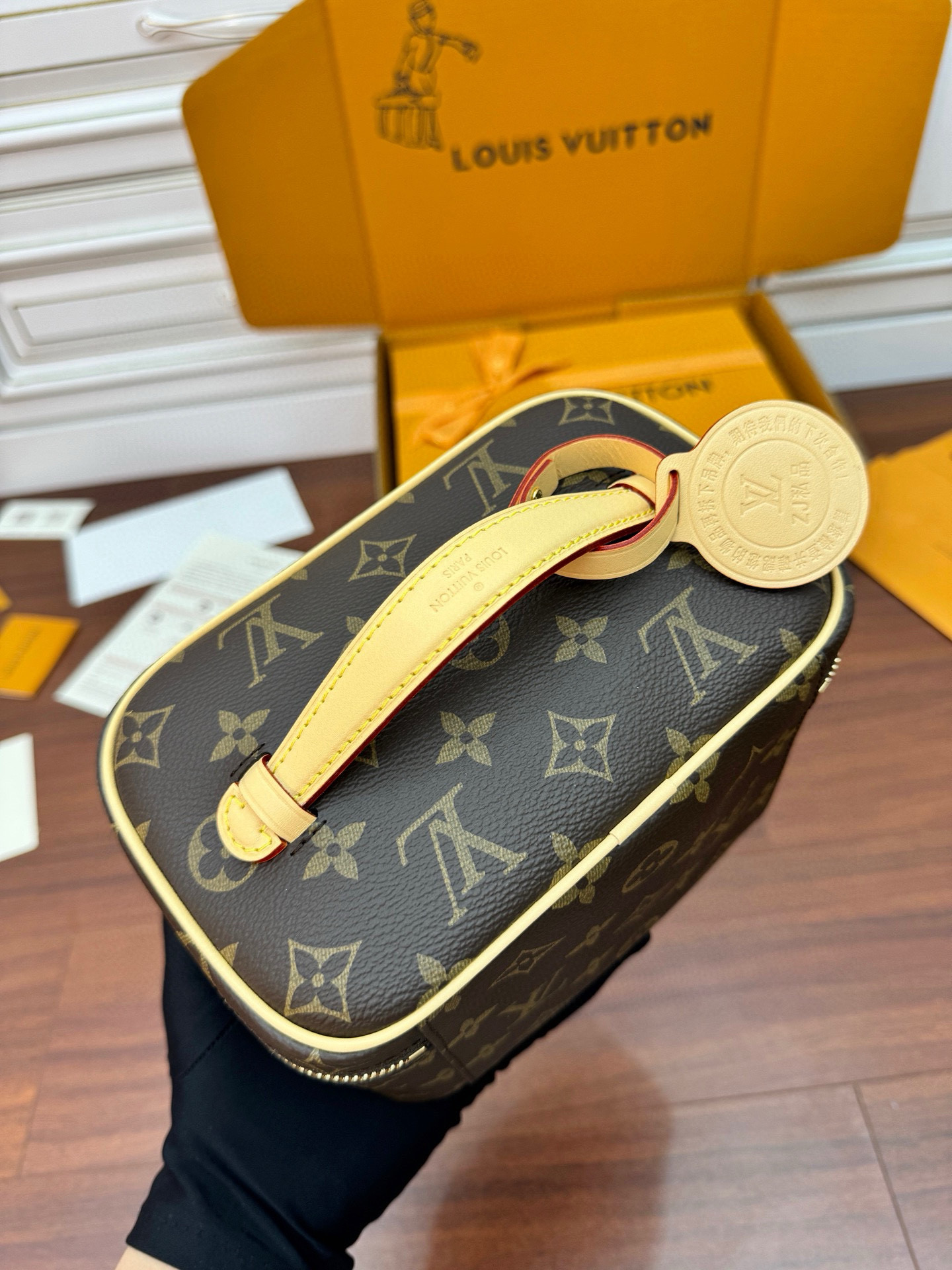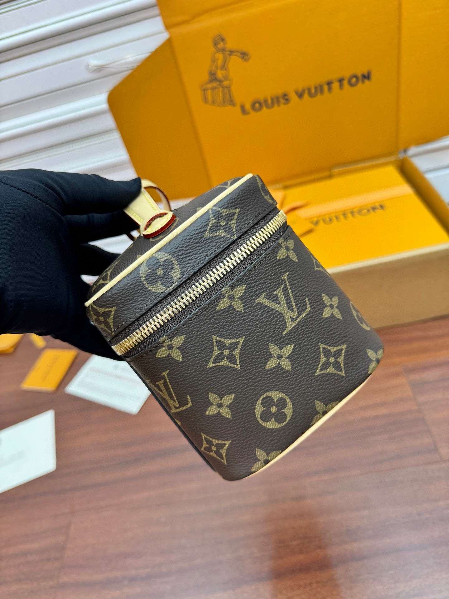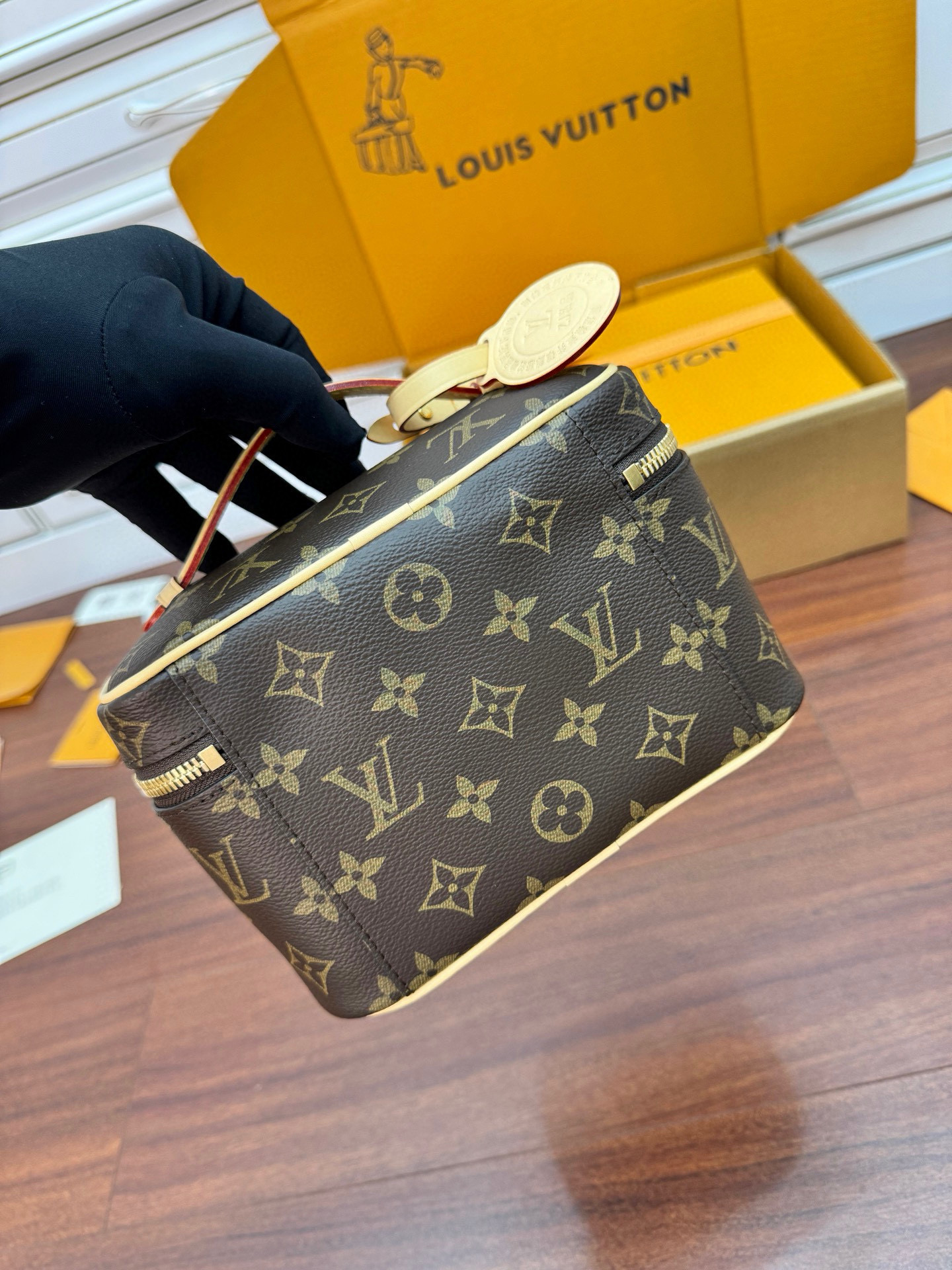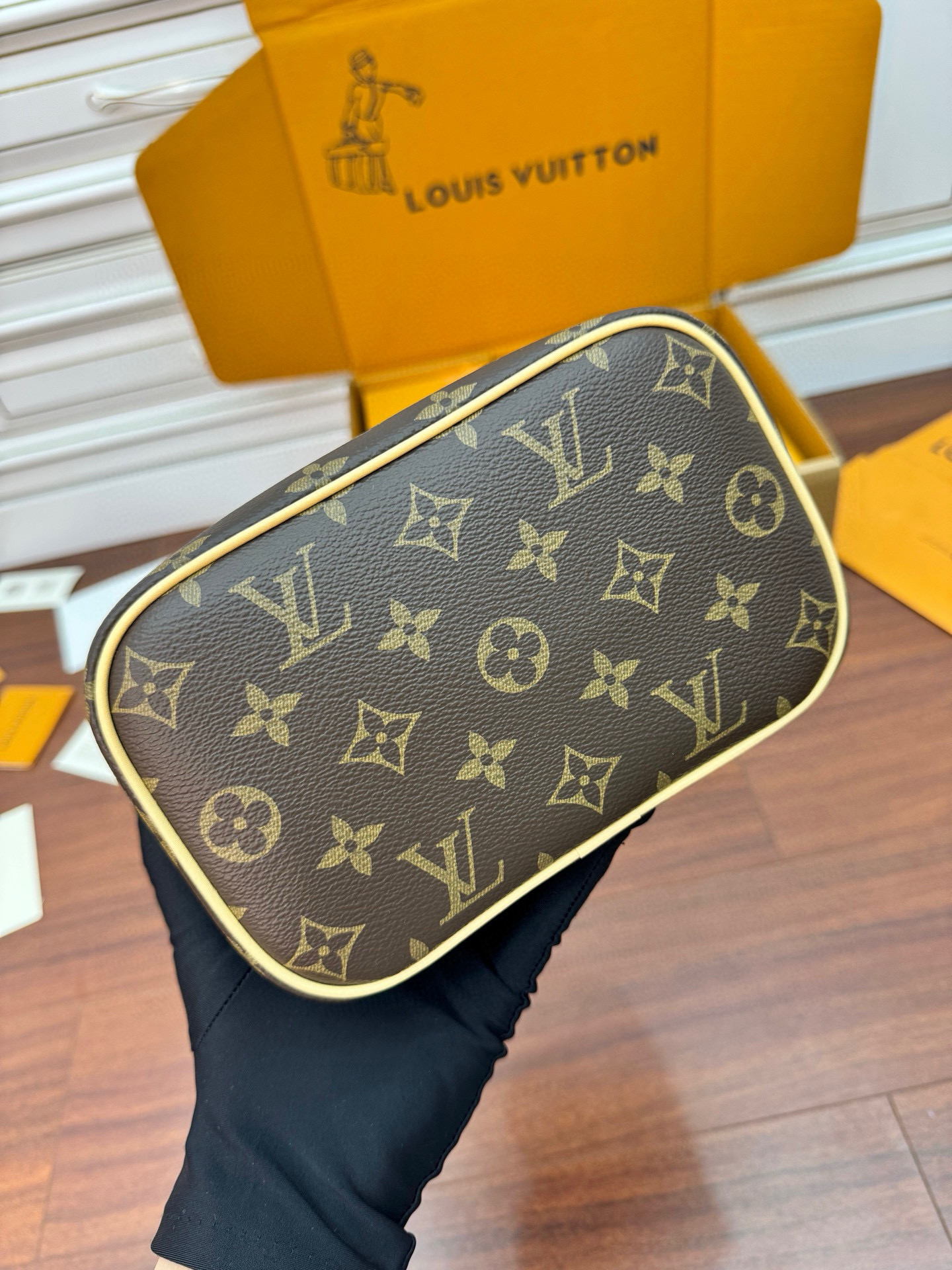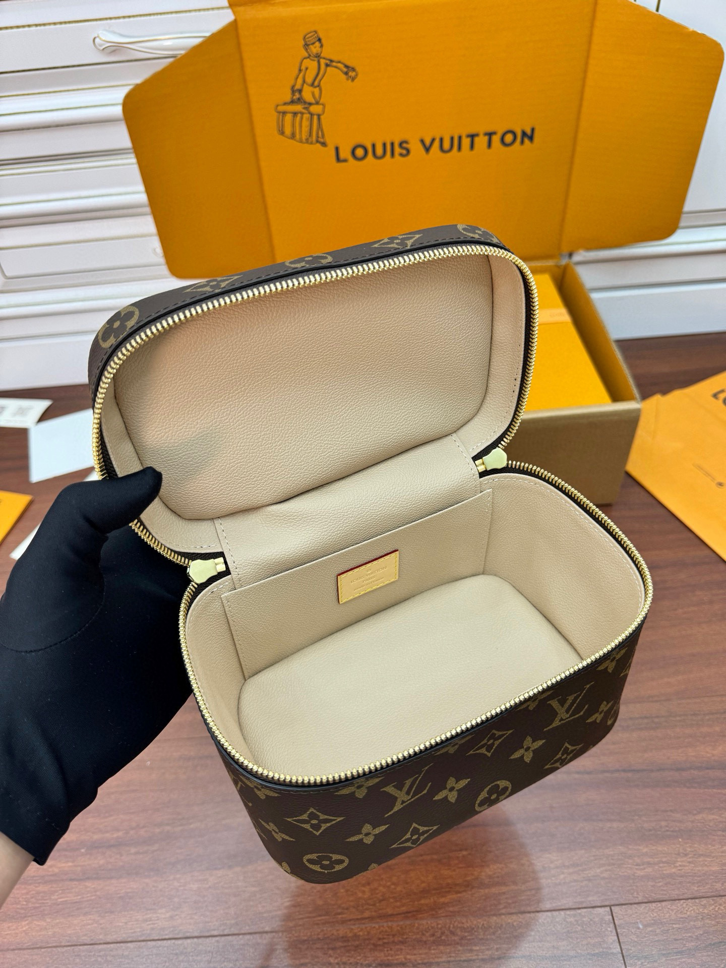 NIGO Louis Vuitton NICE Women's Brown Nice Mini Makeup Bag with LV Logo Metal Zipper Pull, Leather Handbag Makeup Bag Bags #nigo77968