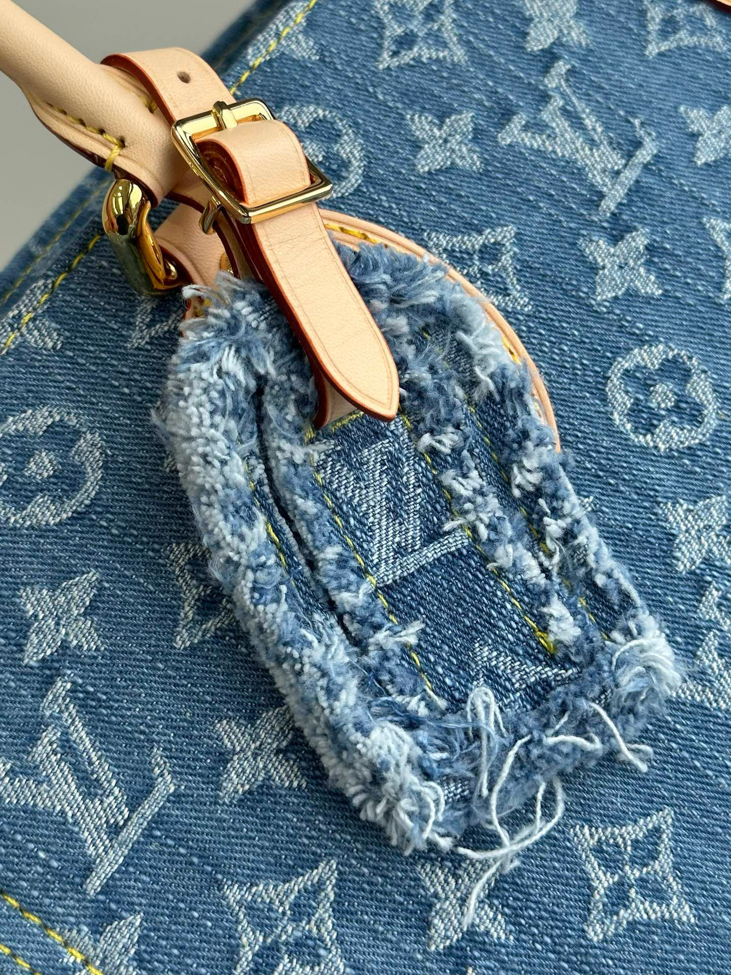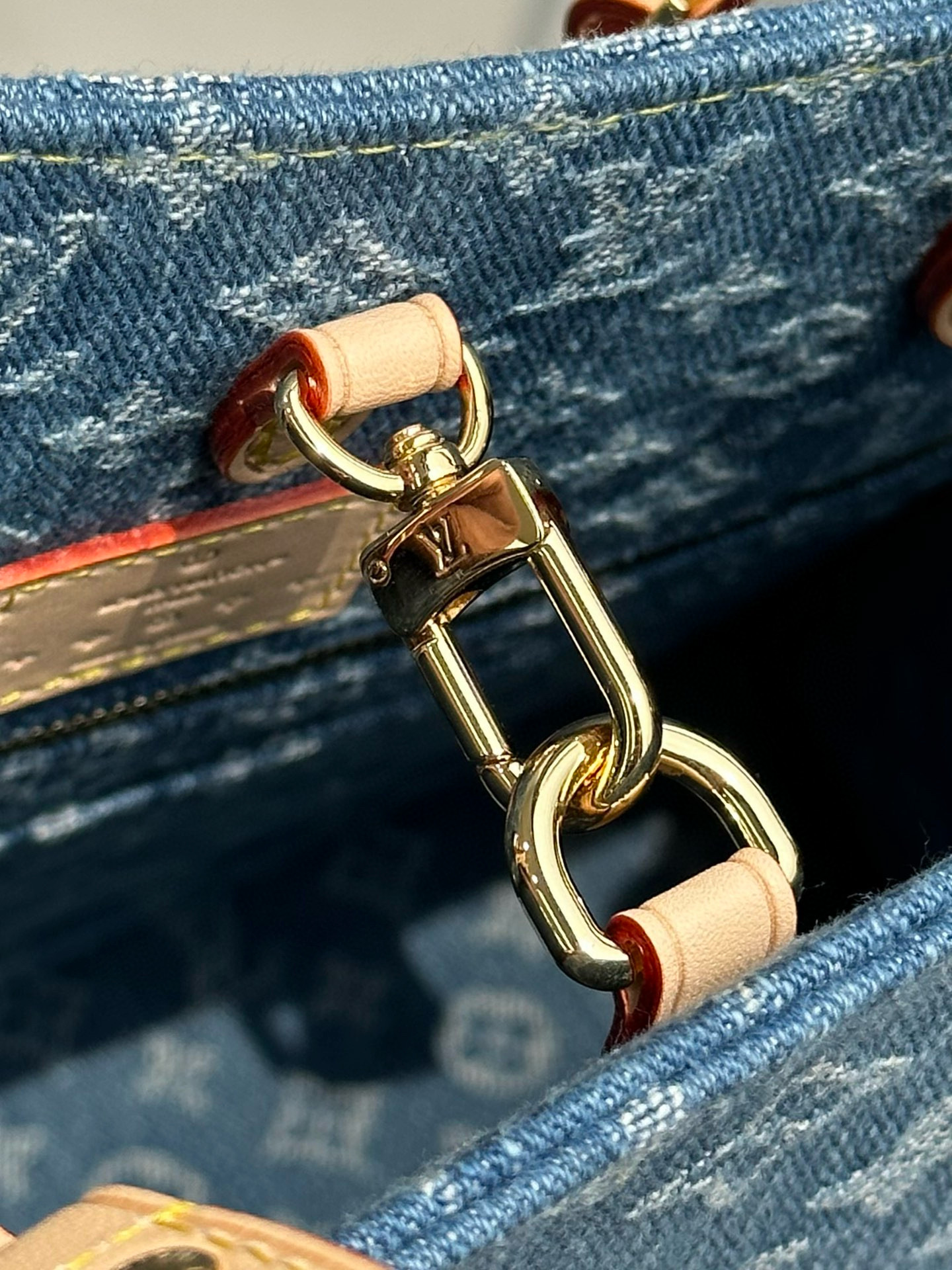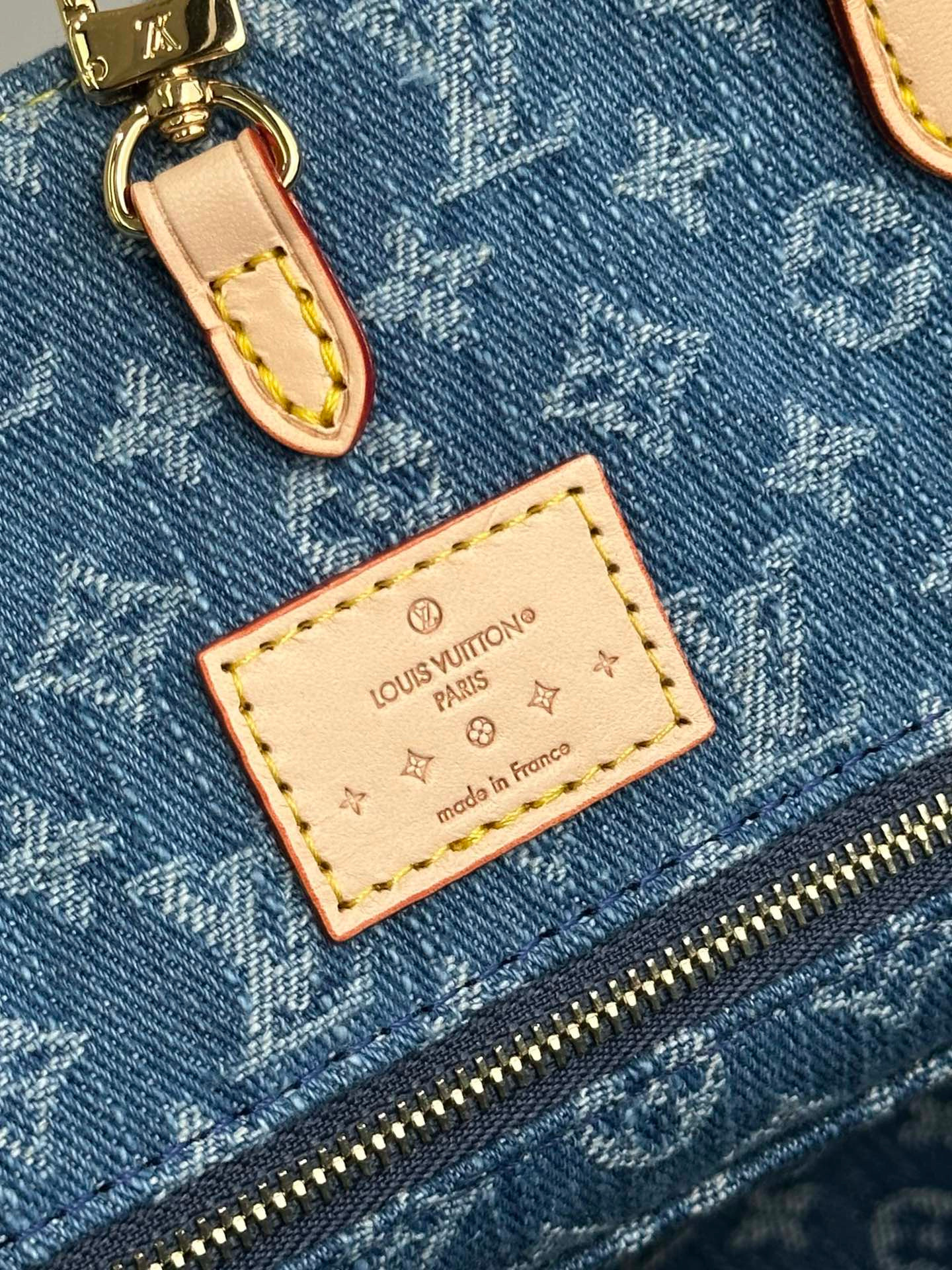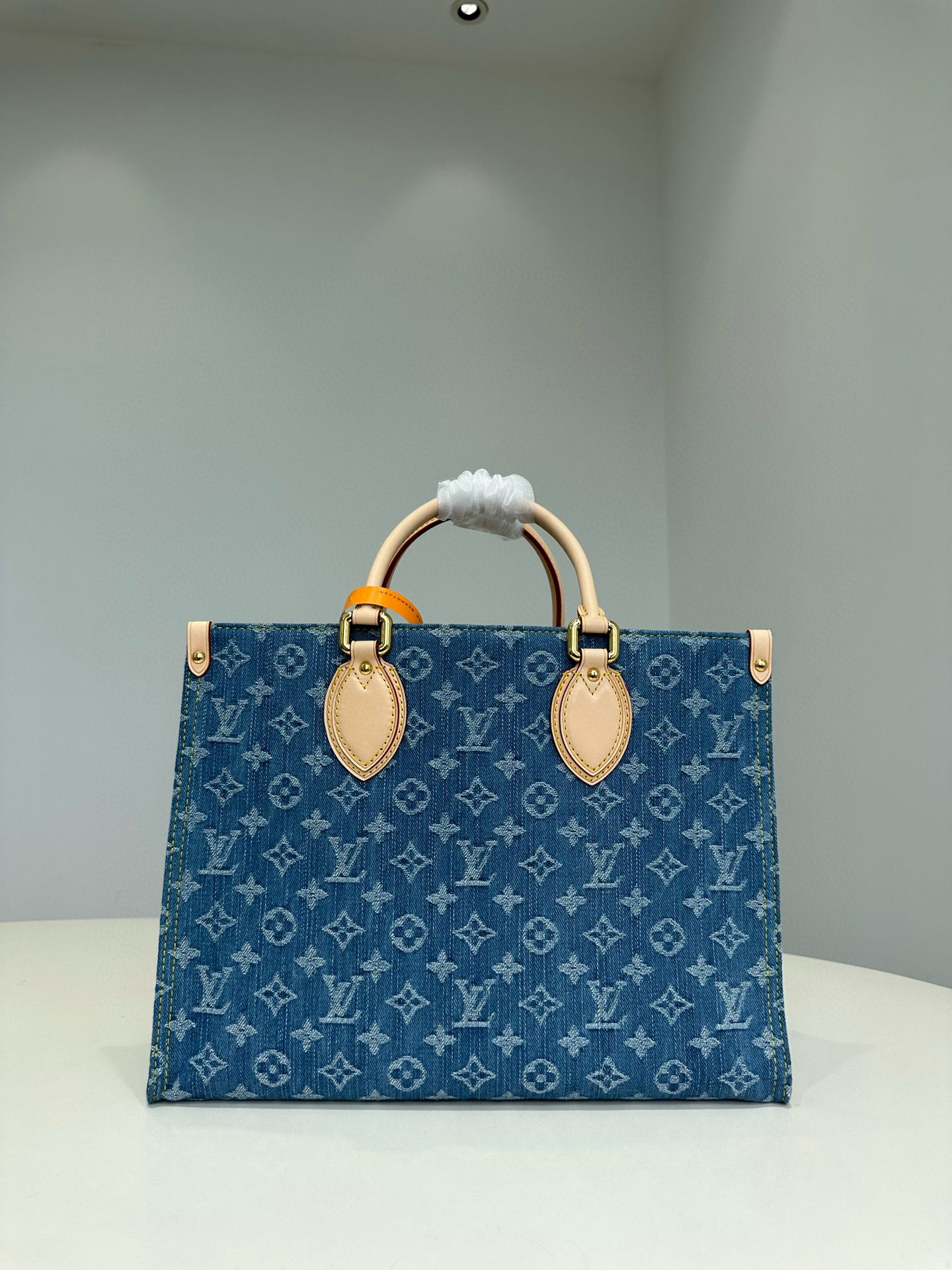 NIGO Louis Vuitton OnTheGo Women's Blue Denim Patchwork Cowhide Alphabet Print Shopping Bag Tote Bags #nigo99266