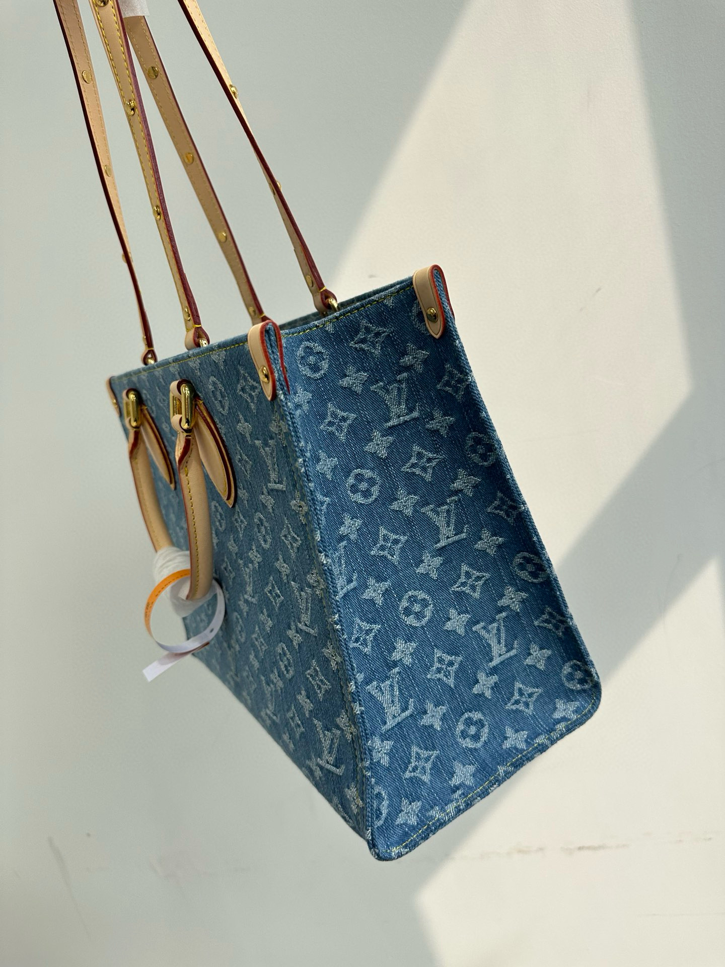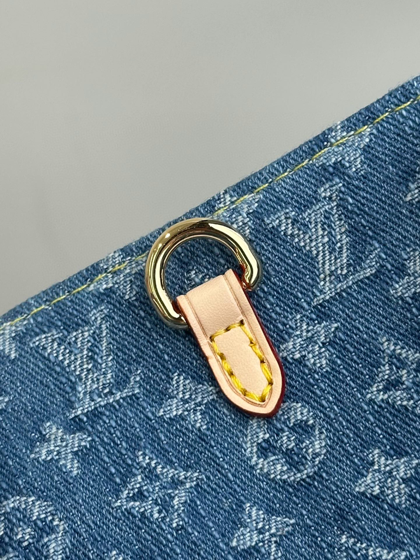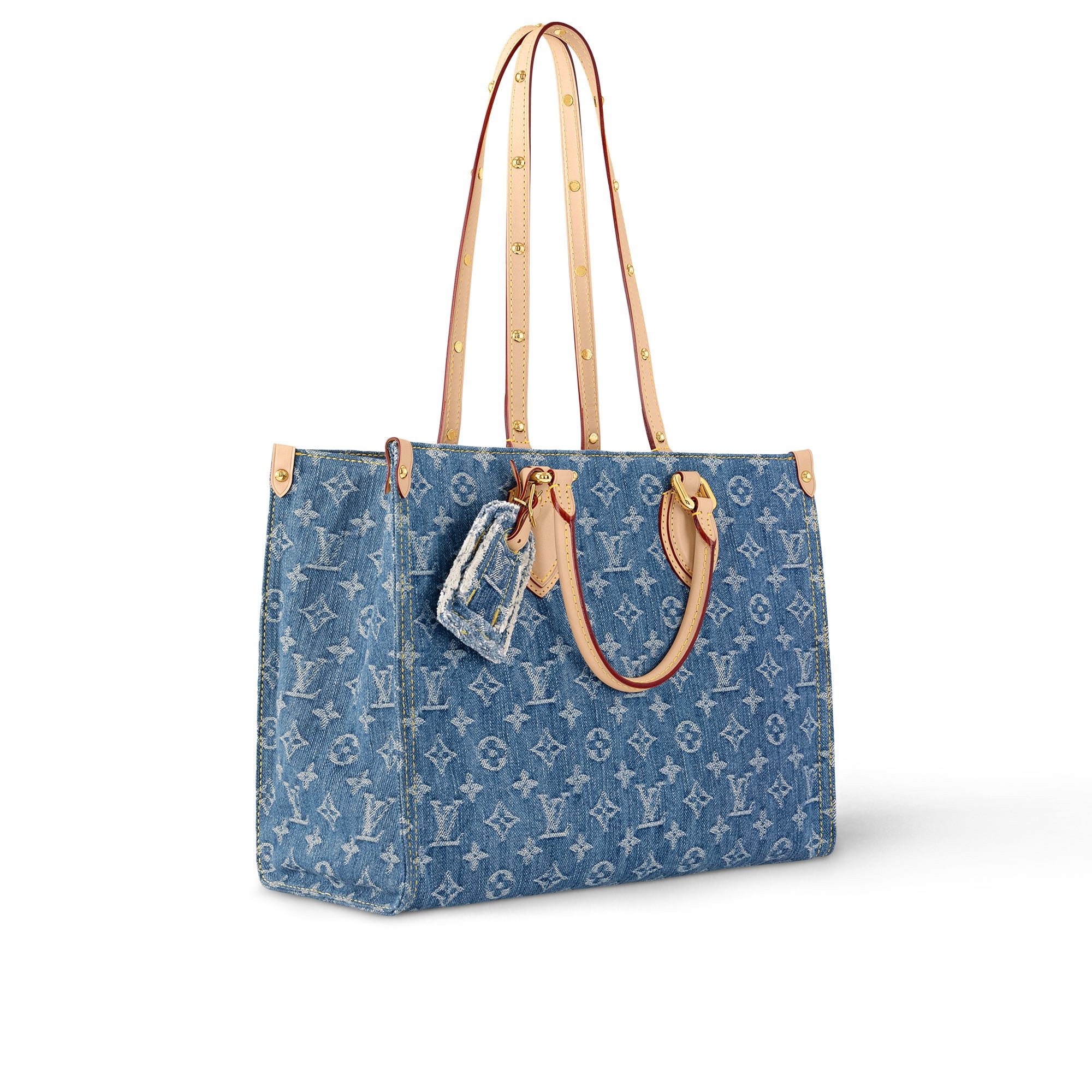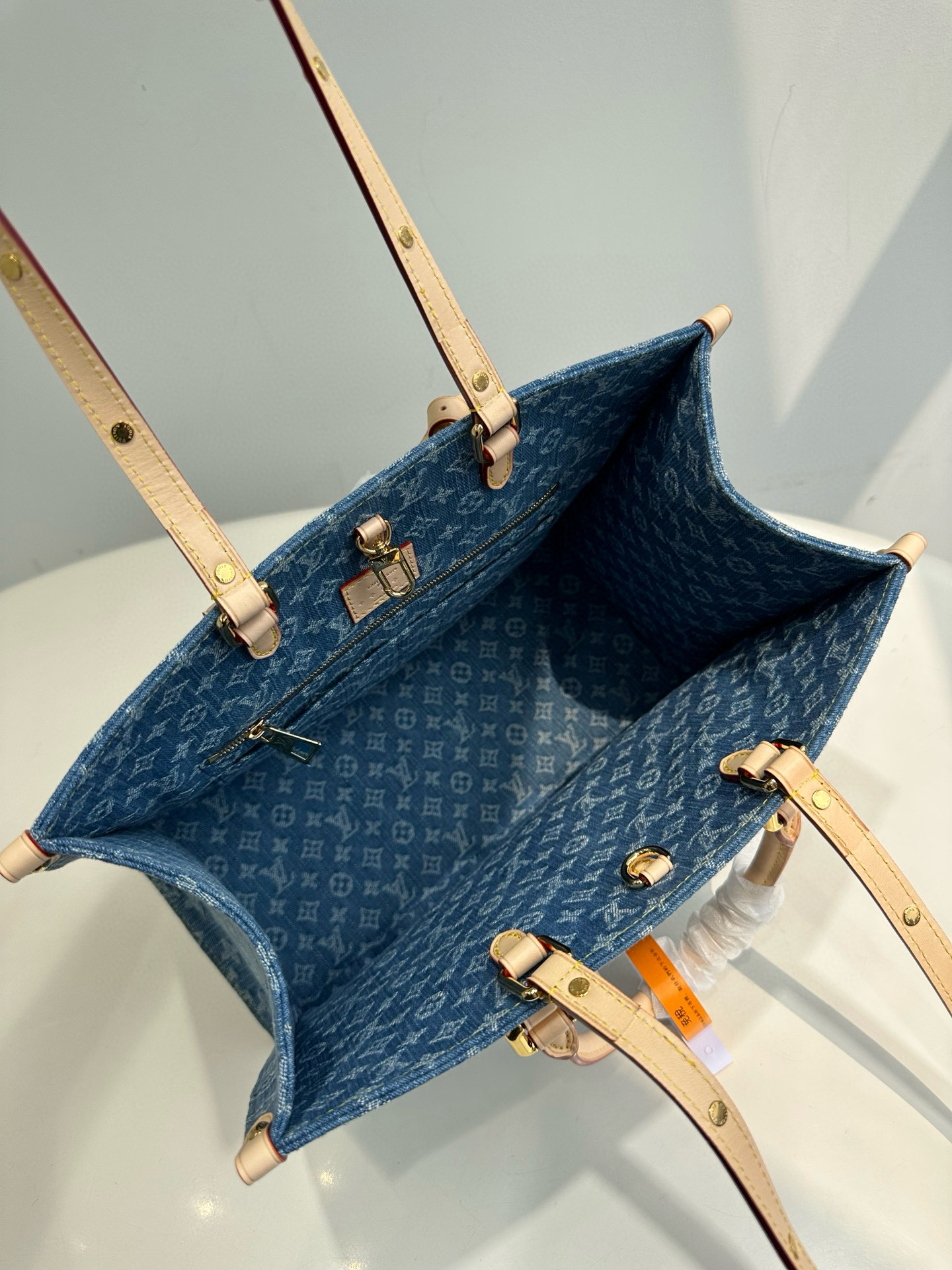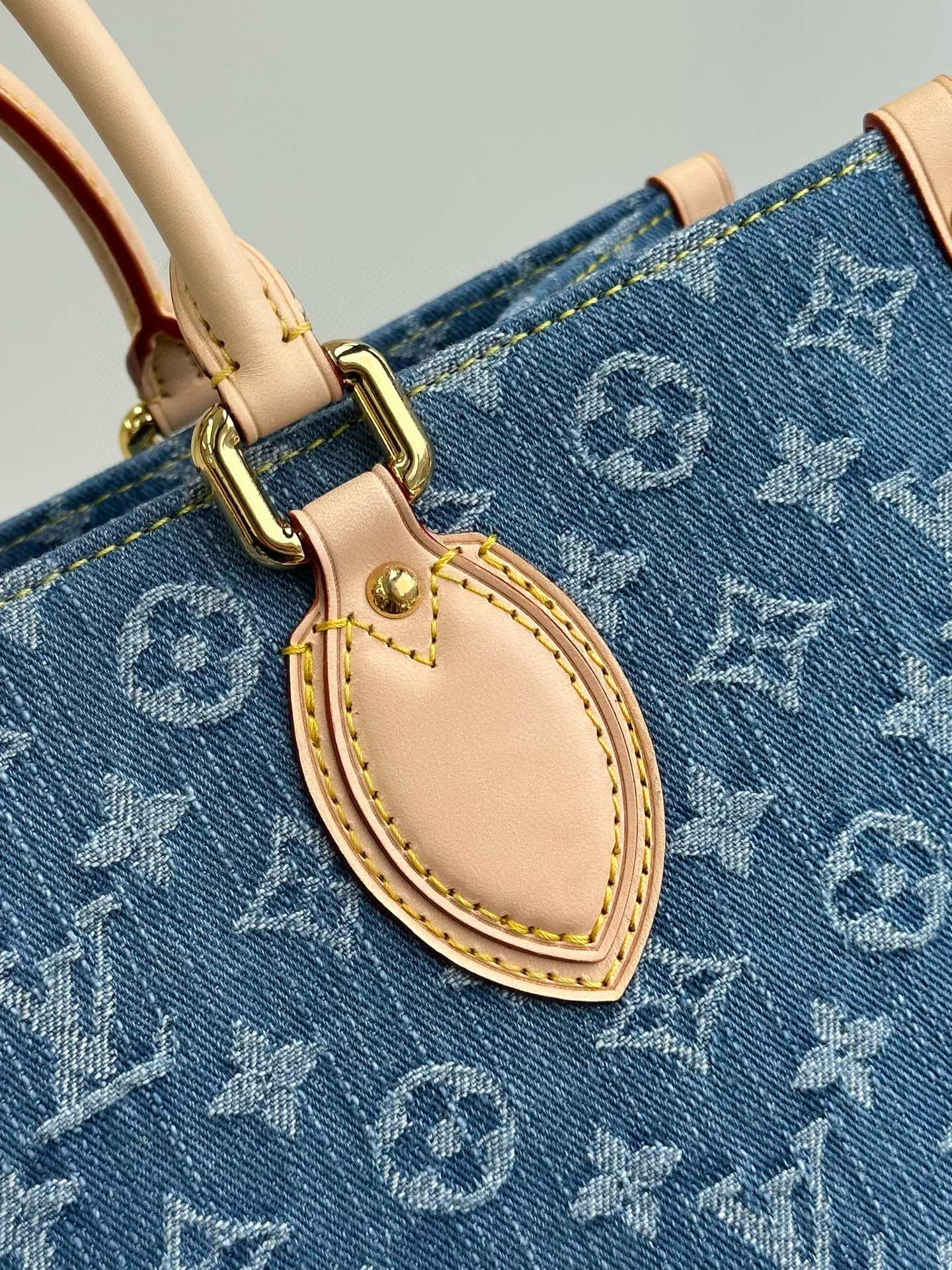 NIGO Louis Vuitton OnTheGo Women's Blue Denim Patchwork Cowhide Alphabet Print Shopping Bag Tote Bags #nigo99266