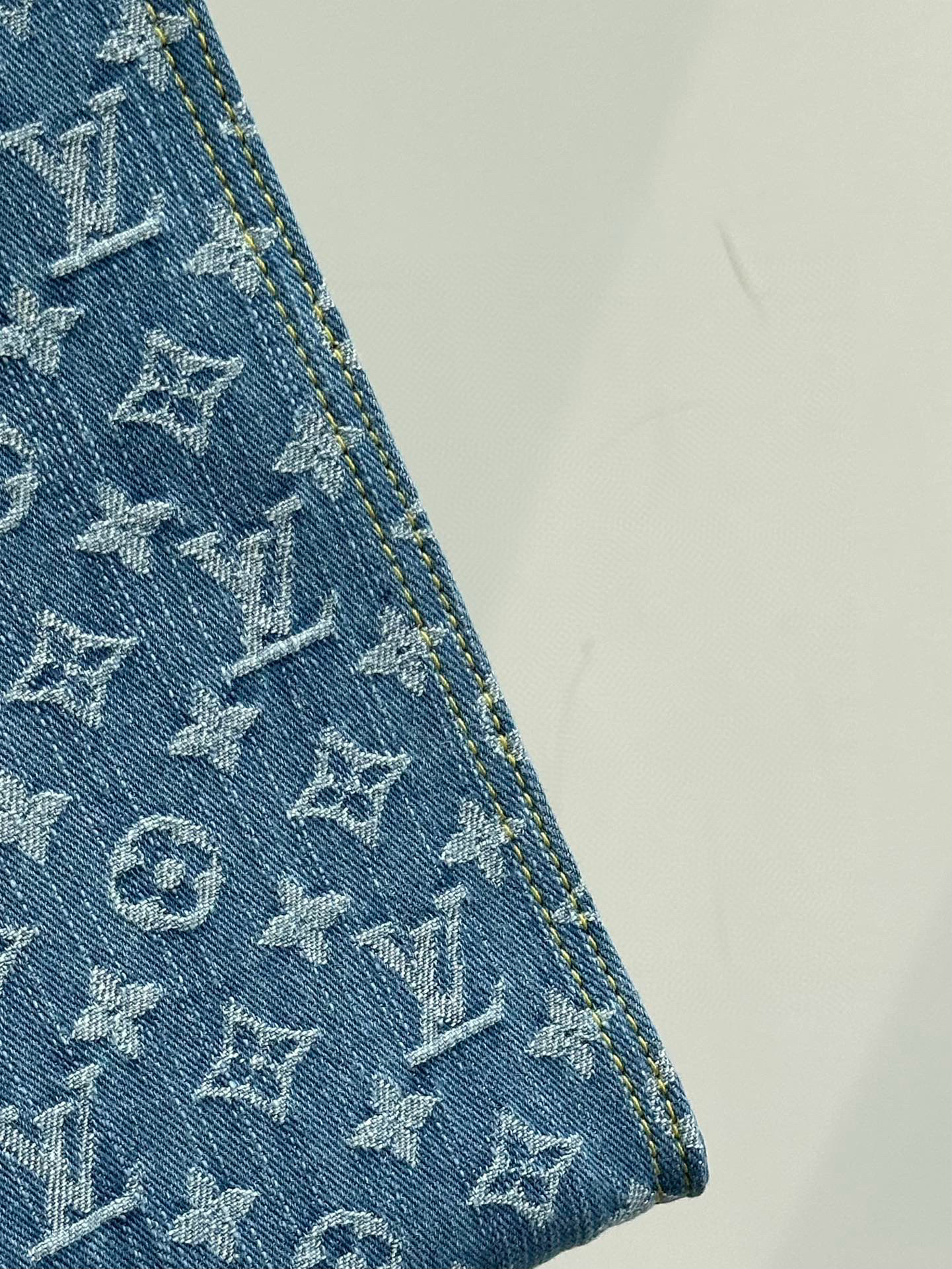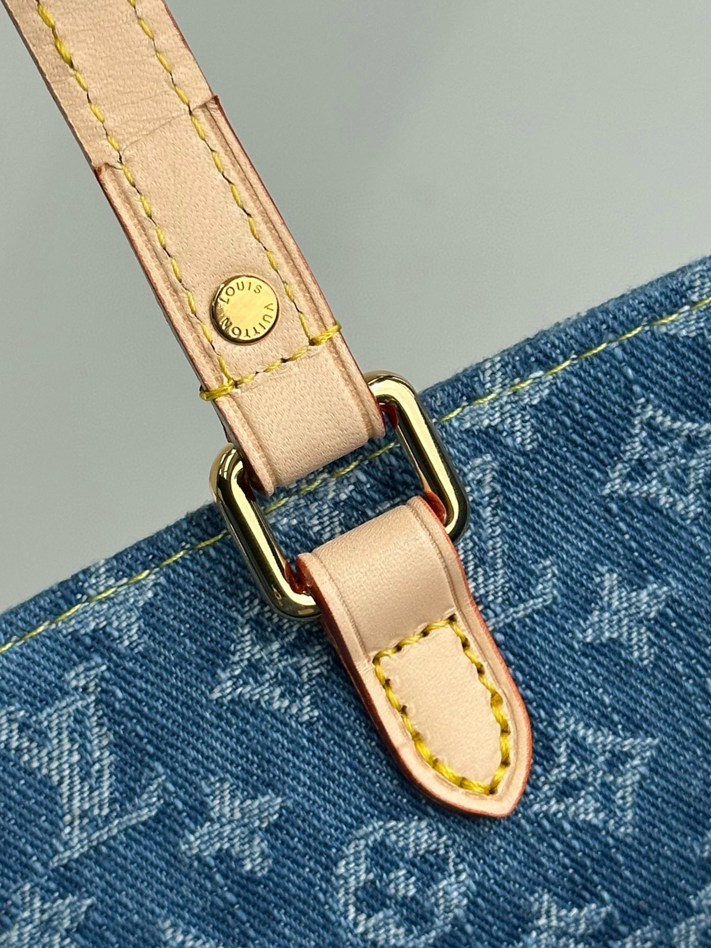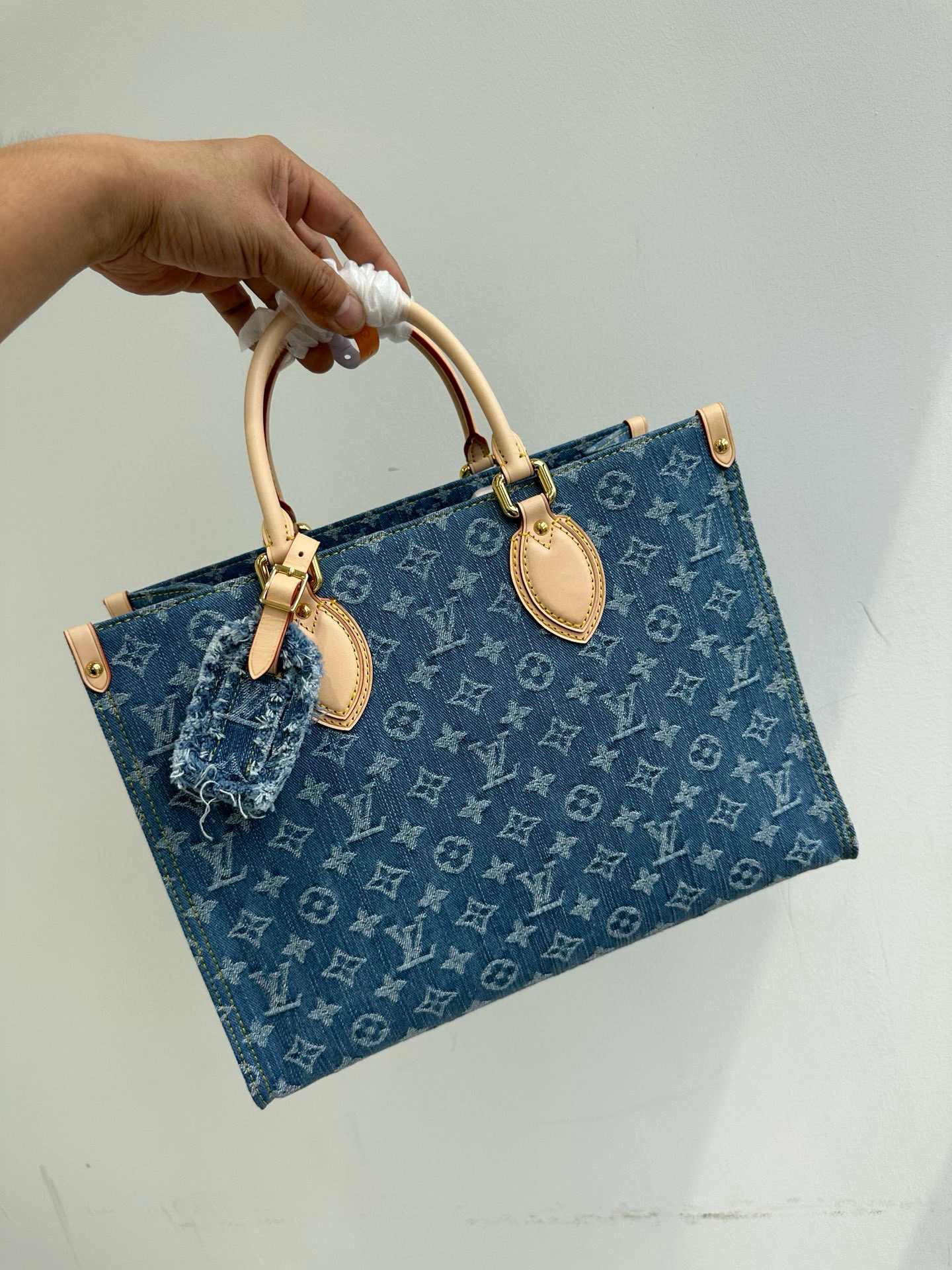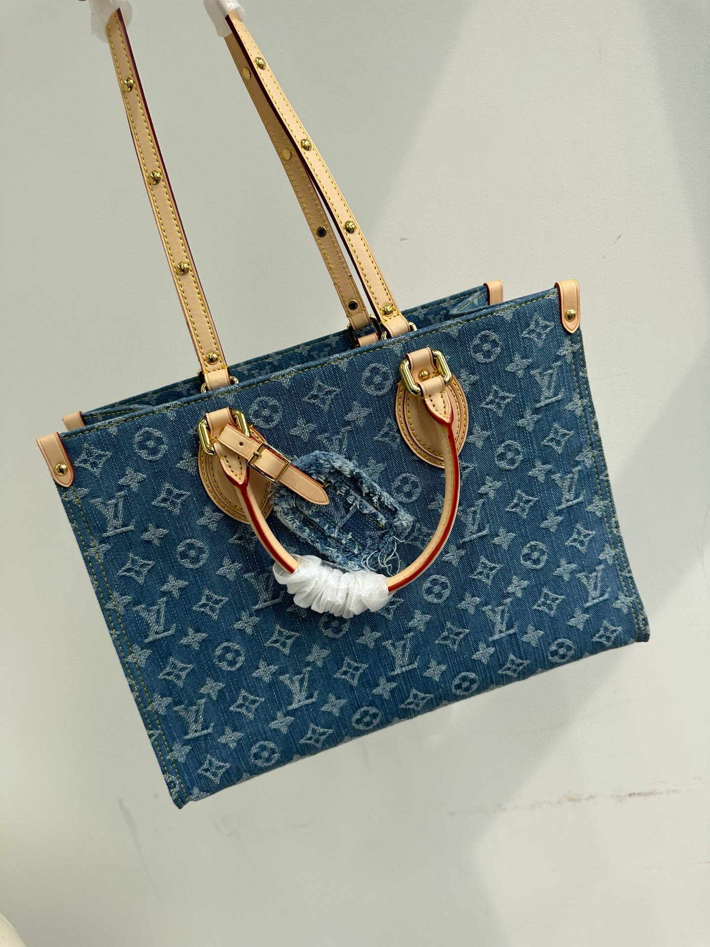 NIGO Louis Vuitton OnTheGo Women's Blue Denim Patchwork Cowhide Alphabet Print Shopping Bag Tote Bags #nigo99266