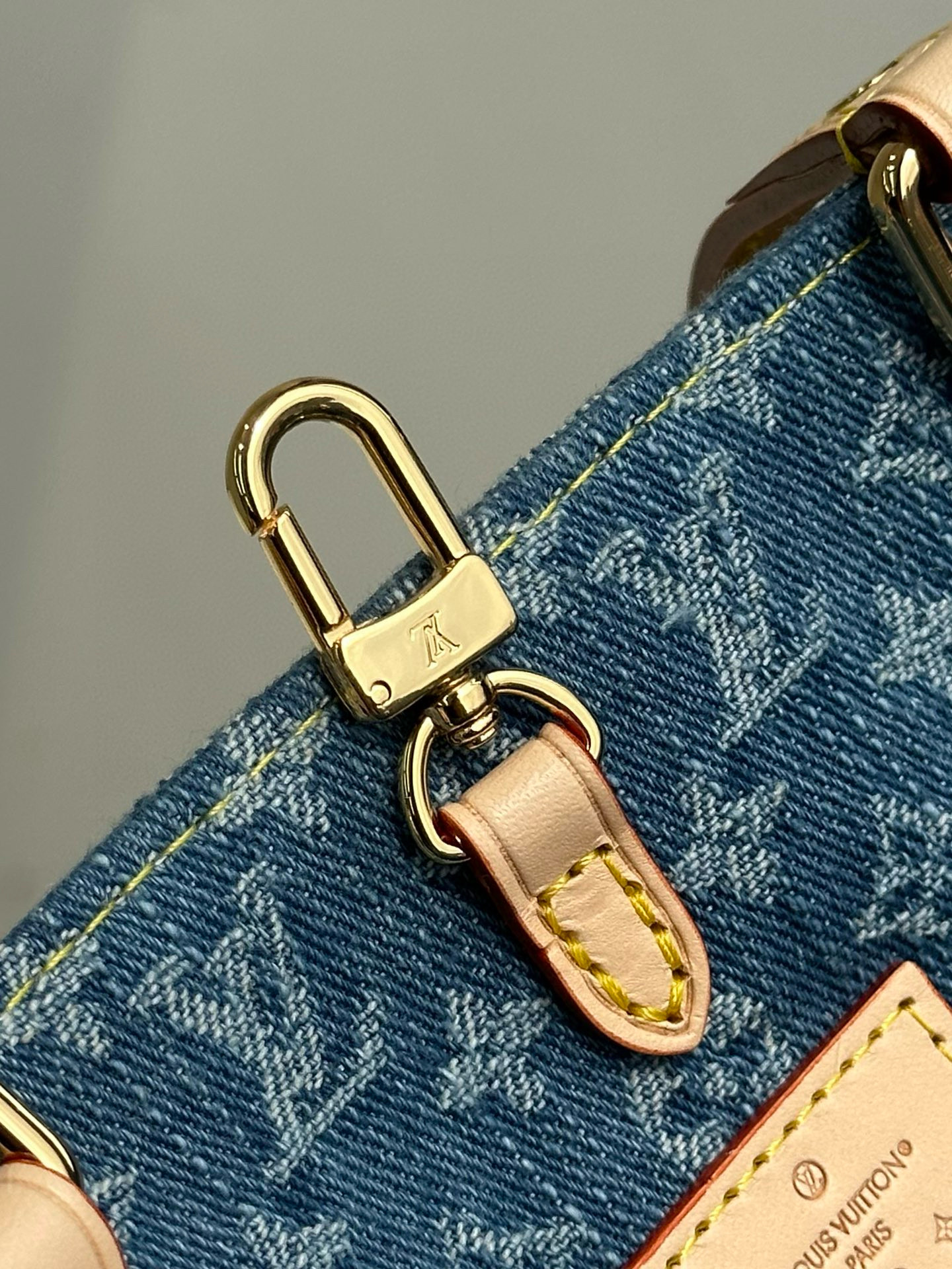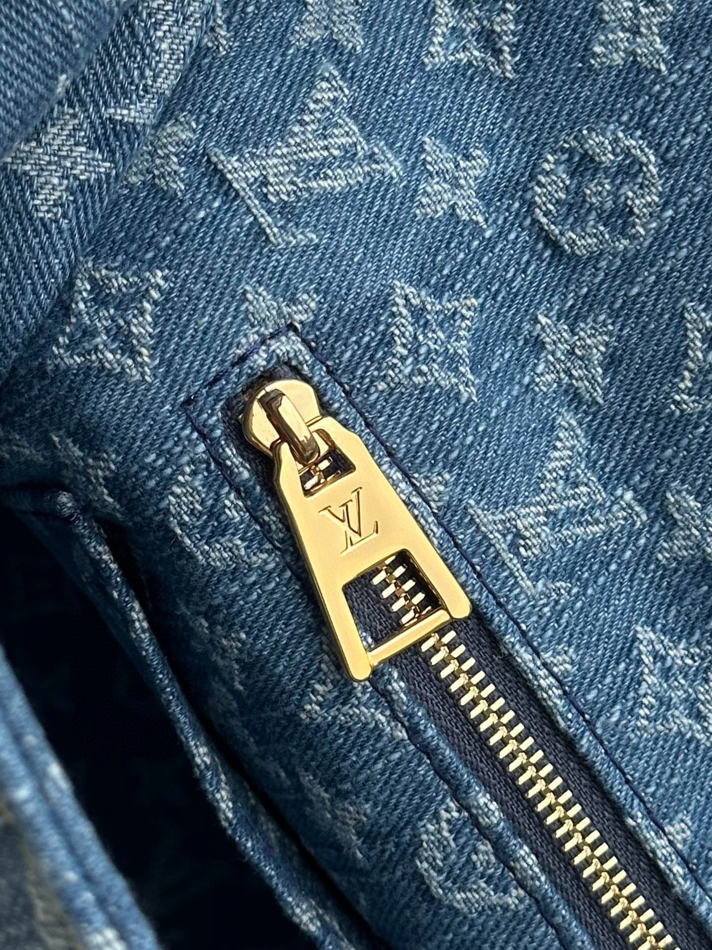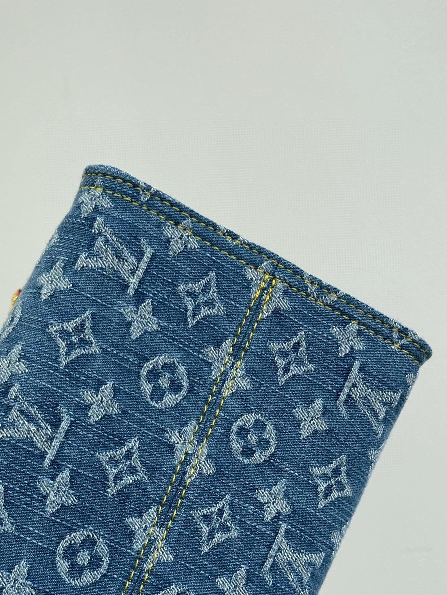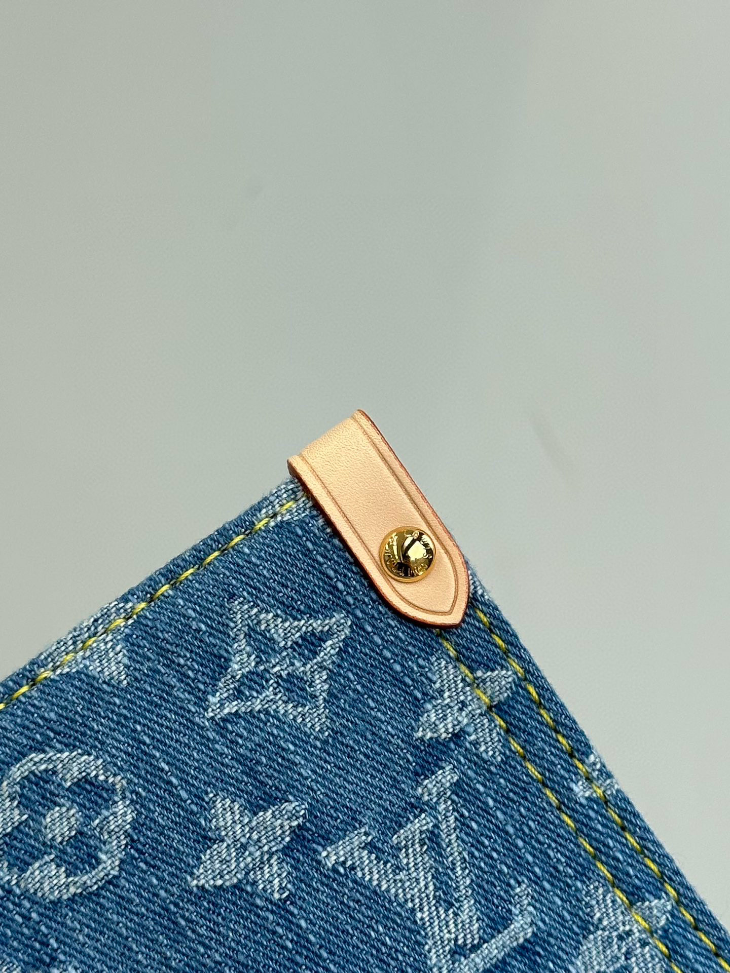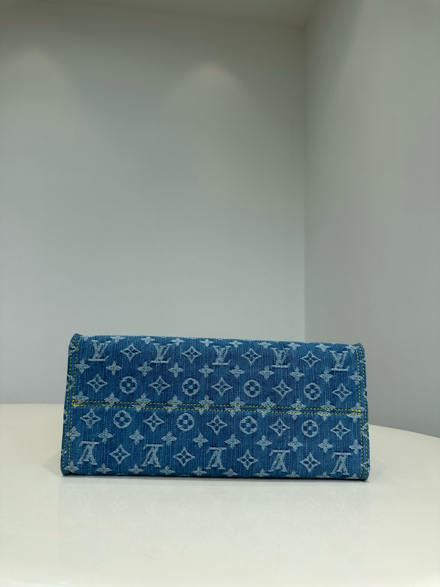 NIGO Louis Vuitton OnTheGo Women's Blue Denim Patchwork Cowhide Alphabet Print Shopping Bag Tote Bags #nigo99266