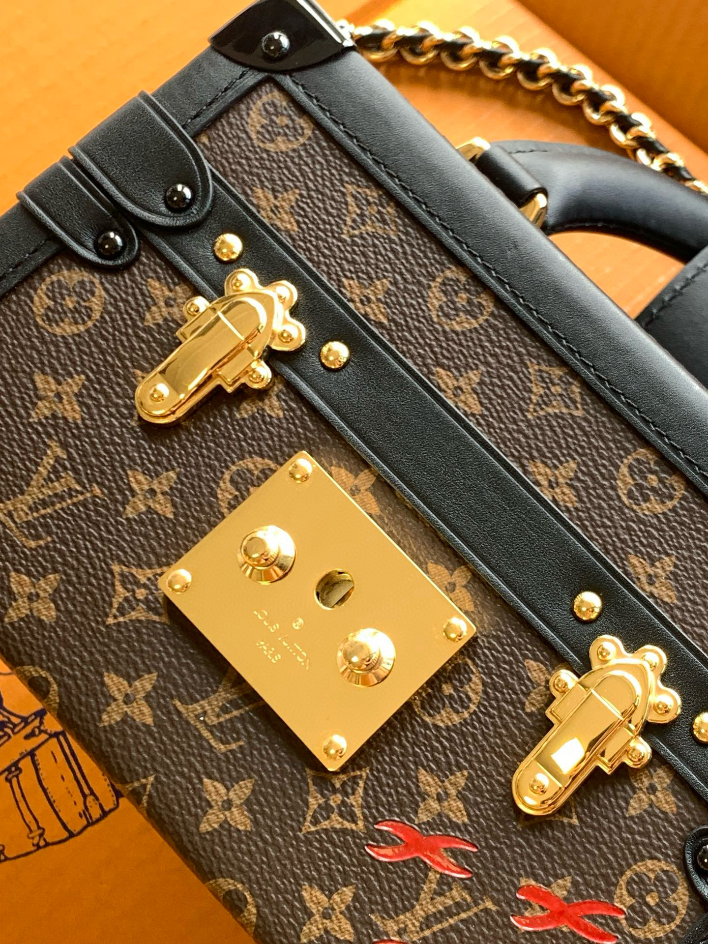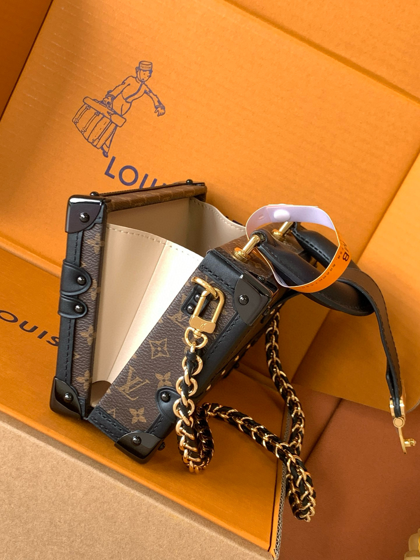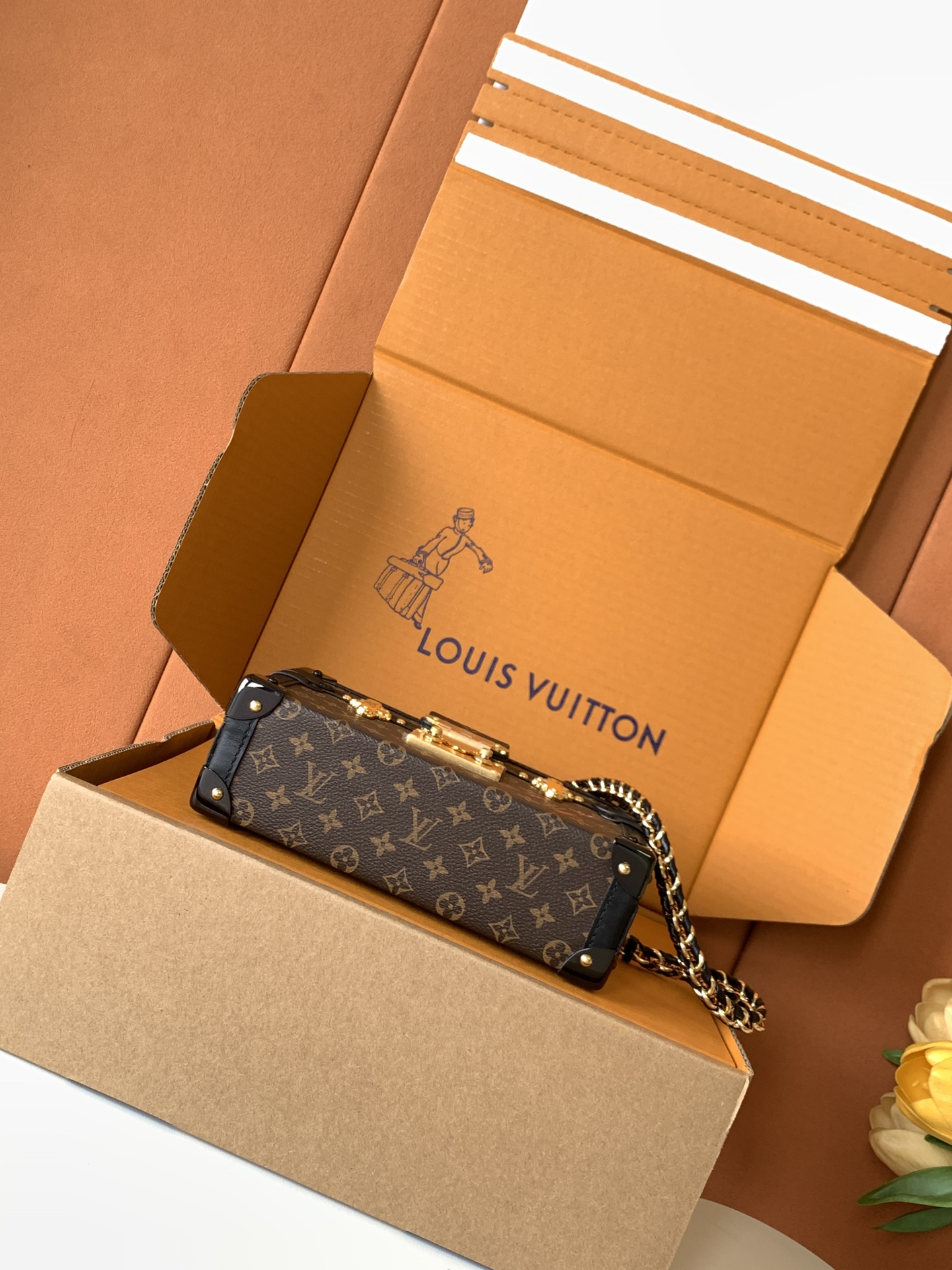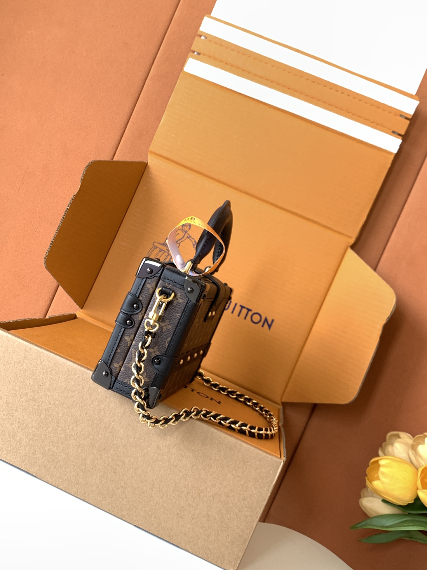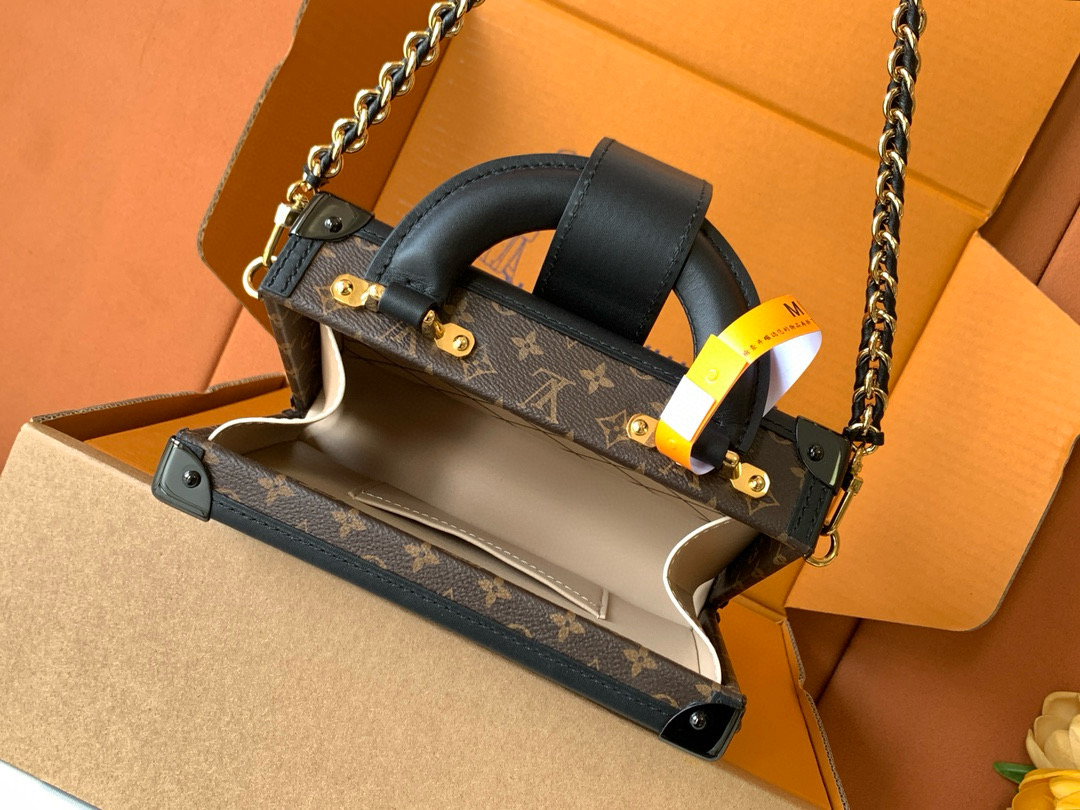 NIGO Louis Vuitton PETITE MALLE Women's Brown Letter Print Removable Adjustable Simple Magnetic Clasp Canvas and Leather Trim Box Bag Handbag Shoulder Bags #nigo77526