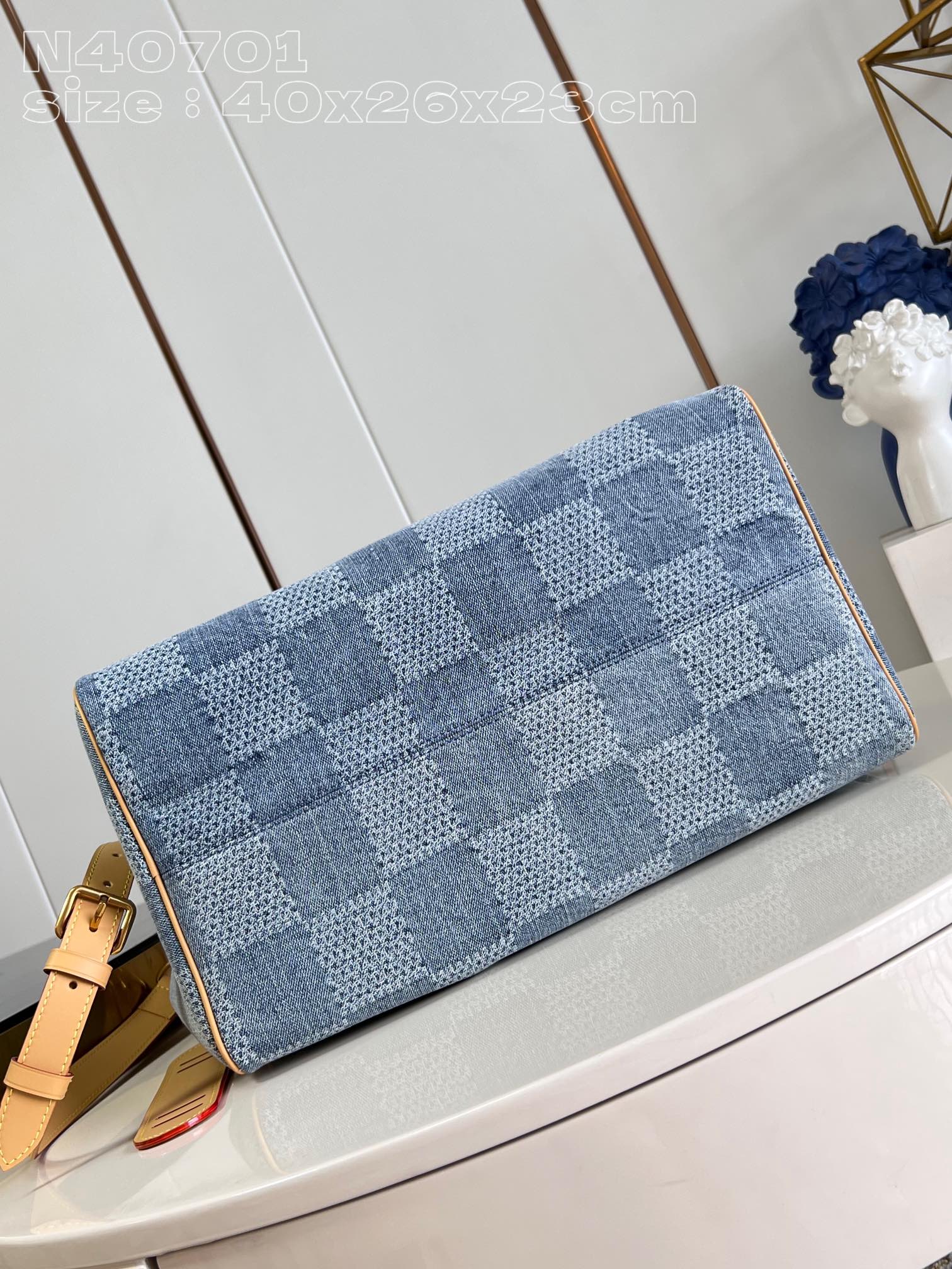 NIGO Louis Vuitton Speedy 40 Bandoulière Men's and Women's Checkerboard Printed Denim Patchwork Leather Single Shoulder Crossbody Tote Bag Travel Bags #nigo72168