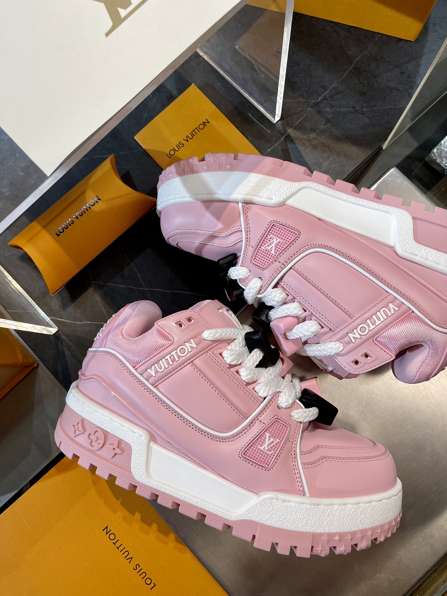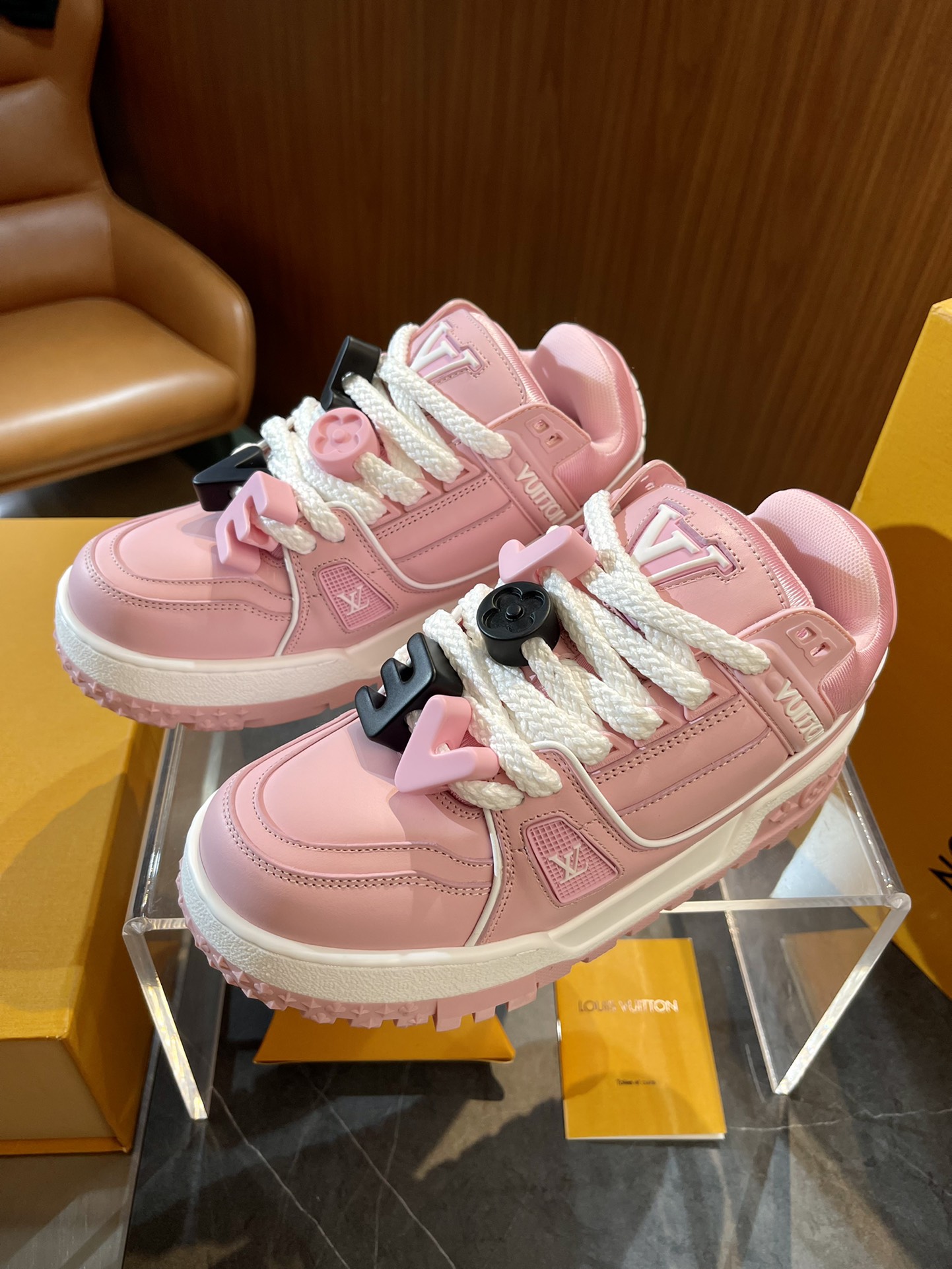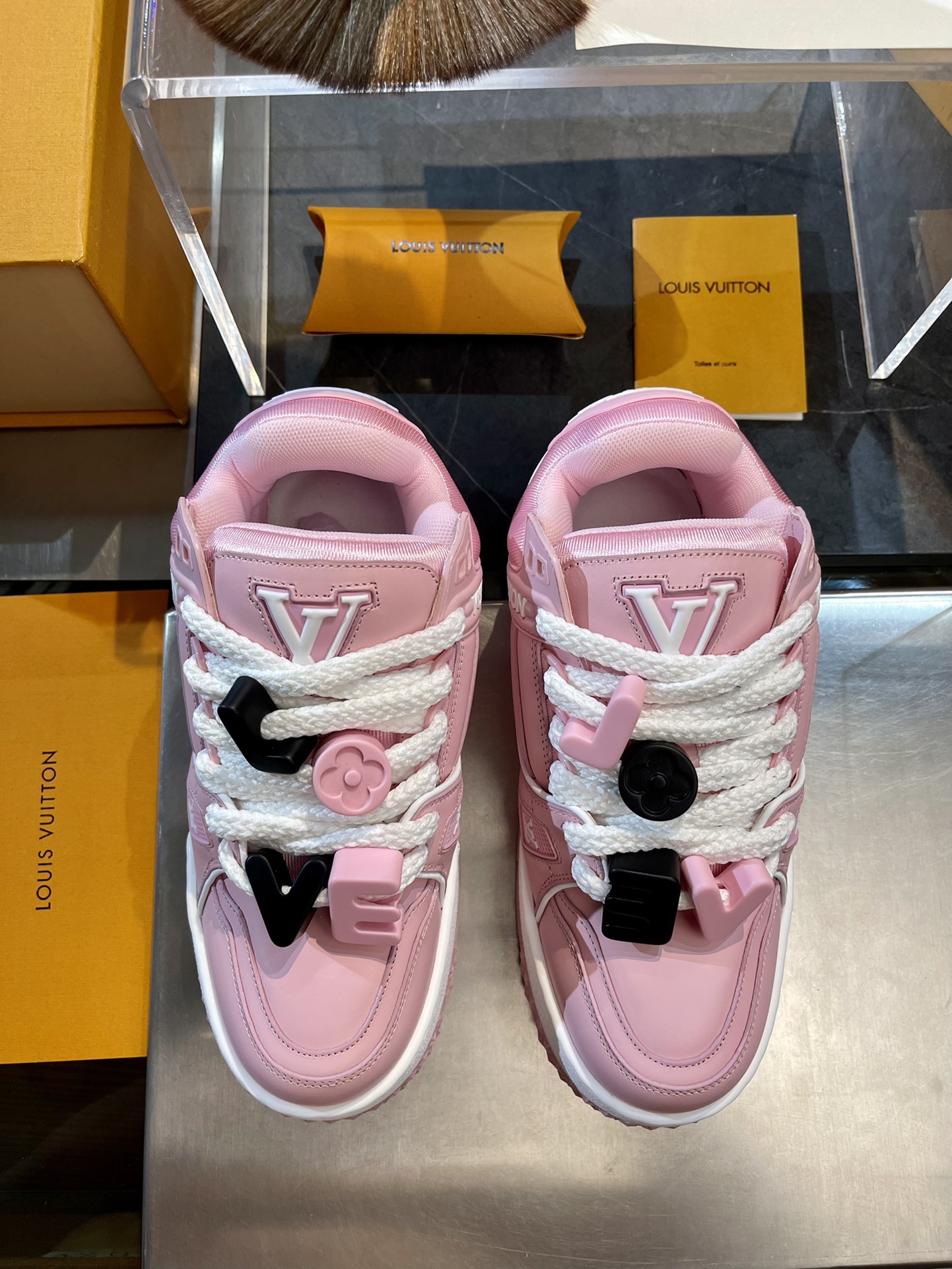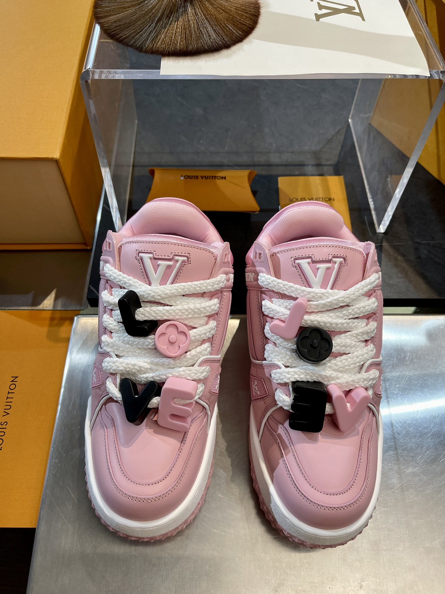 NIGO Louis Vuitton Trainer Maxi Women's Clashing Colours Round Toe Leather Lace Up Low Top Board Shoes #nigo72655