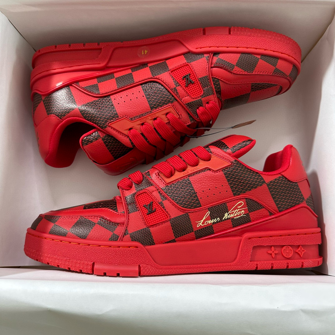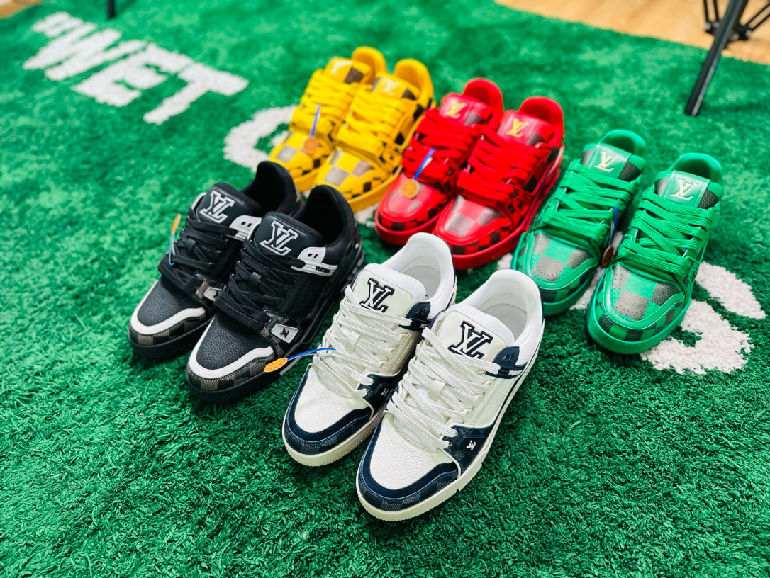 NIGO Louis Vuitton Trainer Men's and Women's Colour Block Plaid Lace Up Leather Low Top Board Shoes #nigo99254
