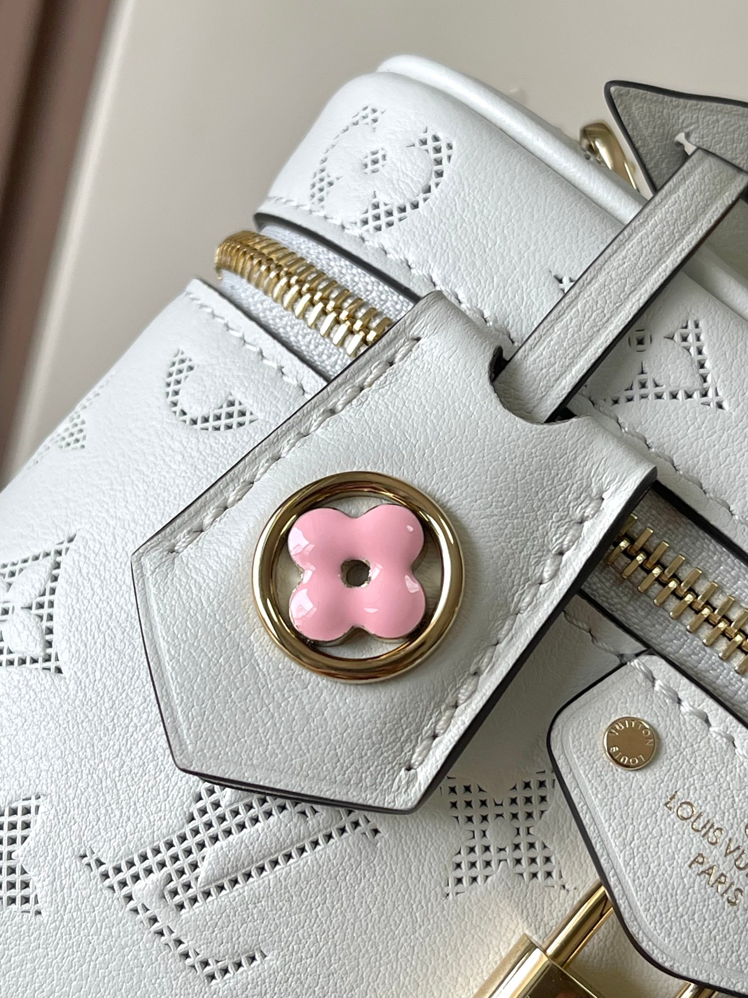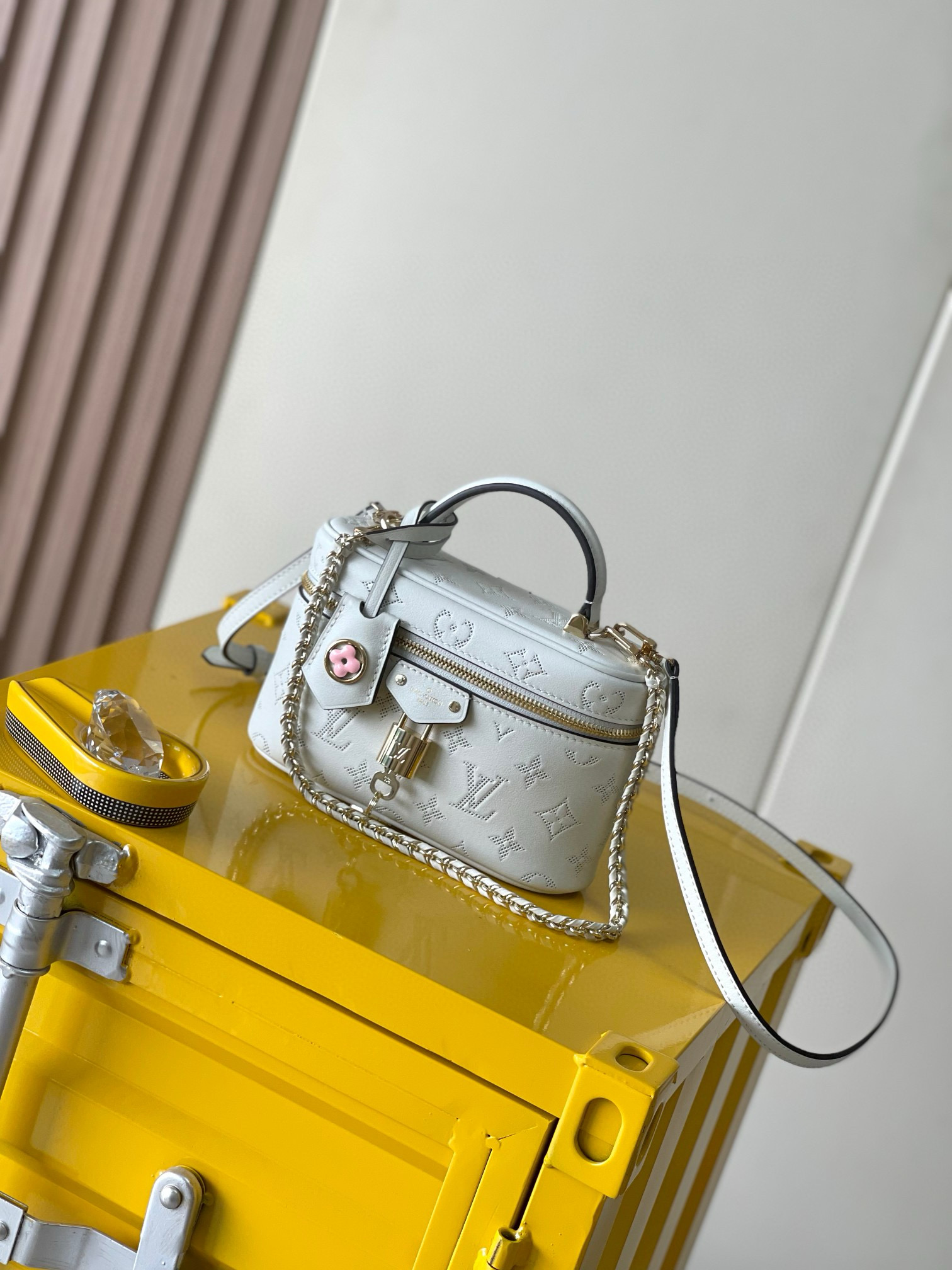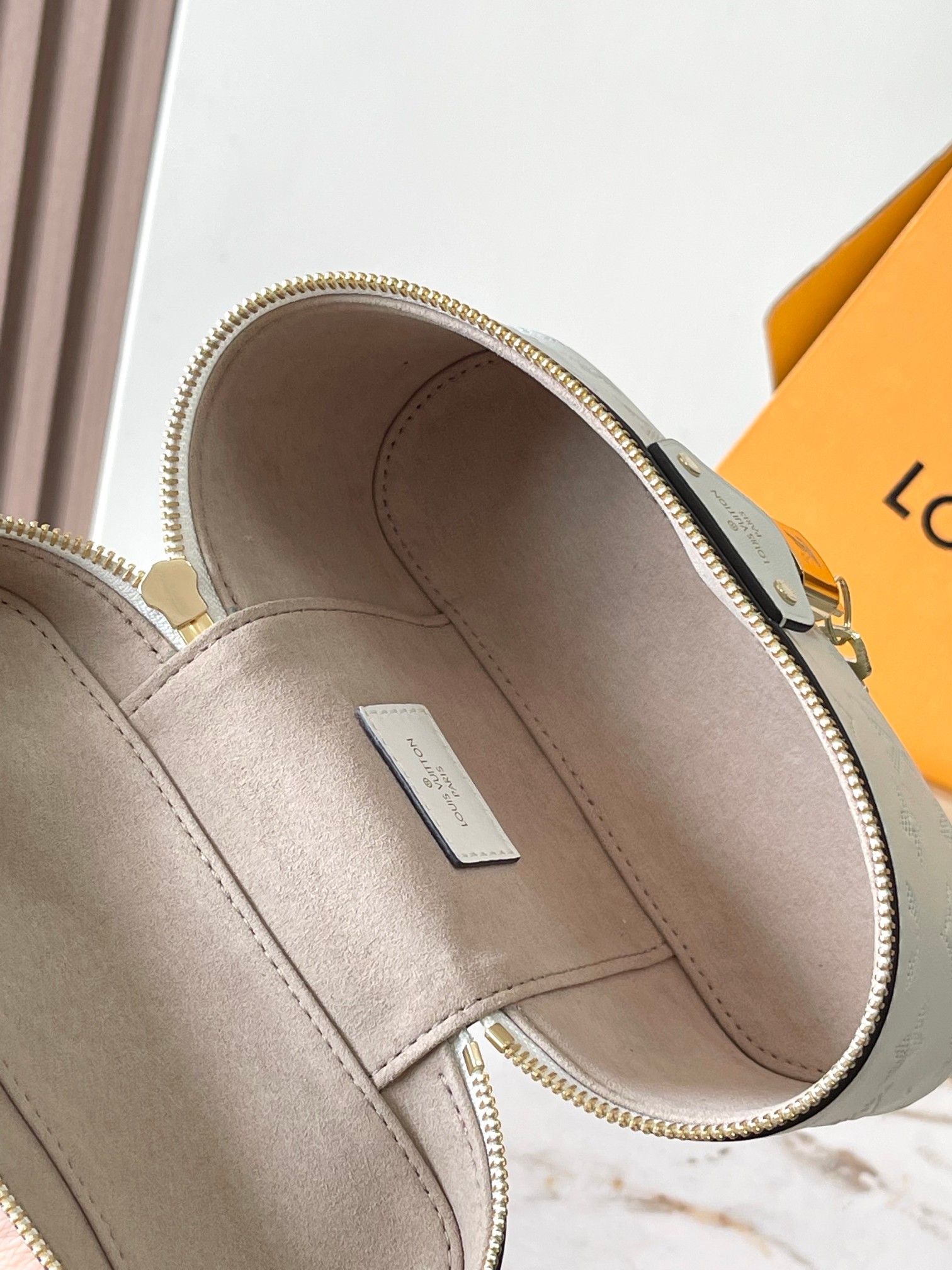 NIGO Louis Vuitton Vanity Pouch Flower Ring Women's Gray Monogrammed Pendant Zipper Closure Calfskin Gloves Cosmetic Bag Bags #nigo76843