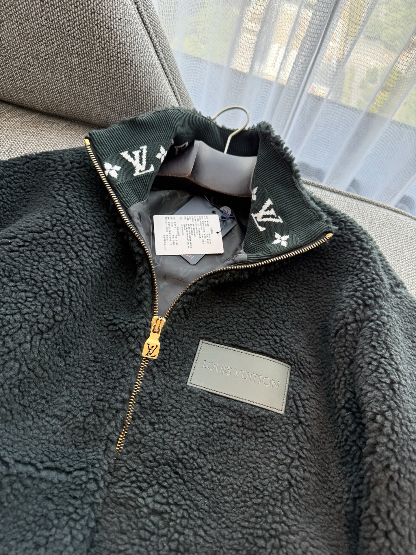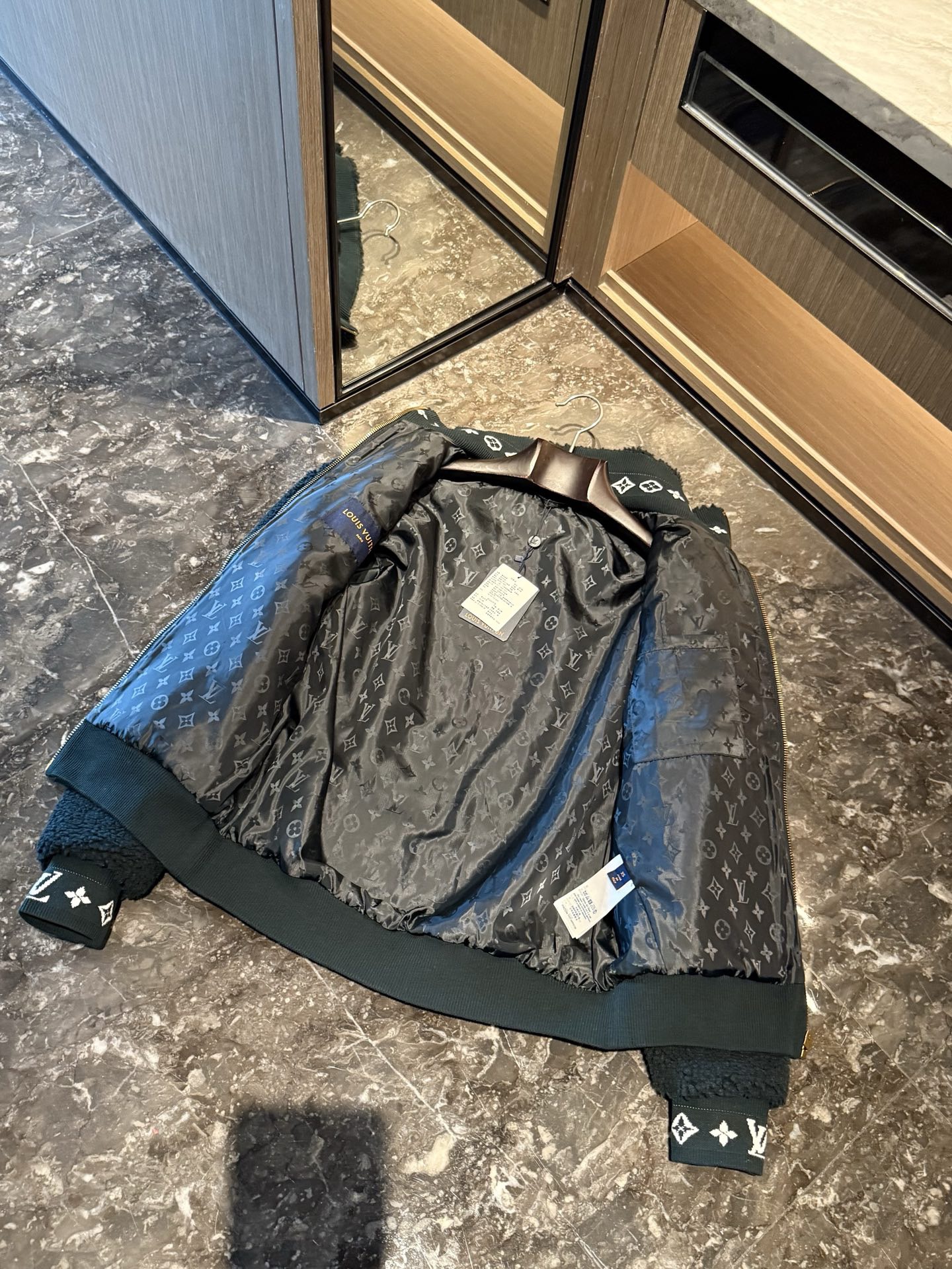 NIGO Louis Vuitton Women's and Men's Dark Green Suede Leather Label Teddy Velvet Suede Belted Jacket With Leather Patches #nigo332529