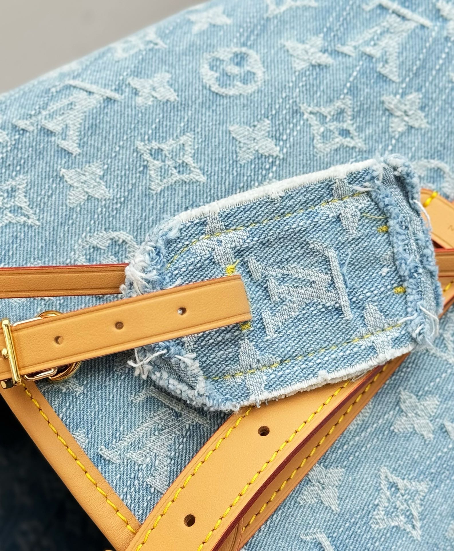 NIGO Louis Vuitton Women's Blue Monogram Printed Adjustable Strap Canvas Leather Tote Shoulder Bag Bags #nigo72396