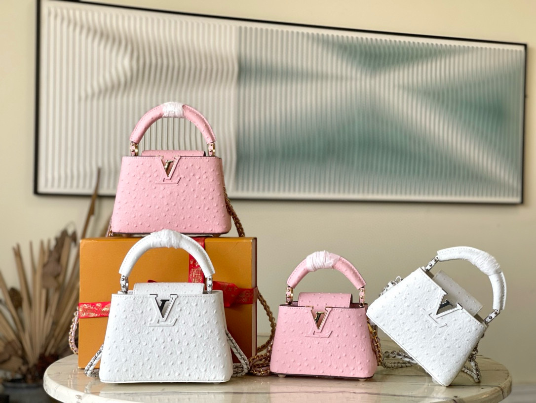 NIGO Louis Vuitton Women's Capulines Floral Embellished Ostrich/Goat Leather Shoulder Crossbody Tote Bag Bags #nigo97869