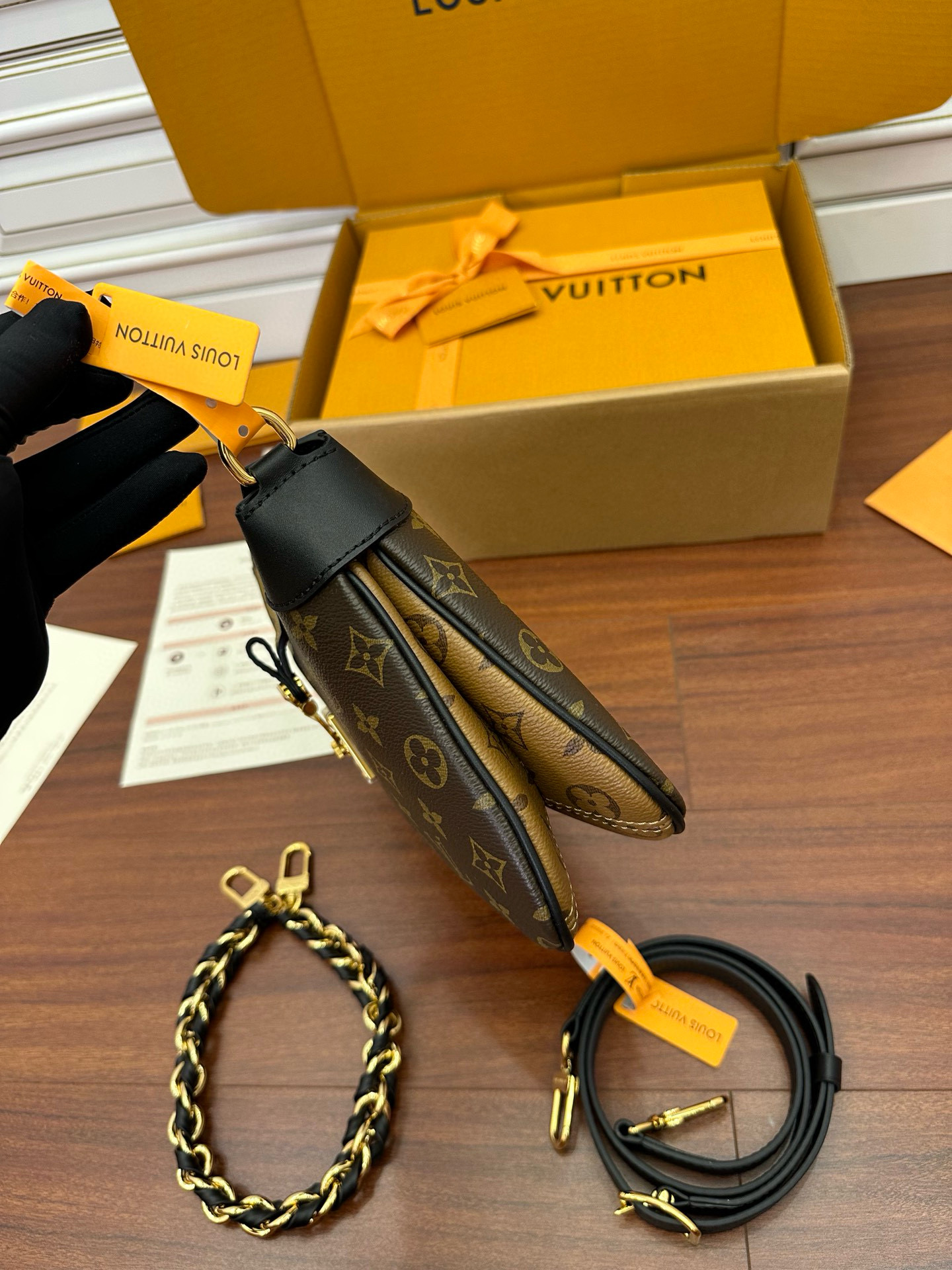 NIGO Louis Vuitton Women's Detachable Adjustable Shoulder Strap Old Flower Full Print Coating Canvas Splicing Cowhide Chain Shoulder Handbag Bag Bags #nigo98373