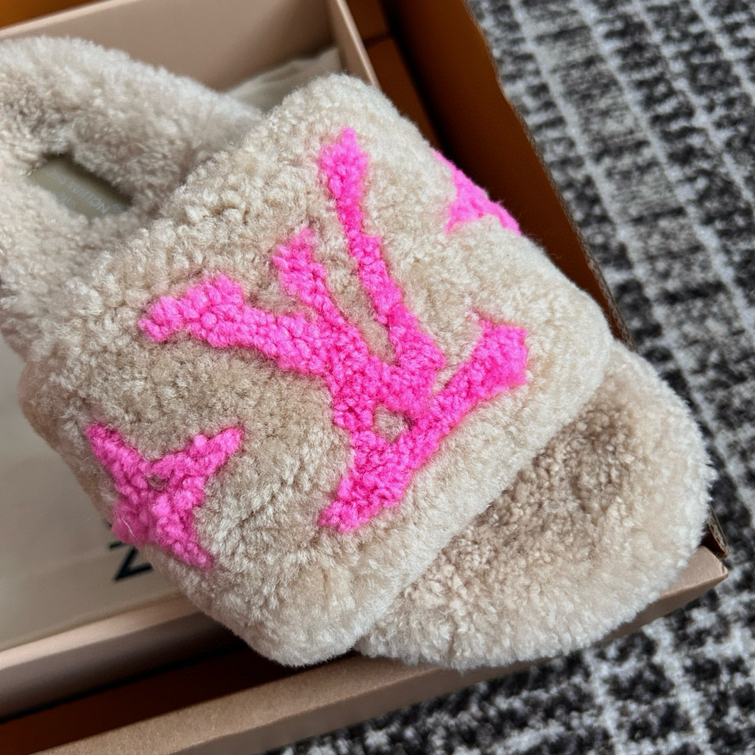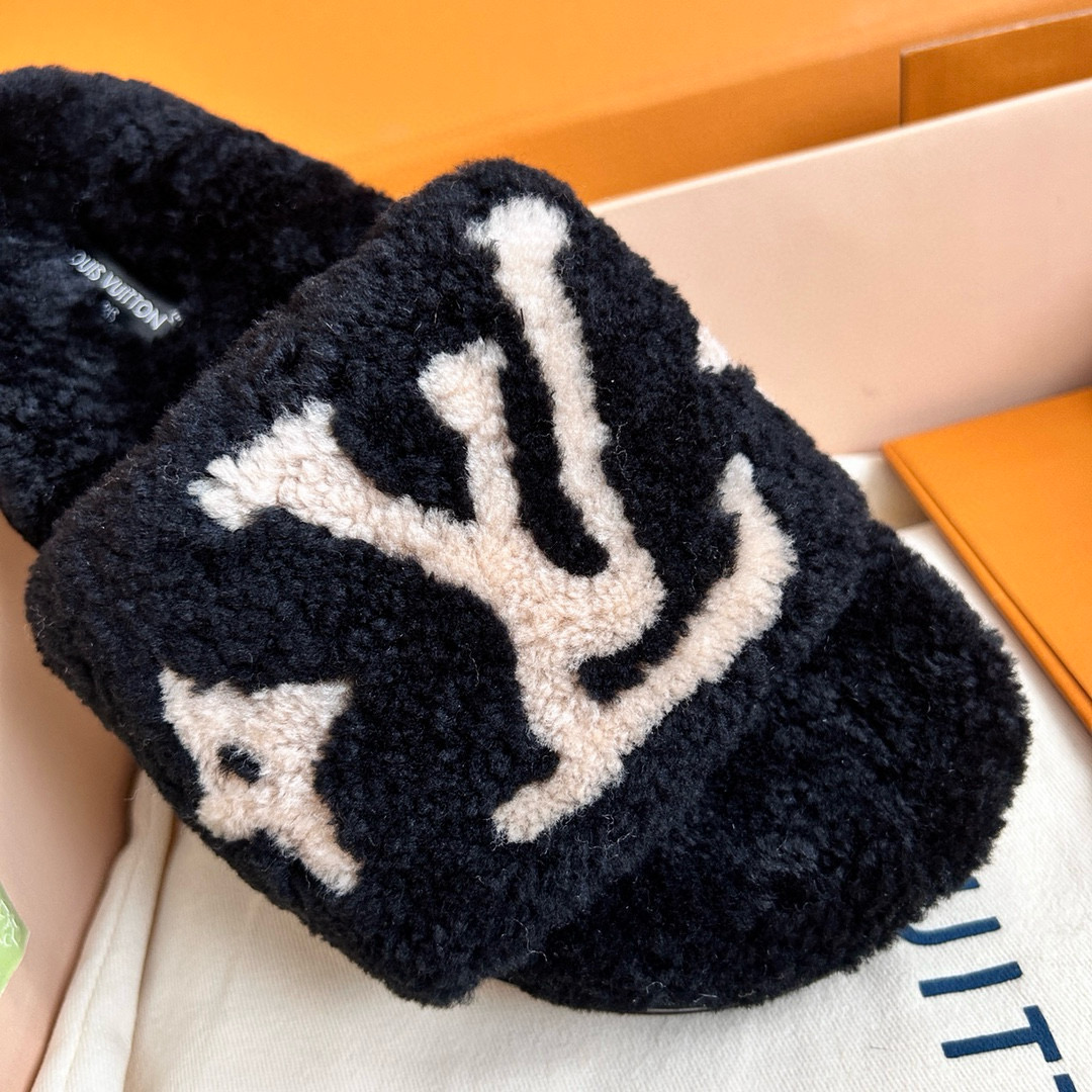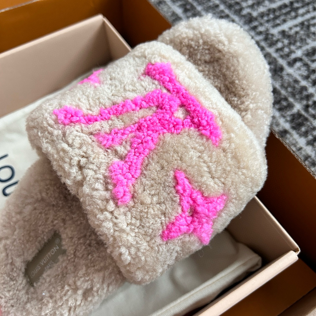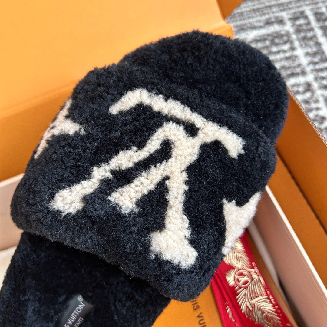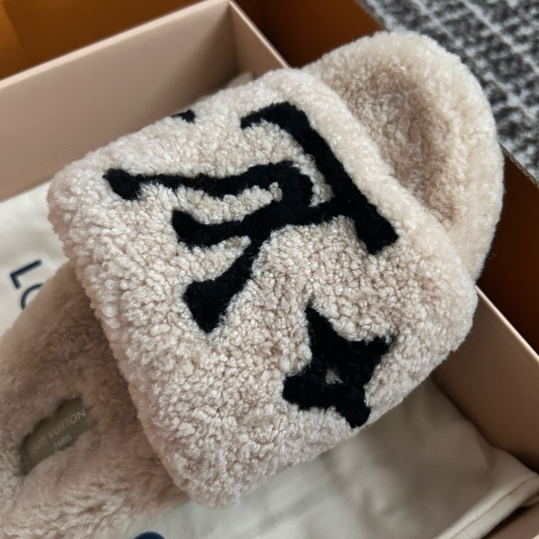 NIGO Louis Vuitton Women's Fall/Winter Fashion Casual Round Toe Open Toe Flat Thong Wool Slippers Shoes #nigo78811