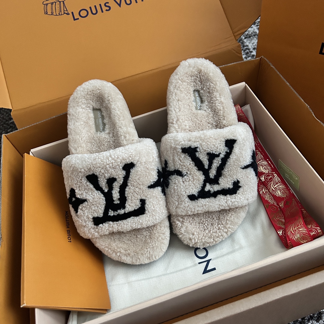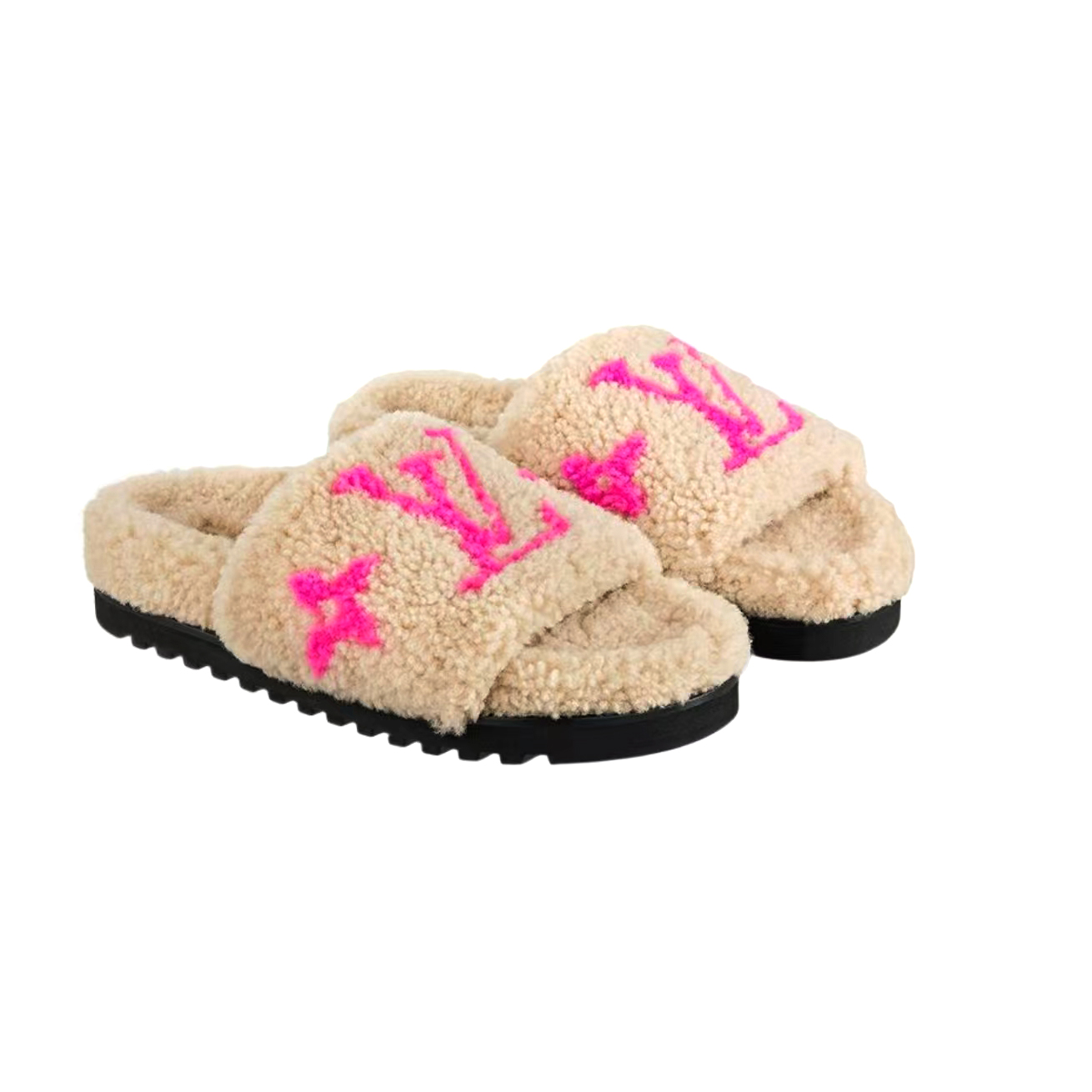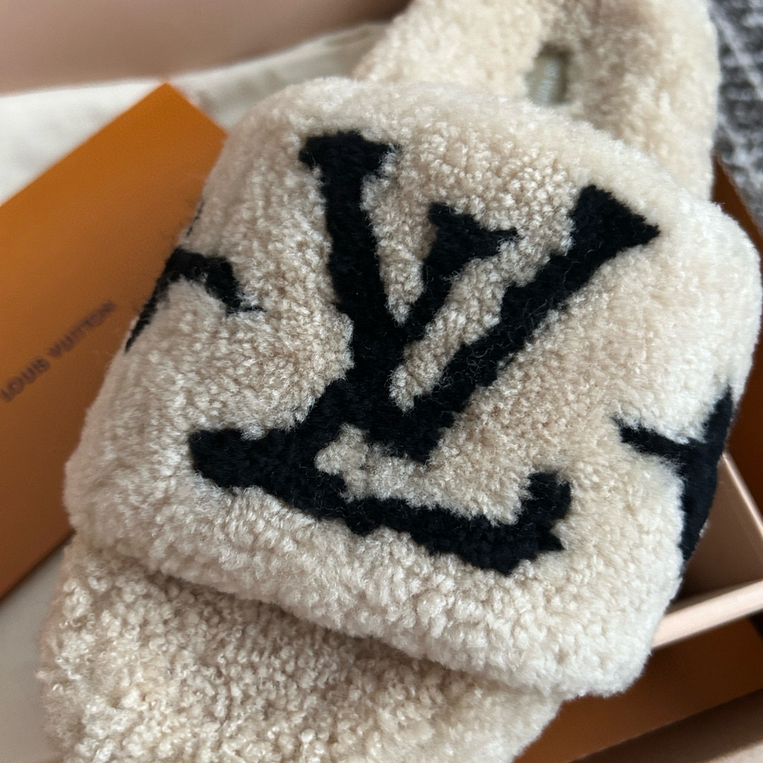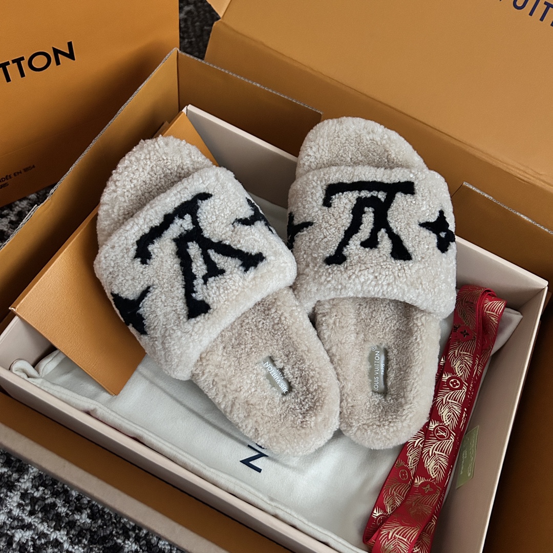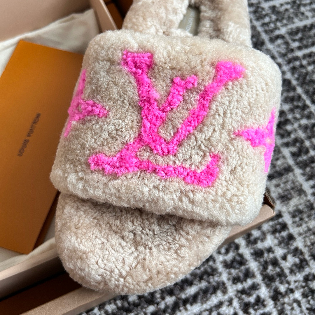 NIGO Louis Vuitton Women's Fall/Winter Fashion Casual Round Toe Open Toe Flat Thong Wool Slippers Shoes #nigo78811
