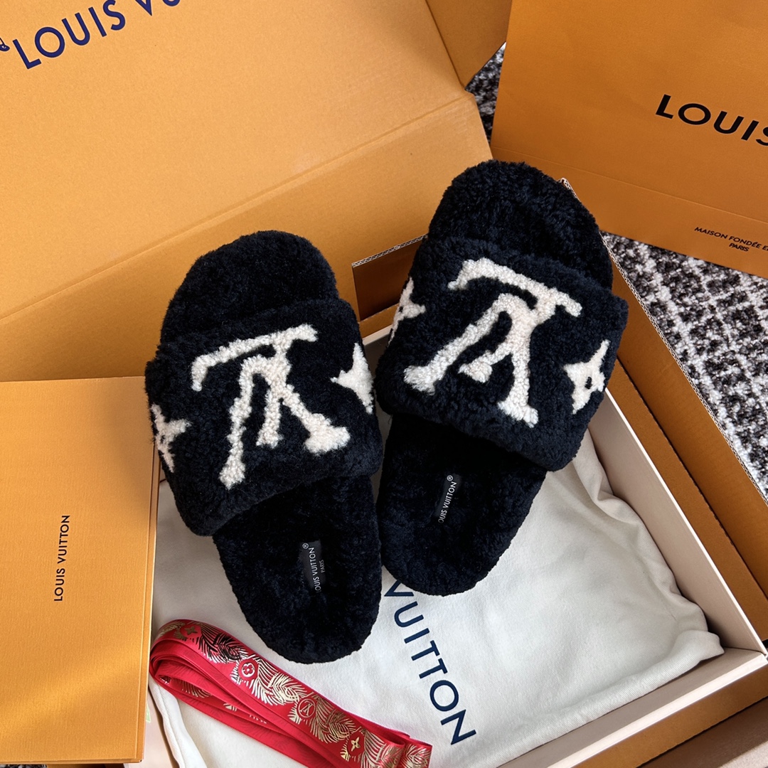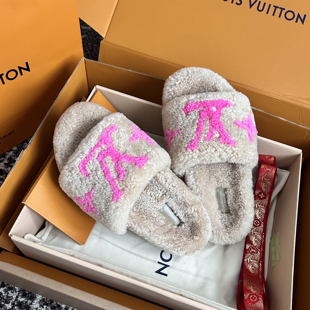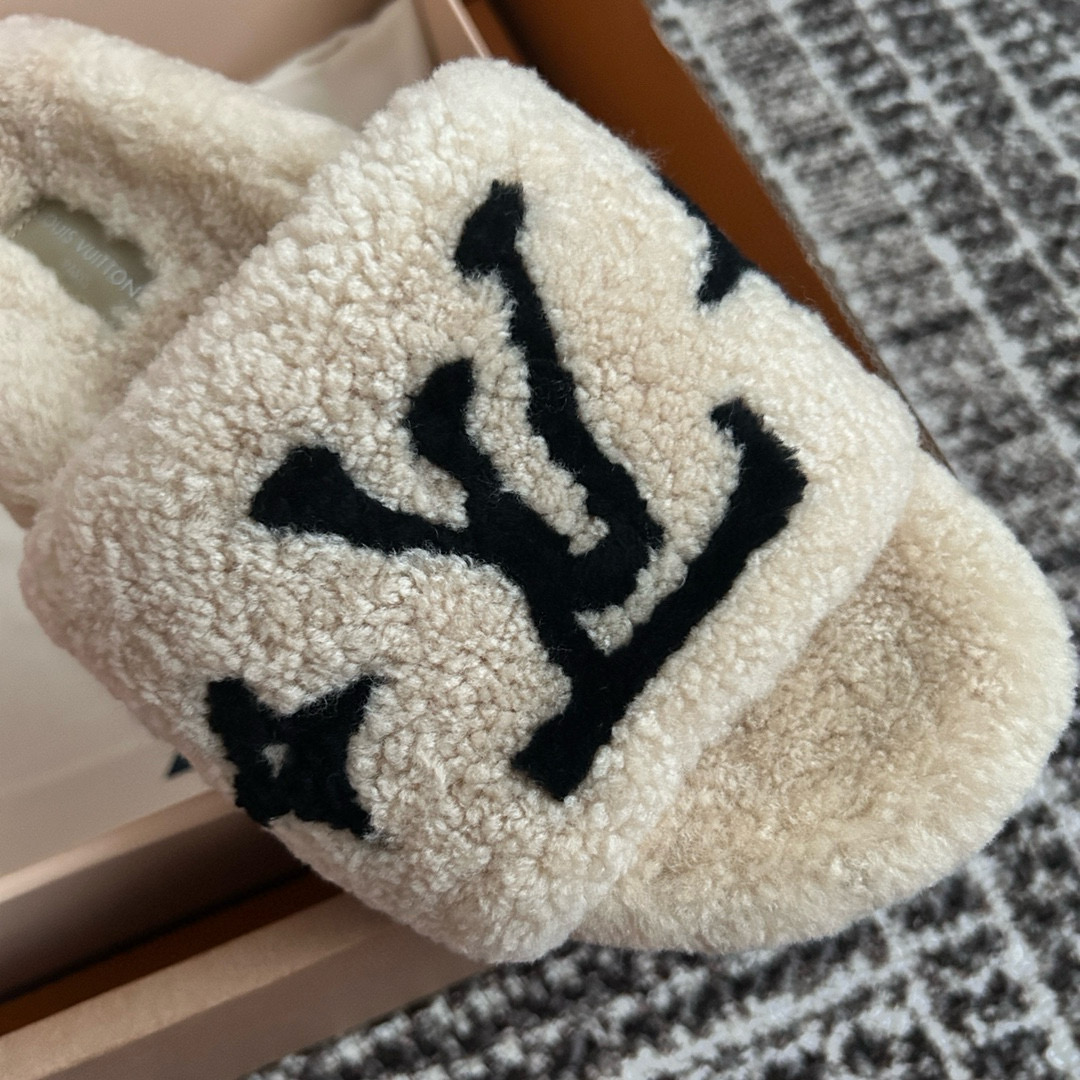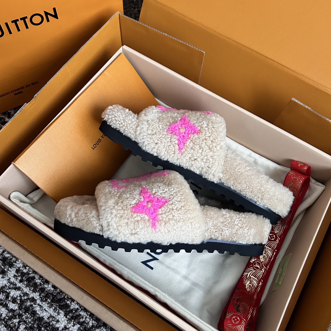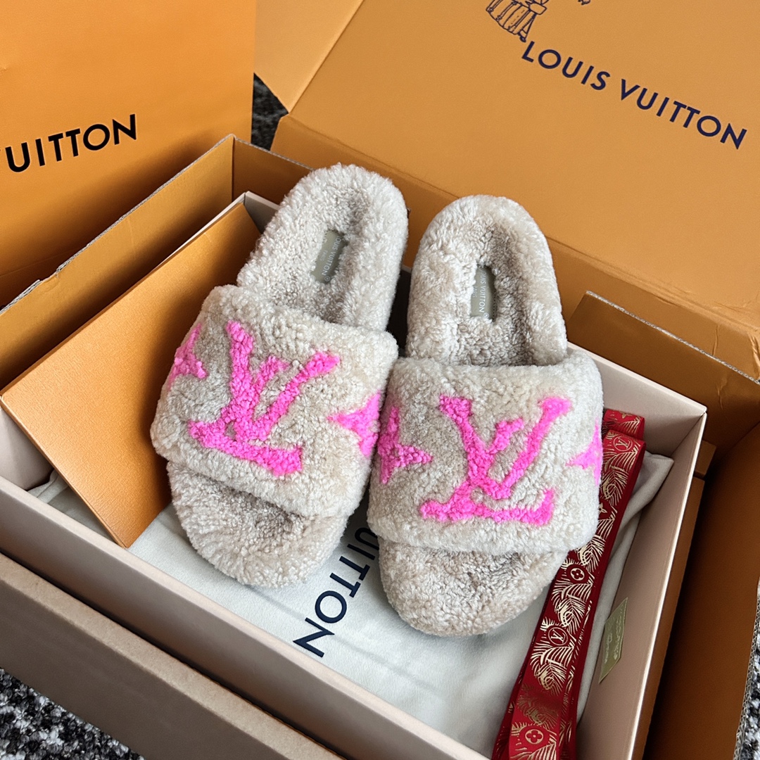 NIGO Louis Vuitton Women's Fall/Winter Fashion Casual Round Toe Open Toe Flat Thong Wool Slippers Shoes #nigo78811