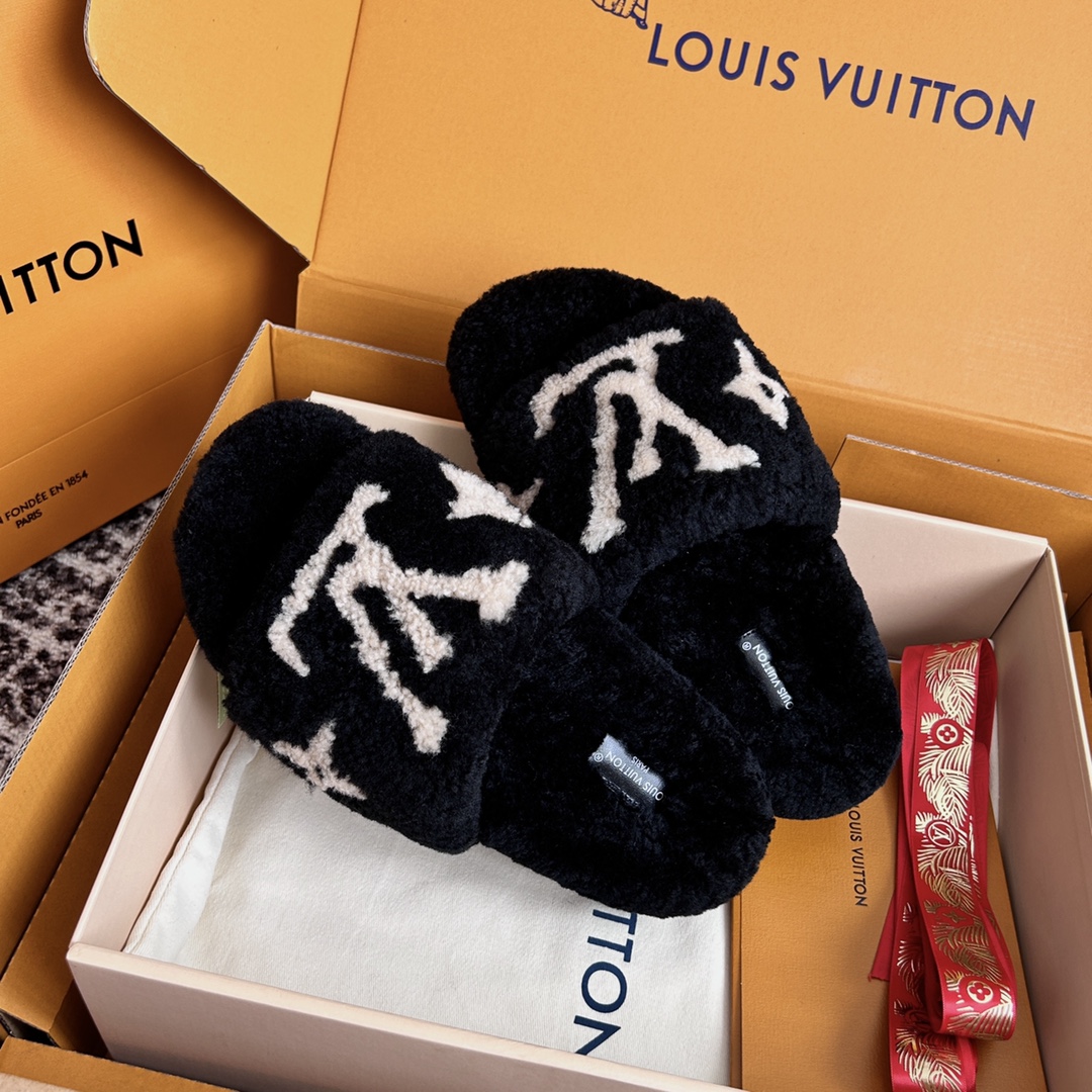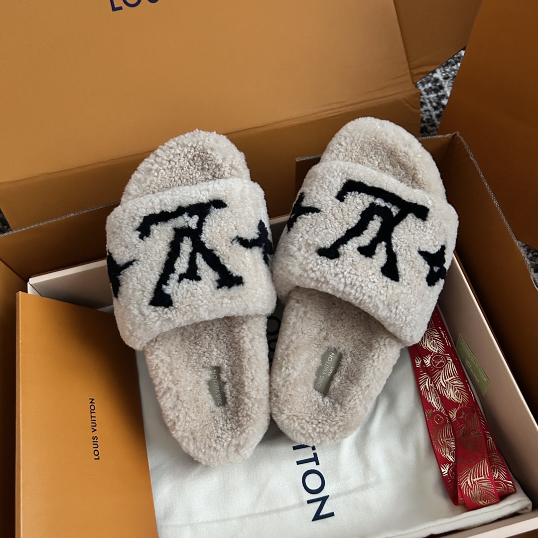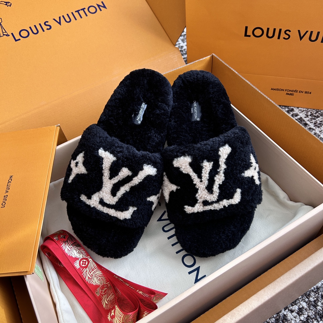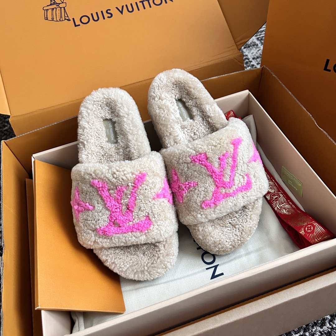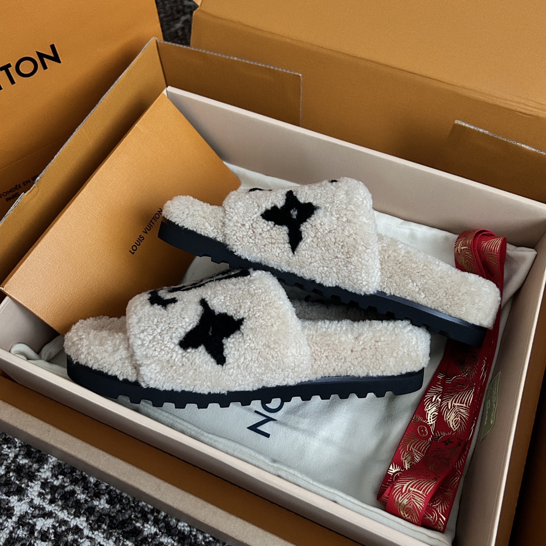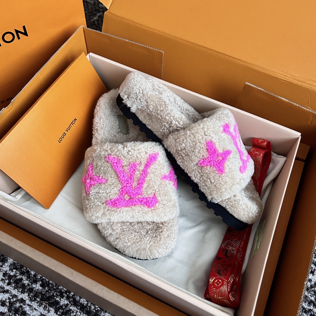 NIGO Louis Vuitton Women's Fall/Winter Fashion Casual Round Toe Open Toe Flat Thong Wool Slippers Shoes #nigo78811