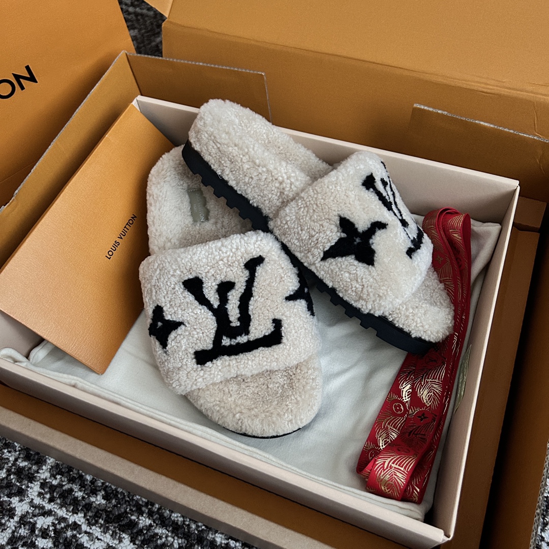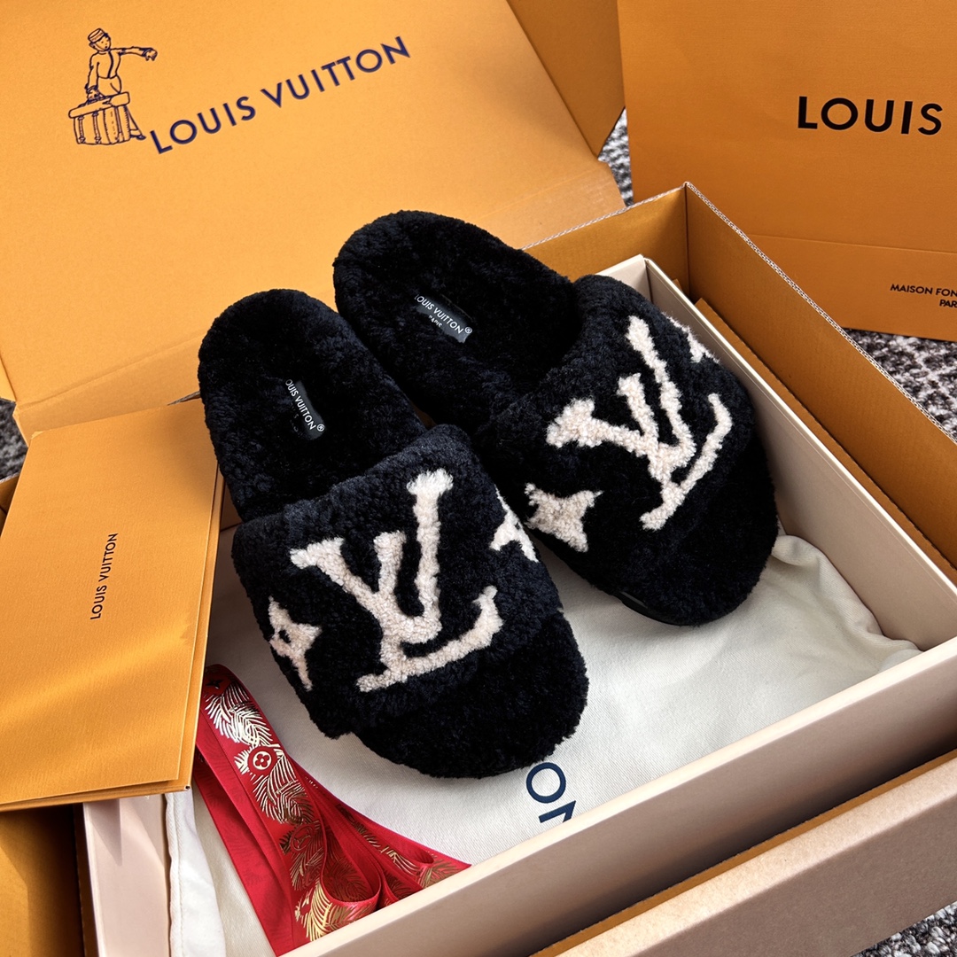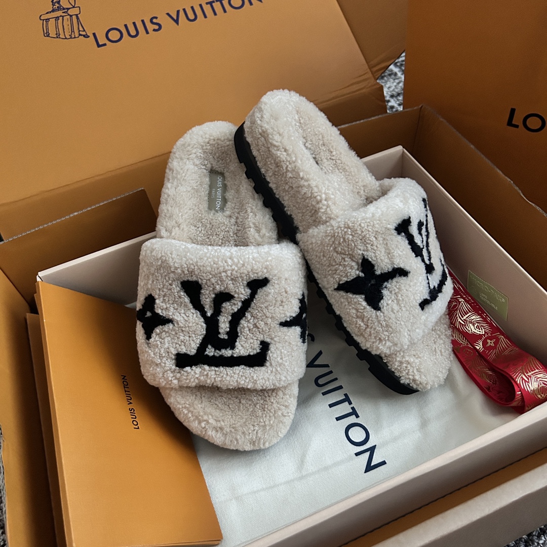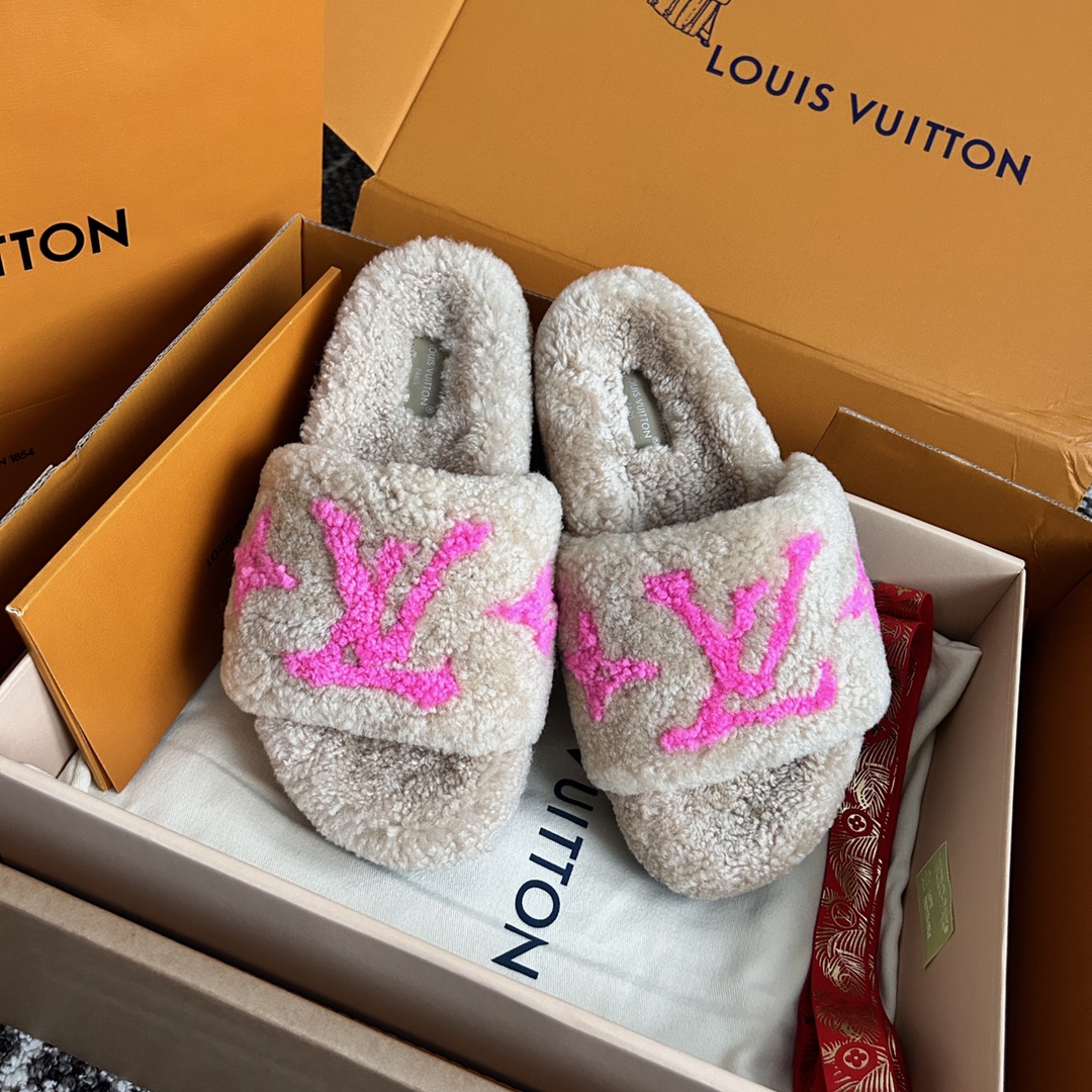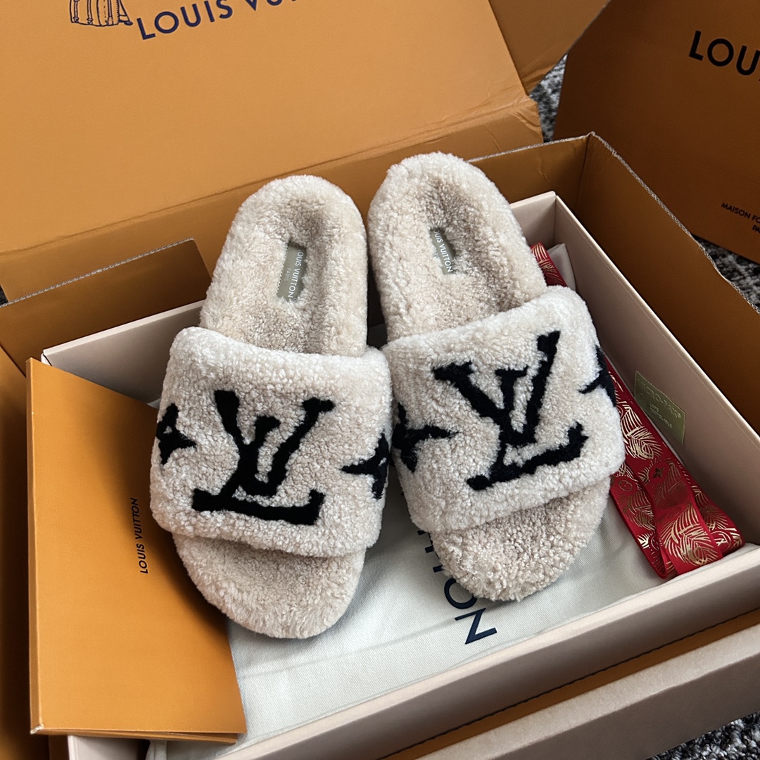 NIGO Louis Vuitton Women's Fall/Winter Fashion Casual Round Toe Open Toe Flat Thong Wool Slippers Shoes #nigo78811