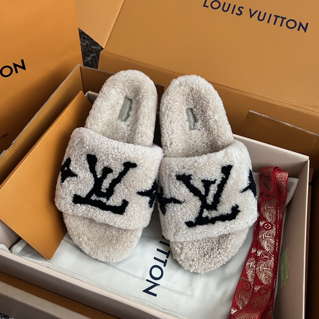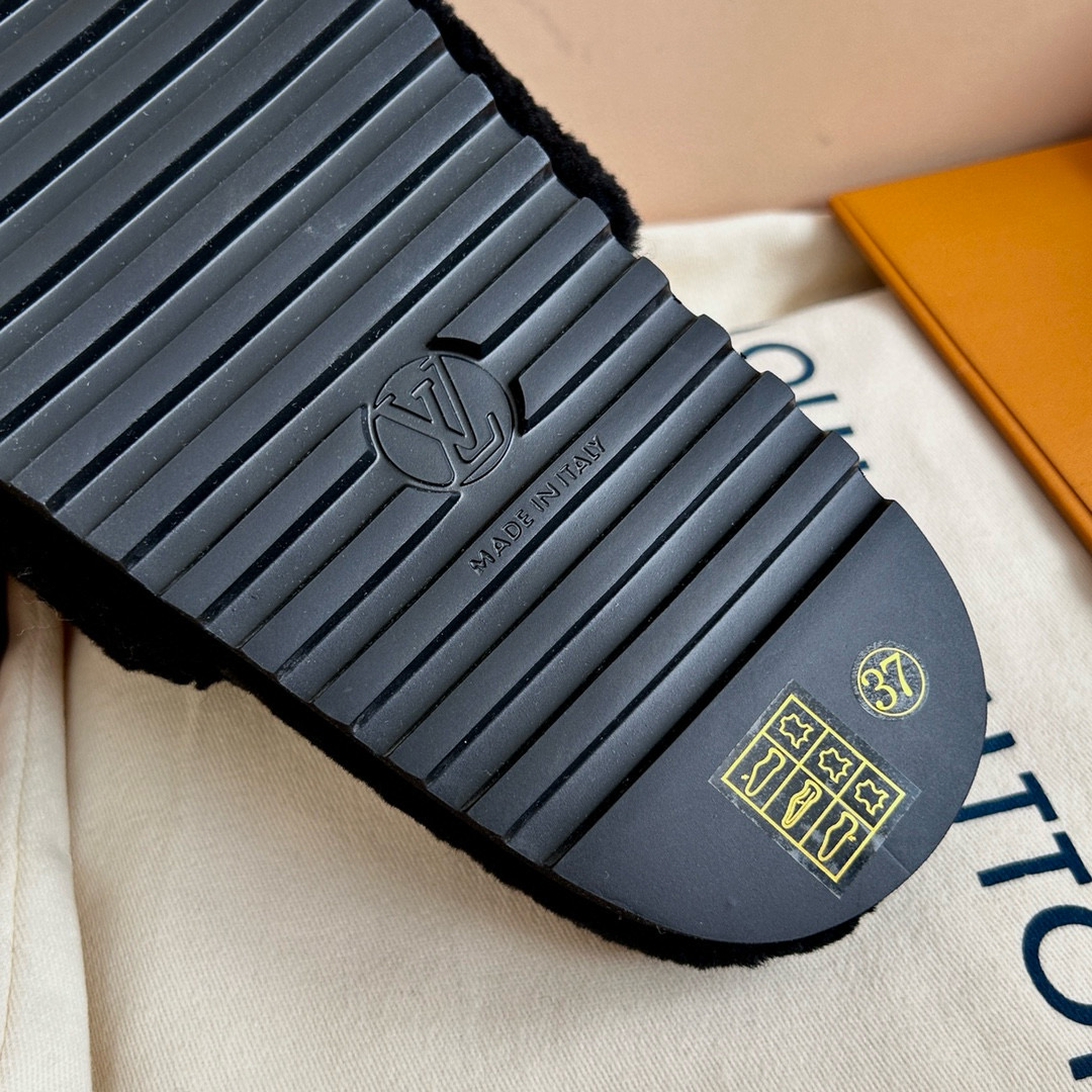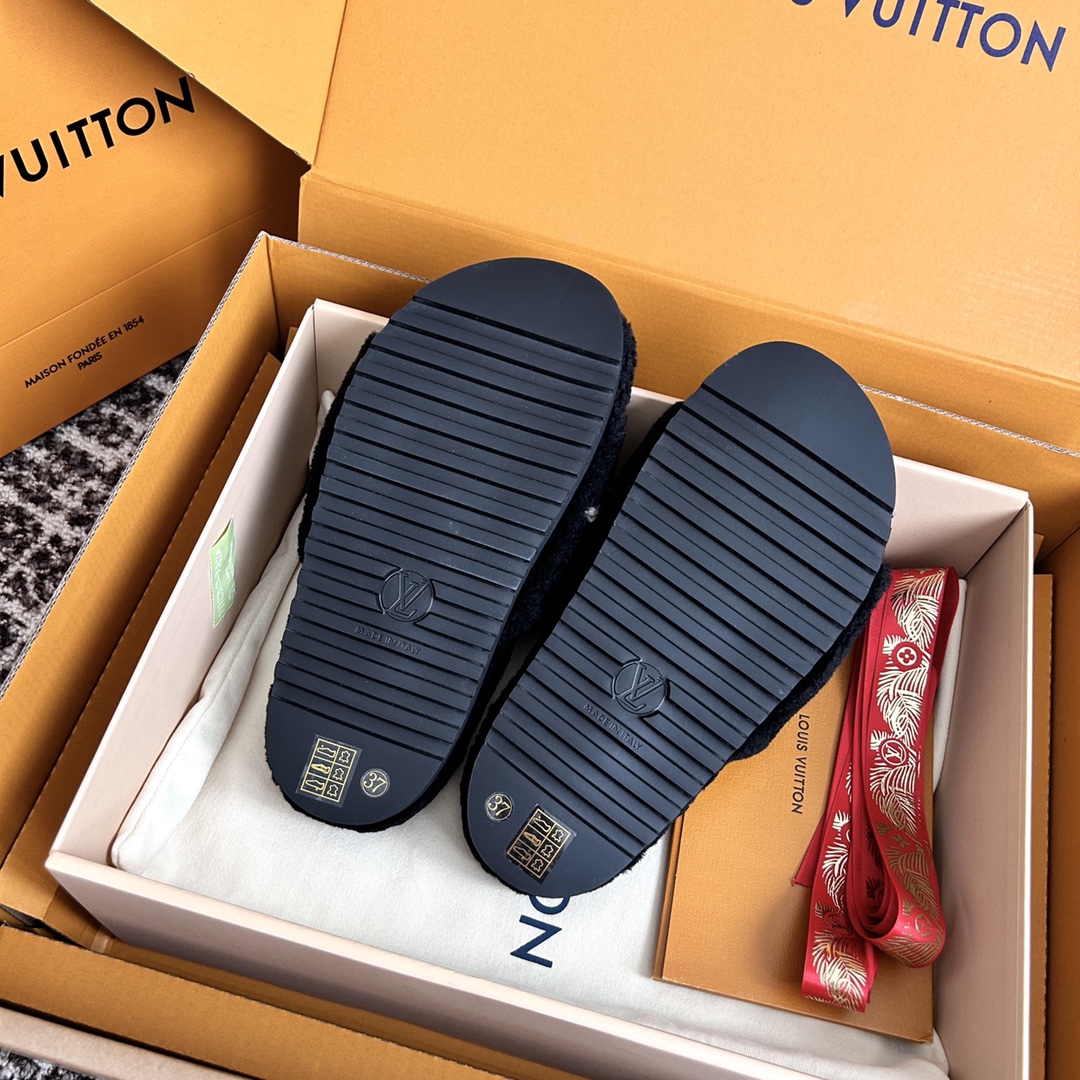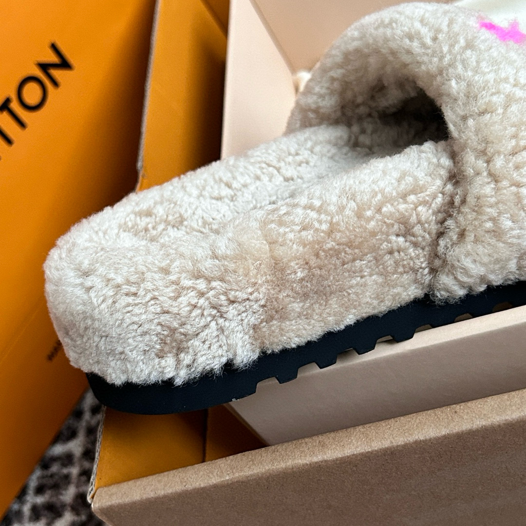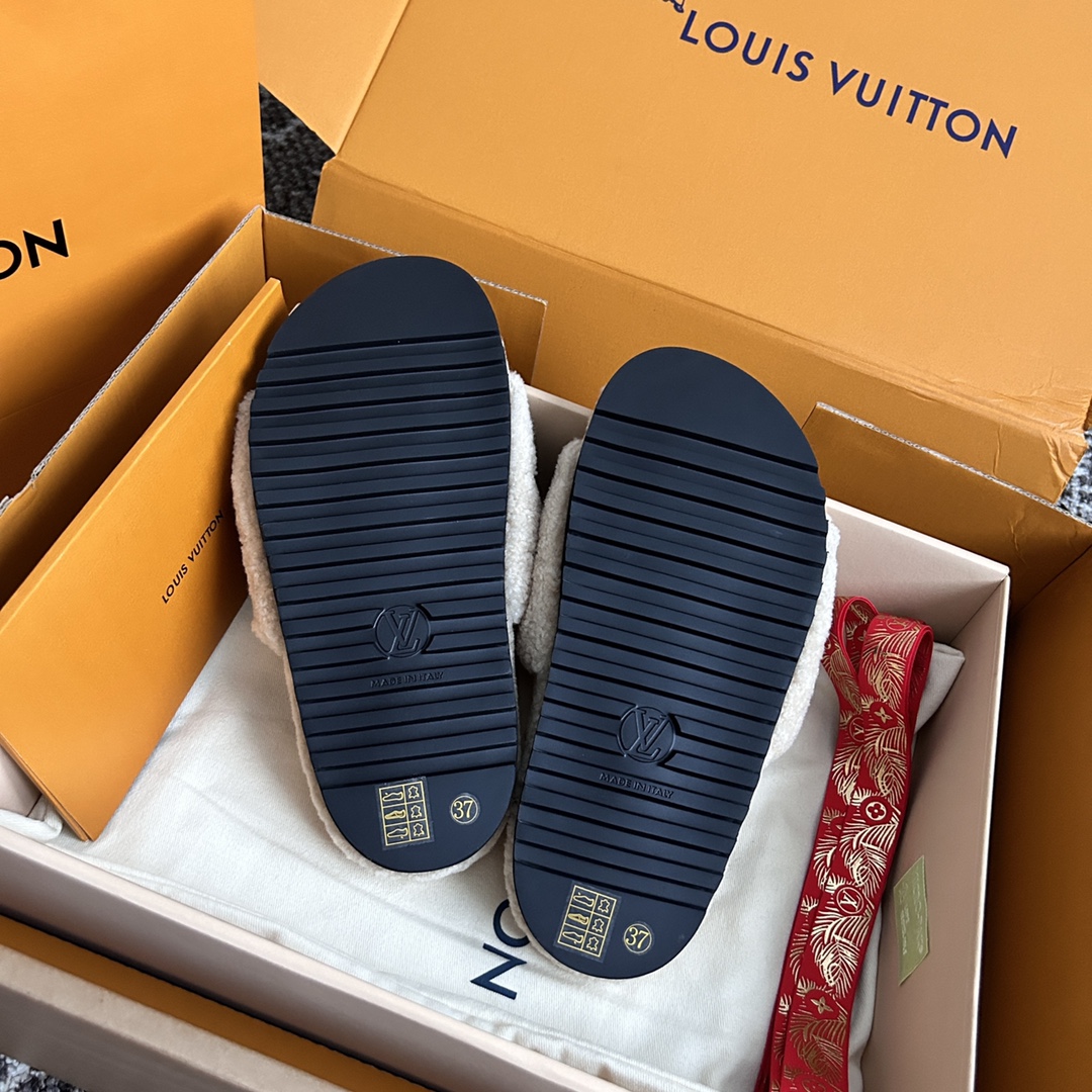 NIGO Louis Vuitton Women's Fall/Winter Fashion Casual Round Toe Open Toe Flat Thong Wool Slippers Shoes #nigo78811