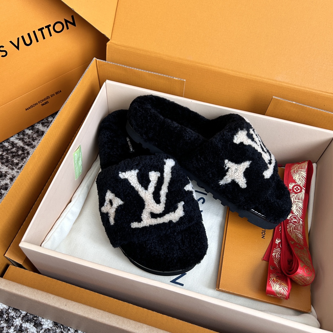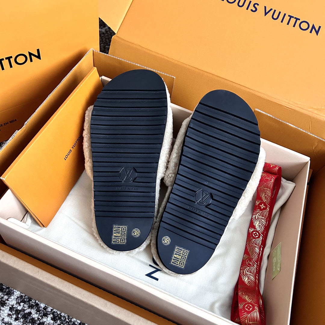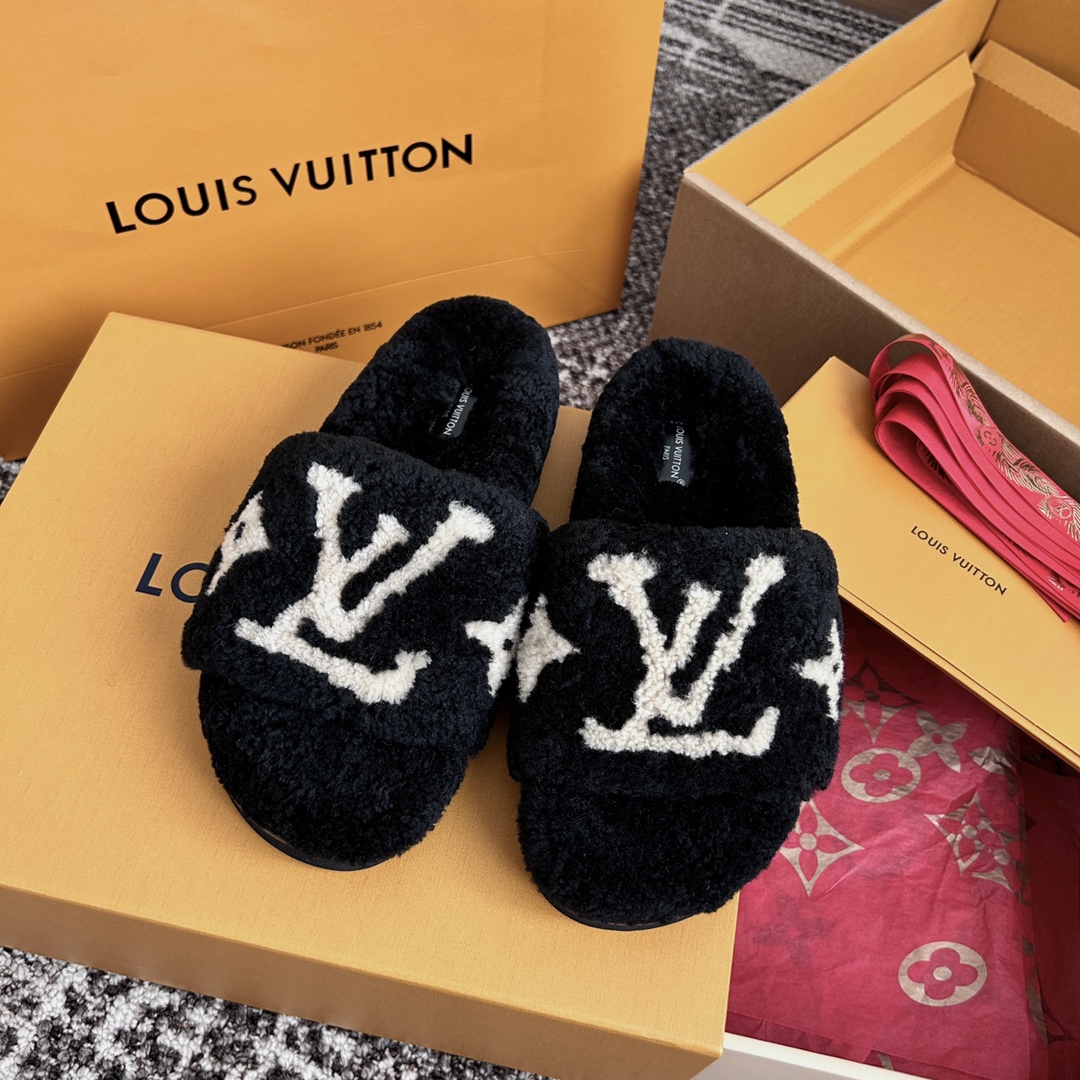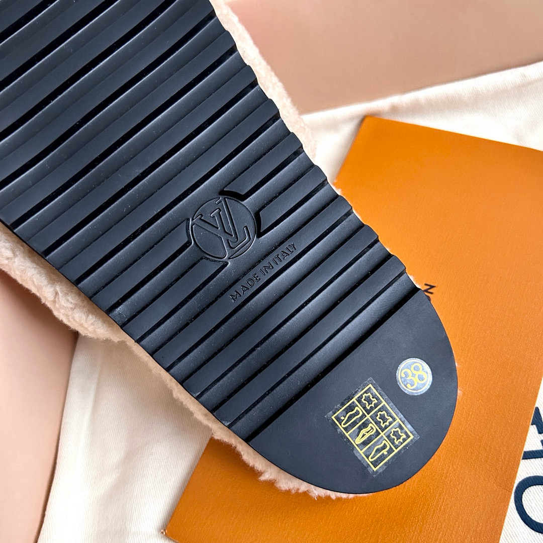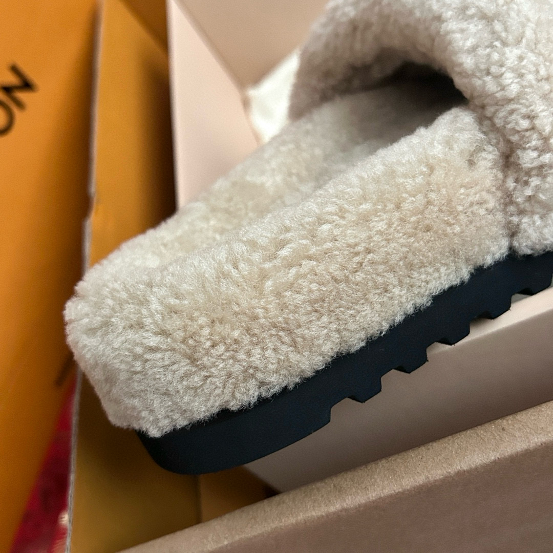 NIGO Louis Vuitton Women's Fall/Winter Fashion Casual Round Toe Open Toe Flat Thong Wool Slippers Shoes #nigo78811