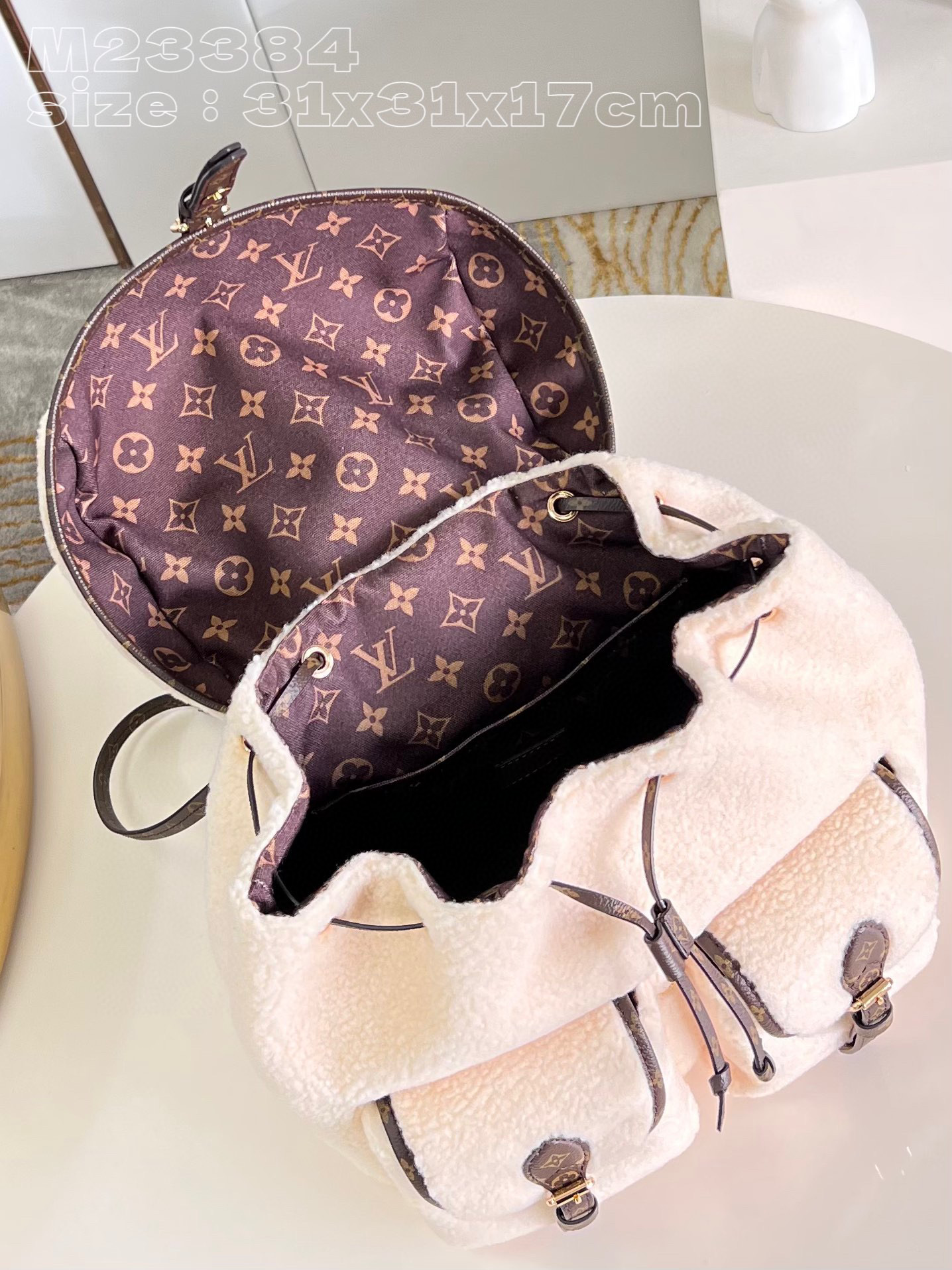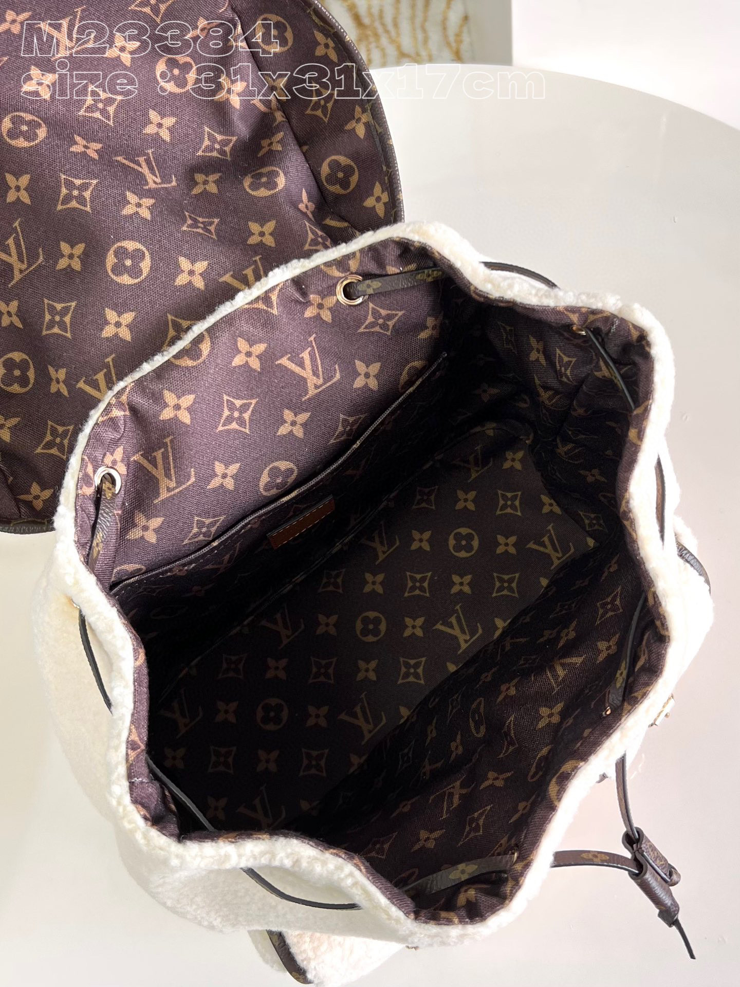Louis Vuitton presents the new BACKPACK shoulder bag for the ski season. In soft wool leather, the design is practical and comfortable, with an exterior pocket for easy access and a handle for additional carrying options. Whether you're hiking in the mountains or lounging in the ski chalet, it's the perfect way to bring a sophisticated touch to your outdoor activities. 31 x 31 x 17 cm (L x H x W)
