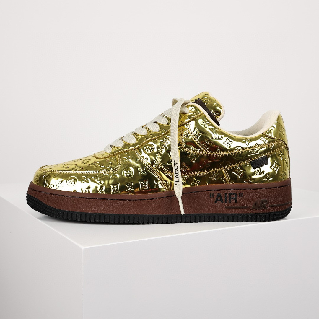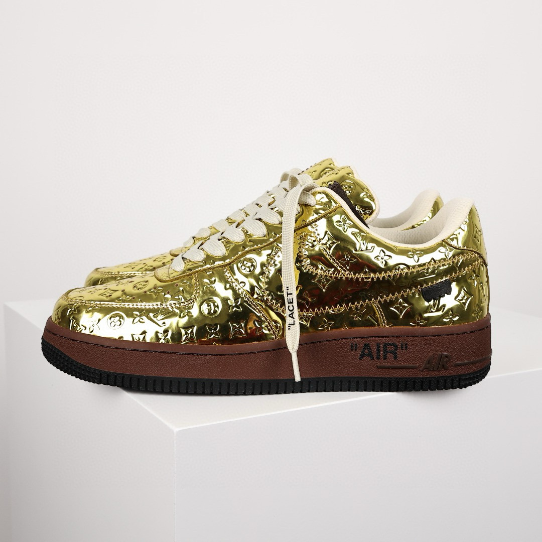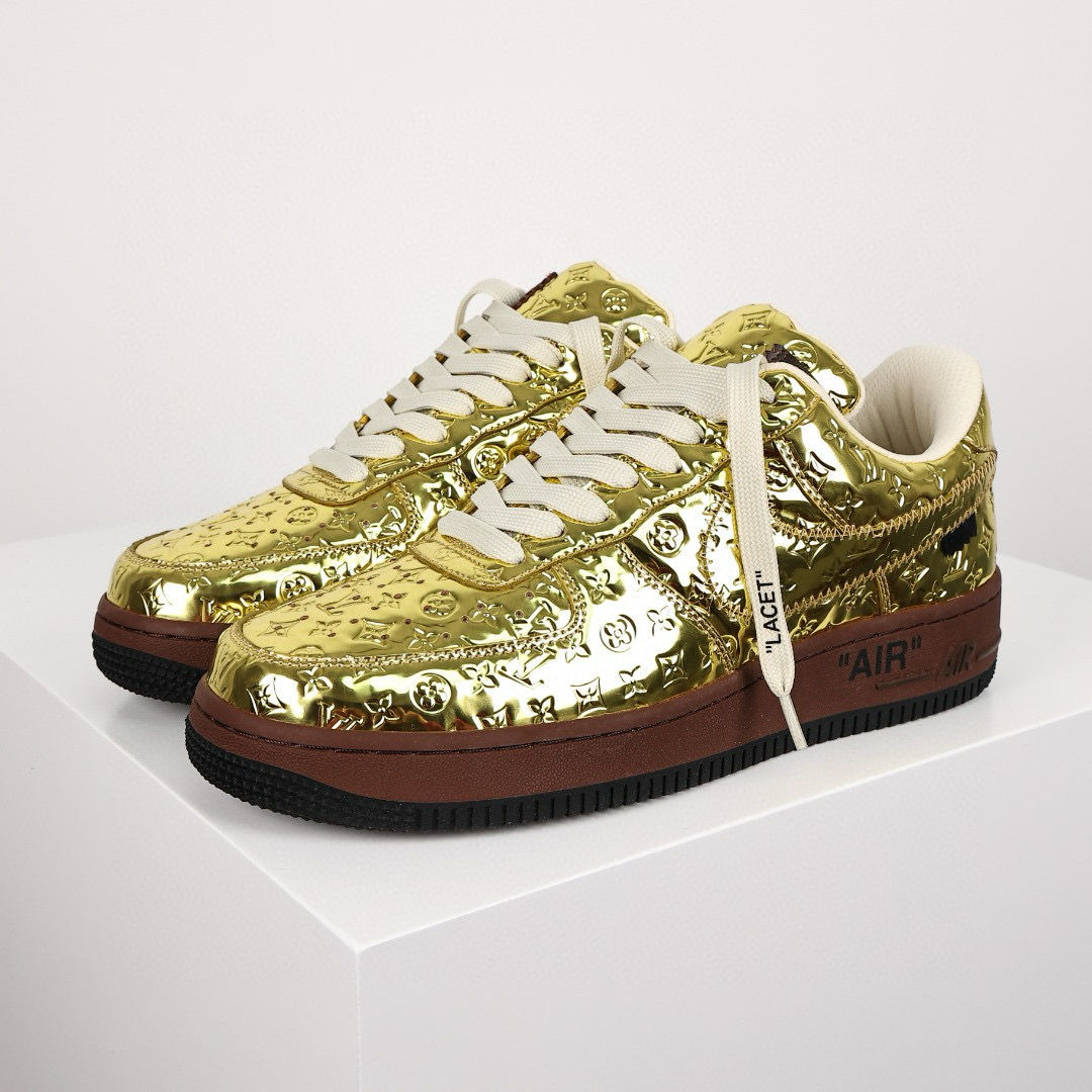 NIGO Louis Vuitton x Air Force1 Low Men's Four Seasons Gold Trendy Printed Letter Logo Cowhide Comfortable Casual Sports Shoes #nigo71228