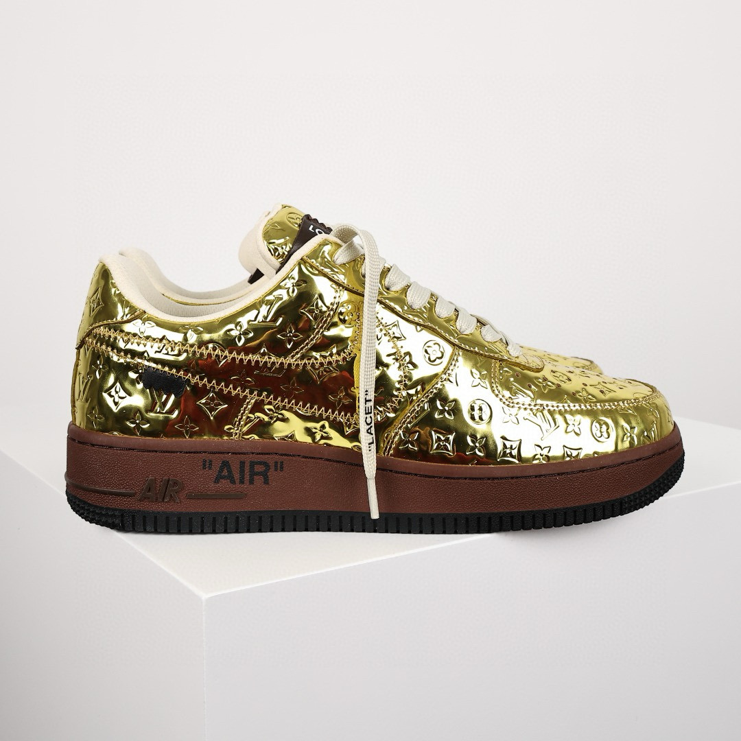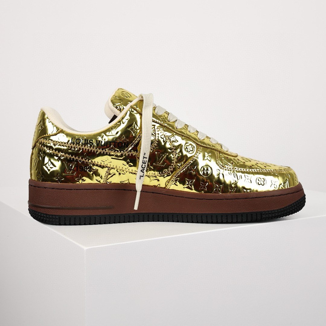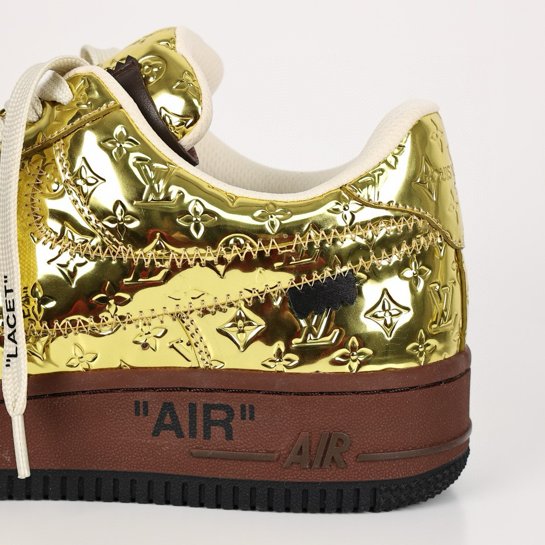 NIGO Louis Vuitton x Air Force1 Low Men's Four Seasons Gold Trendy Printed Letter Logo Cowhide Comfortable Casual Sports Shoes #nigo71228